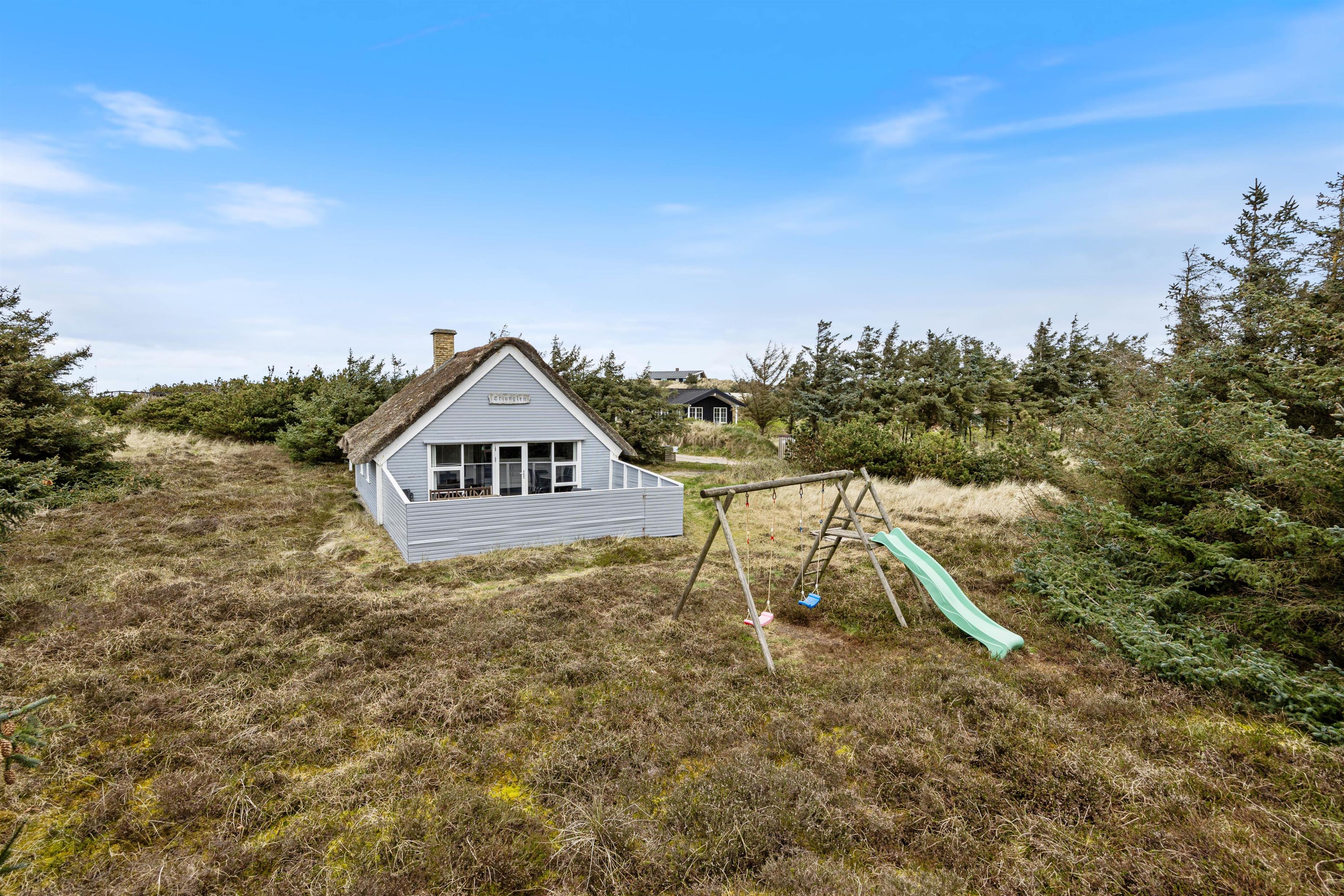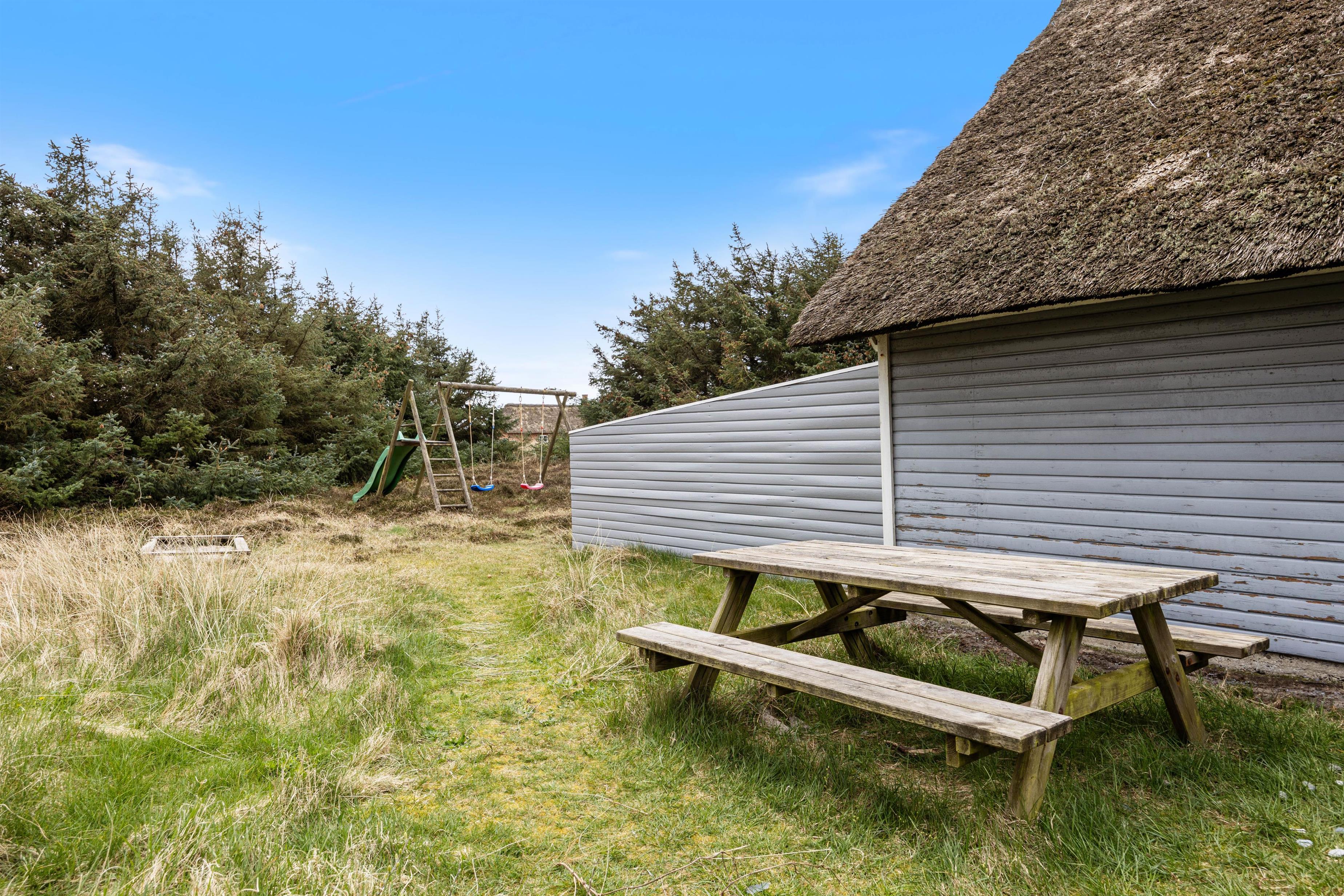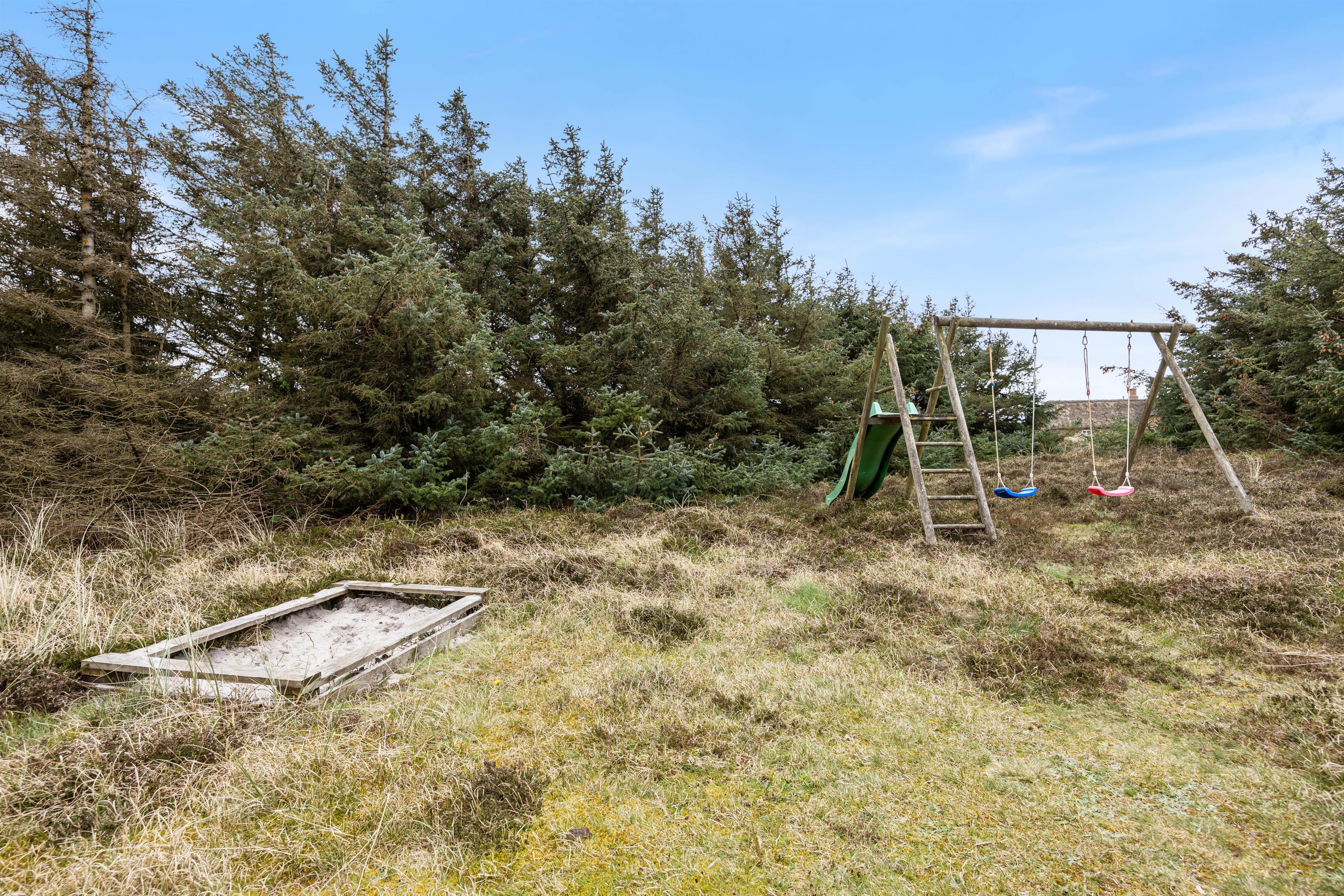 Børnene har god mulighed for at fordrive tiden på naturgrunden, hvor der er et legestativ med gynge og rutsjebane til rådighed. Det vil med garanti være et stort hit hos de mindste. Imens kan mor og far nyde solens stråler i liggestolene på terrassen eller vende bøffer på grillen. Alle de ingredienser, der gør feriedagene til noget særligt.