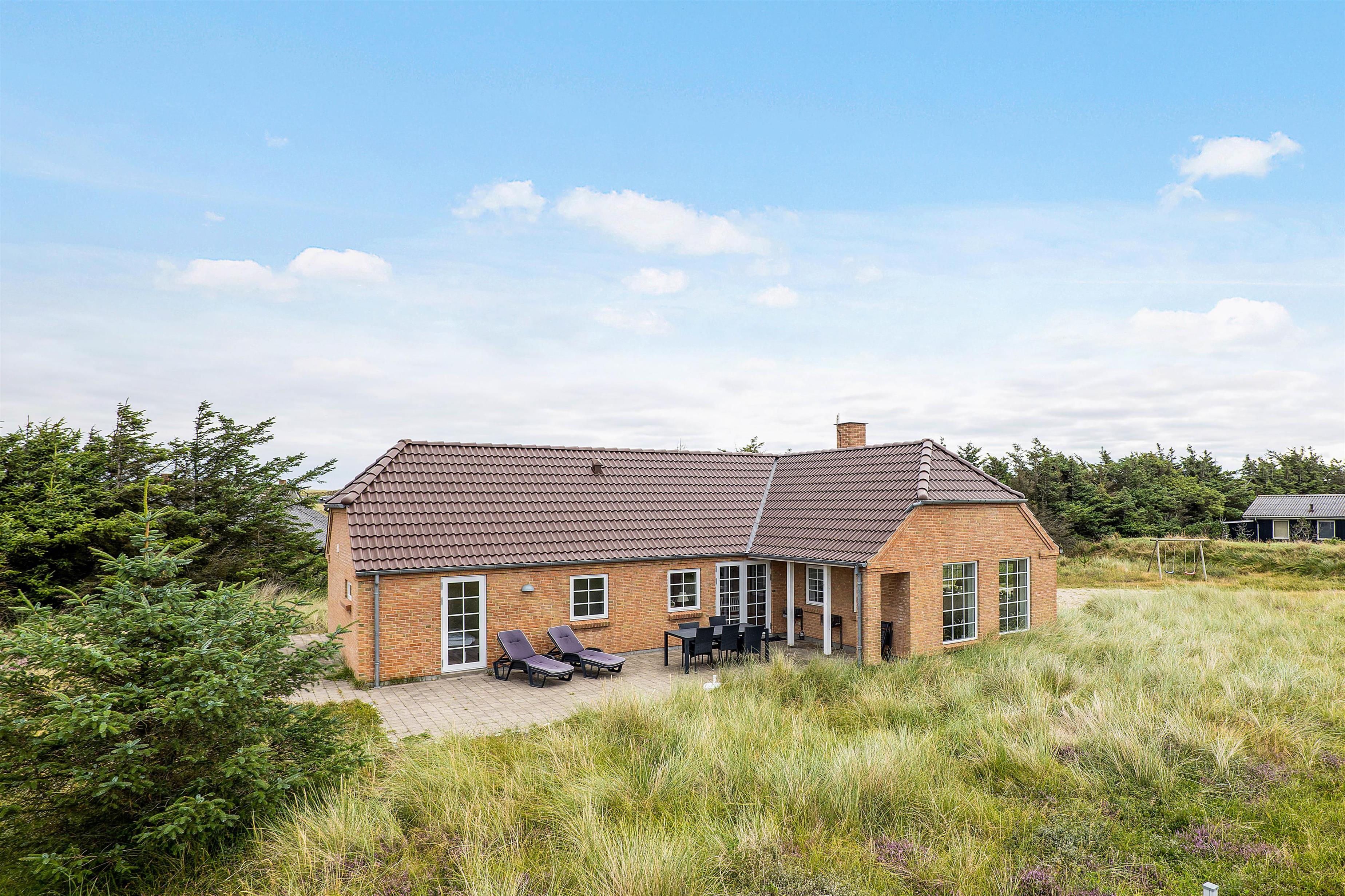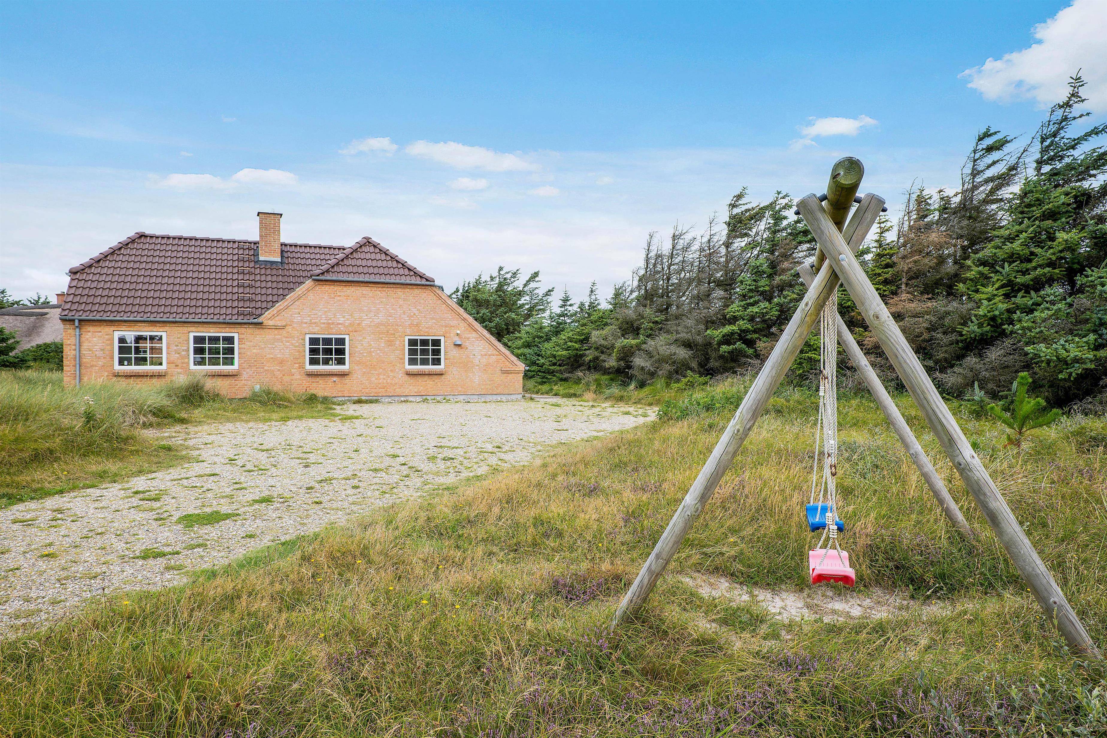 Ved feriehuset er der flere gode terrasser, så I har mulighed for at sidde ude i solen og den friske luft. Terrasserne er åbne, så I rigtig kan nyde omgivelserne og naturgrunden, som feriehuset ligger på. Her er naturligvis også havemøbler og grill, så her kan I tilberede en lækker grillmiddag. Til børnenes fornøjelse er der også et gyngestativ, hvor de helt sikker vil kunne bruge mange timers sjov.