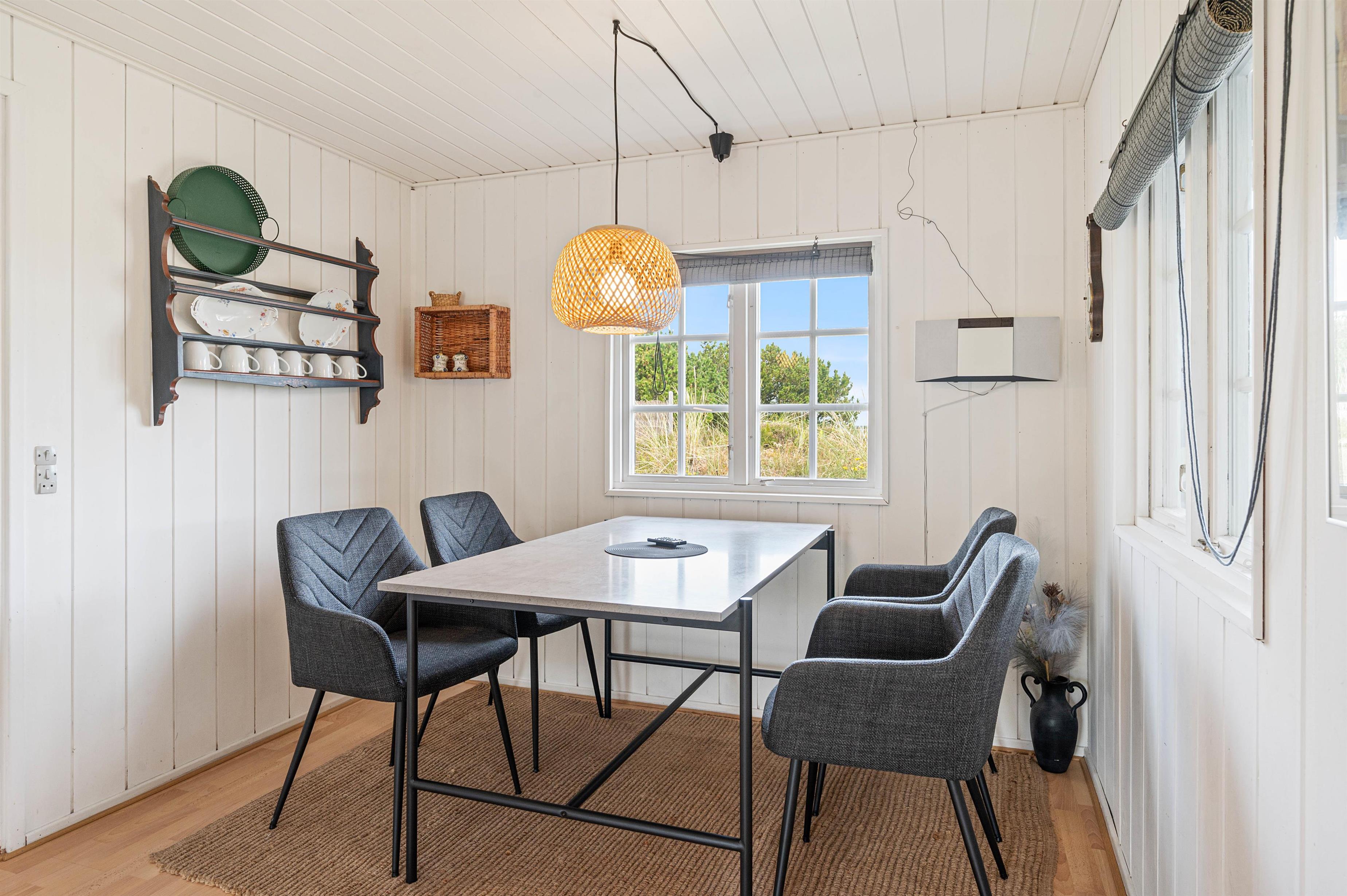 Sommerhuset er udstyret med en energibesparende varmepumpe, så I altid har et behageligt rumklima, og opvaskemaskinen i køkkenet hjælper til, at oprydningen efter maden hurtigt er overstået. Med en hurtig og stabil internetforbindelse har I også mulighed for at være online på ferien.