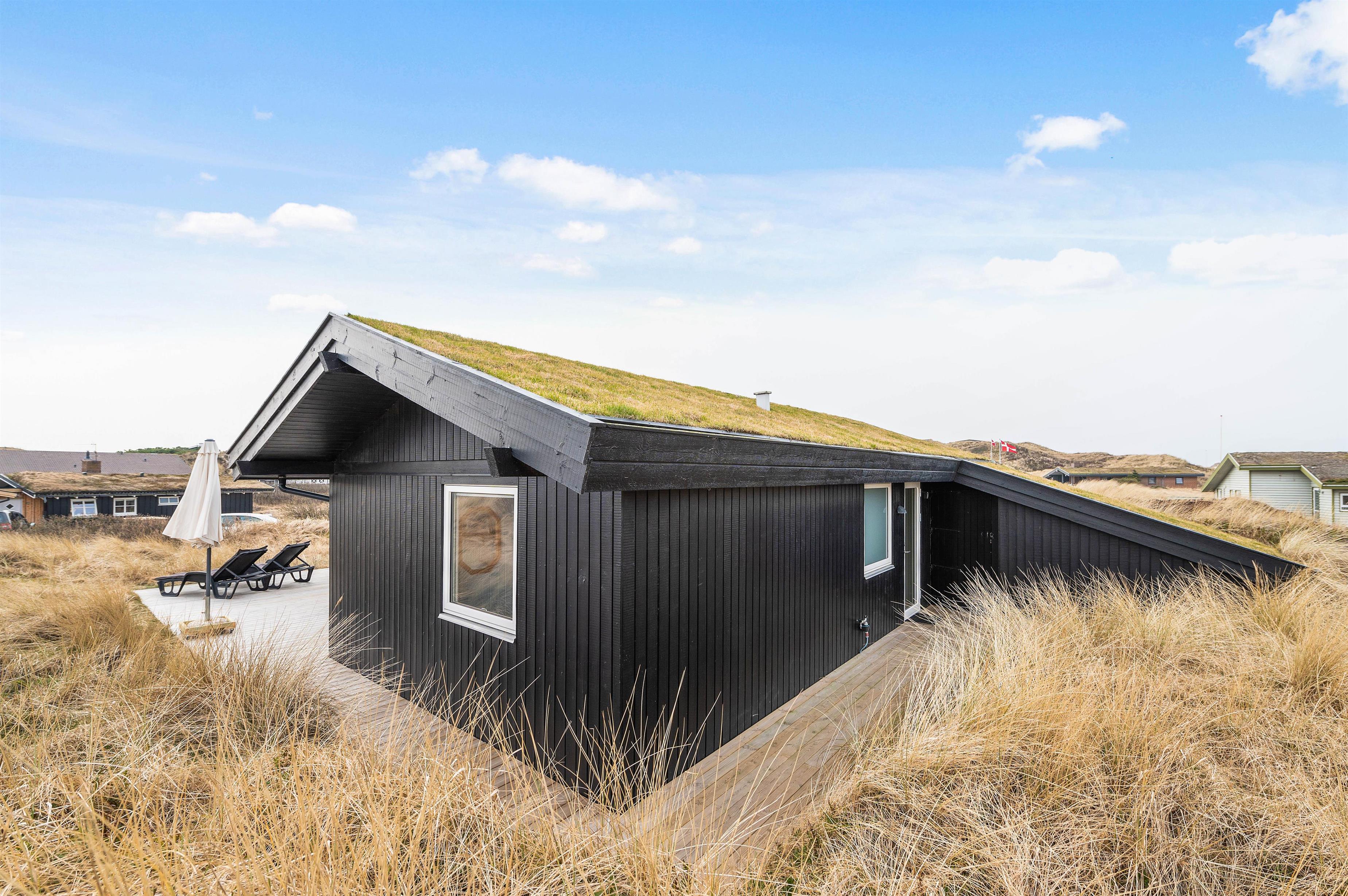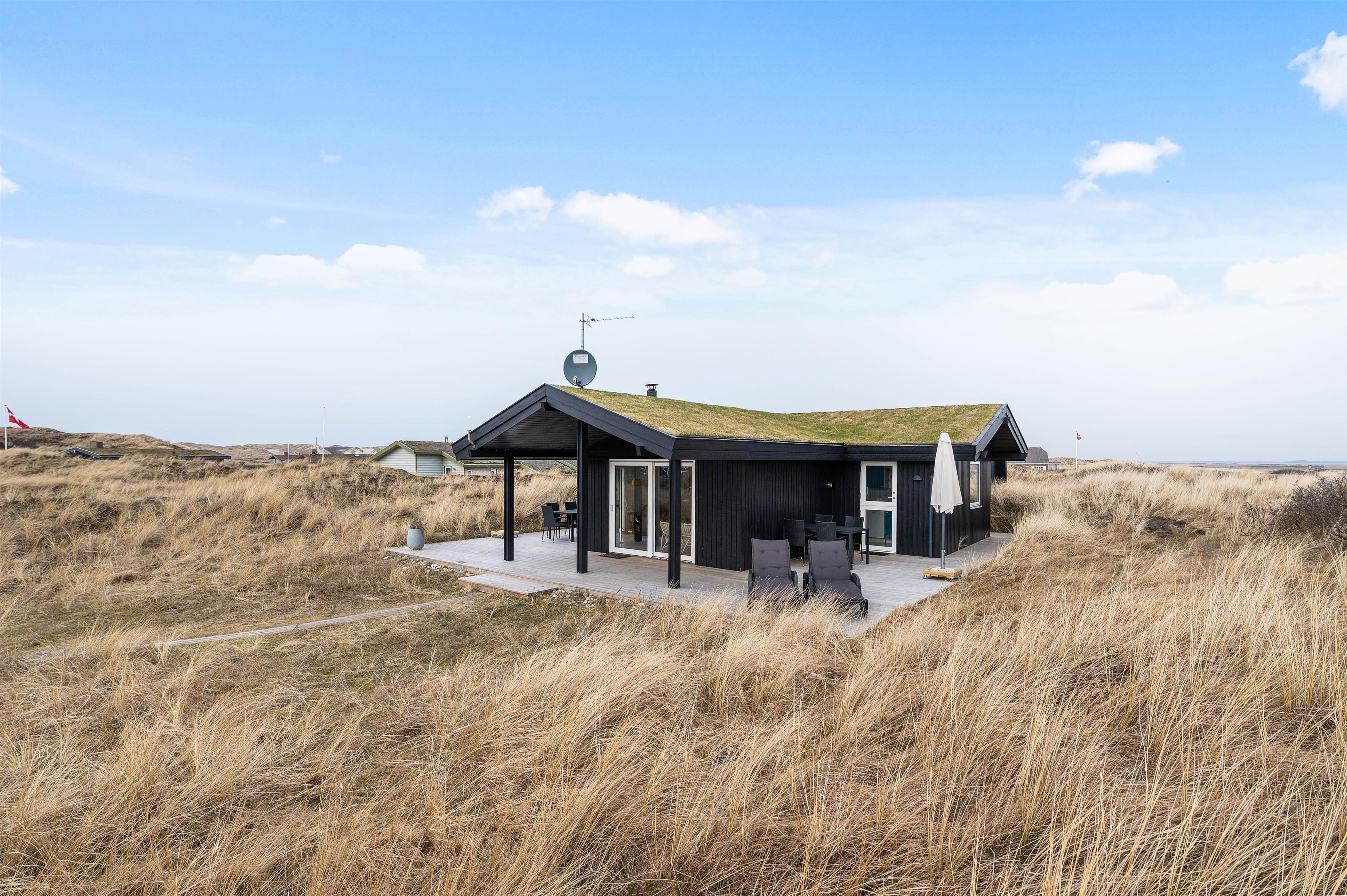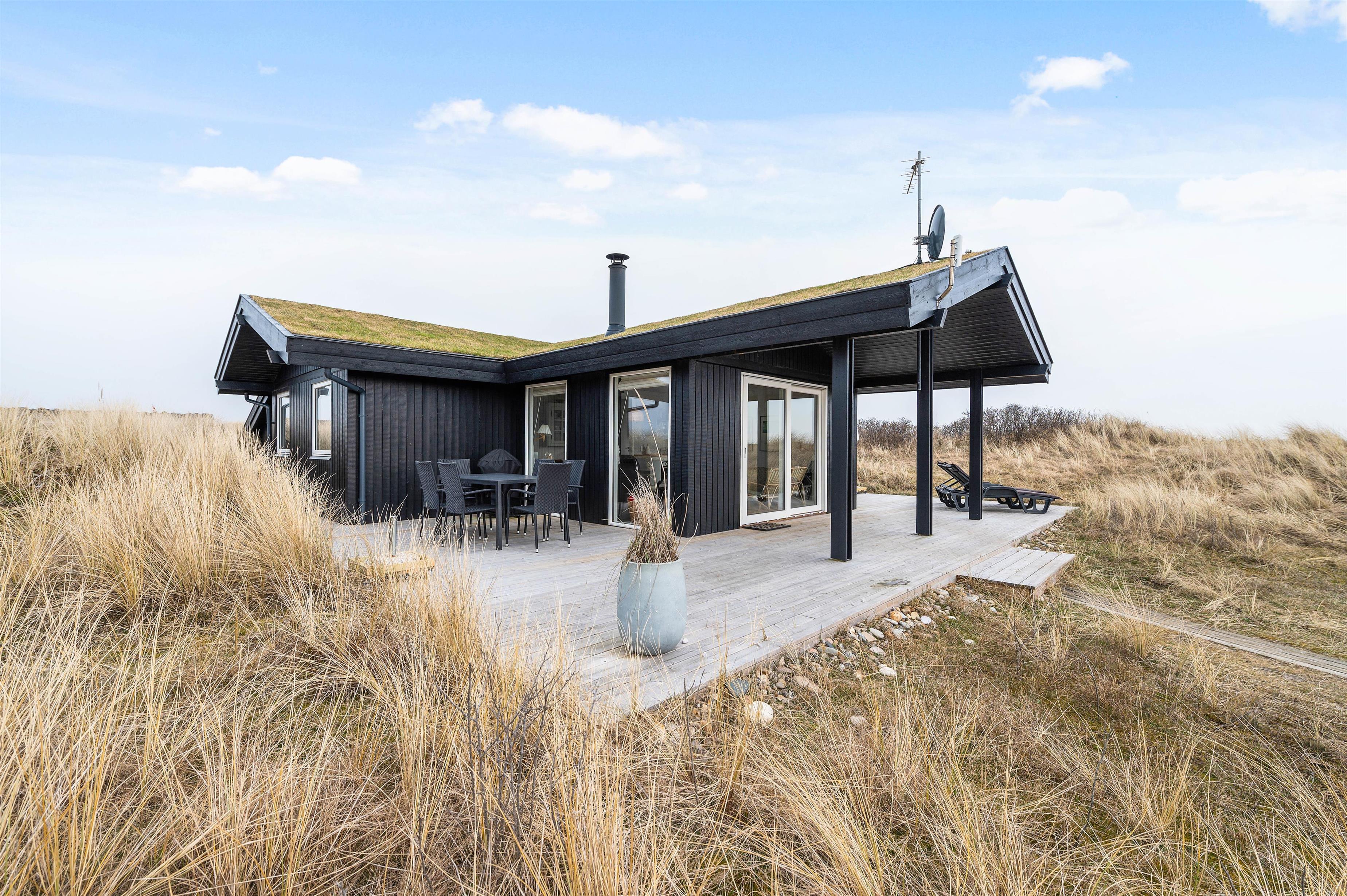 Fra terrassen har I tilgang til jeres helt egen sauna. Her kan I sidde i varmen og samtidig nyde det vestjyske klitlandskab gennem vinduerne - hele året rundt.