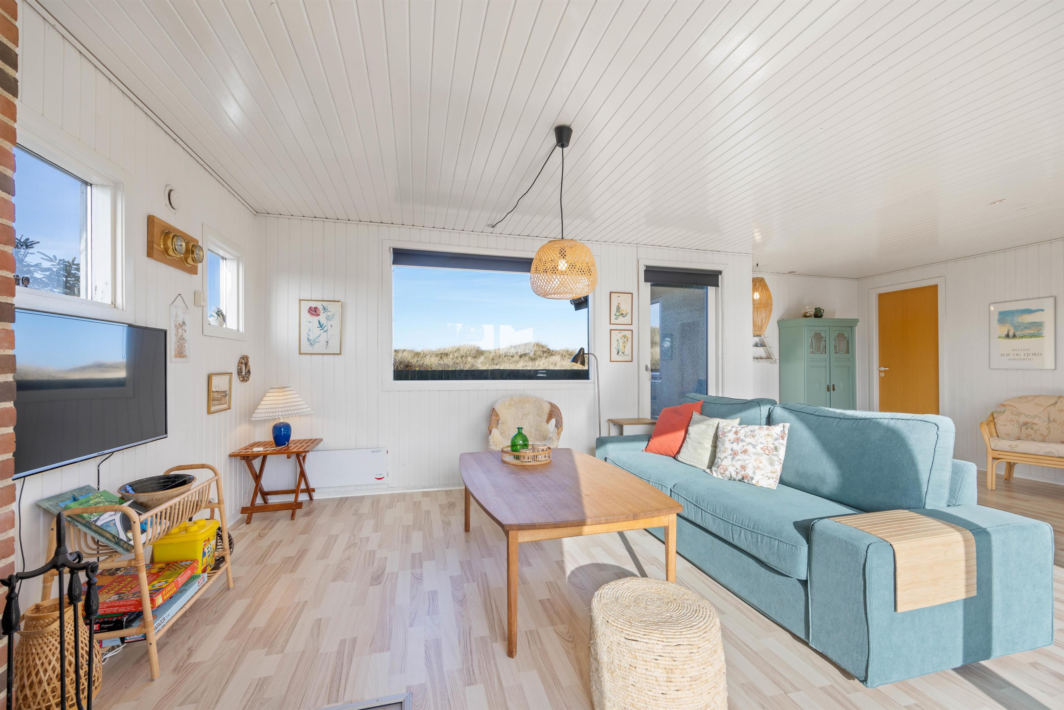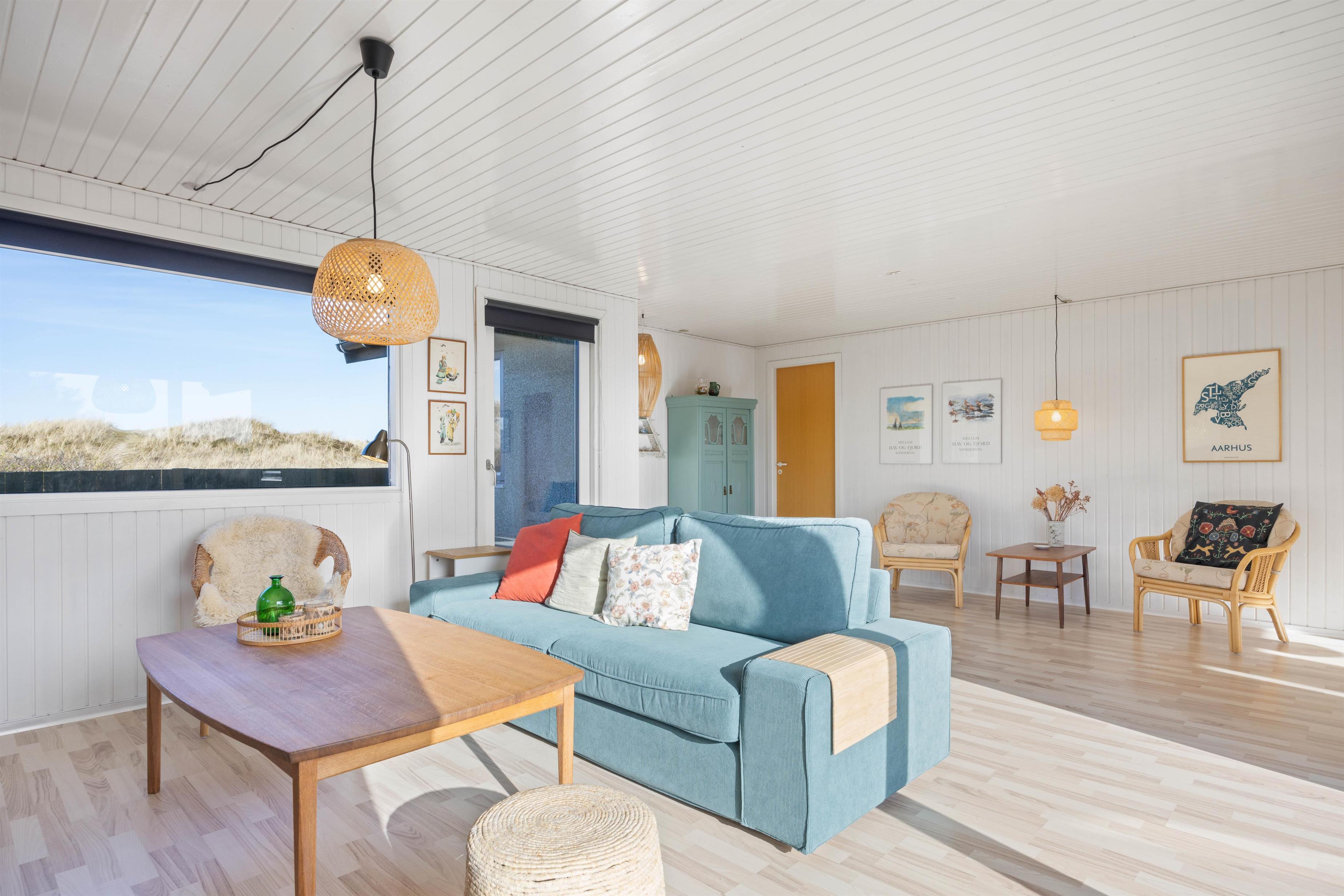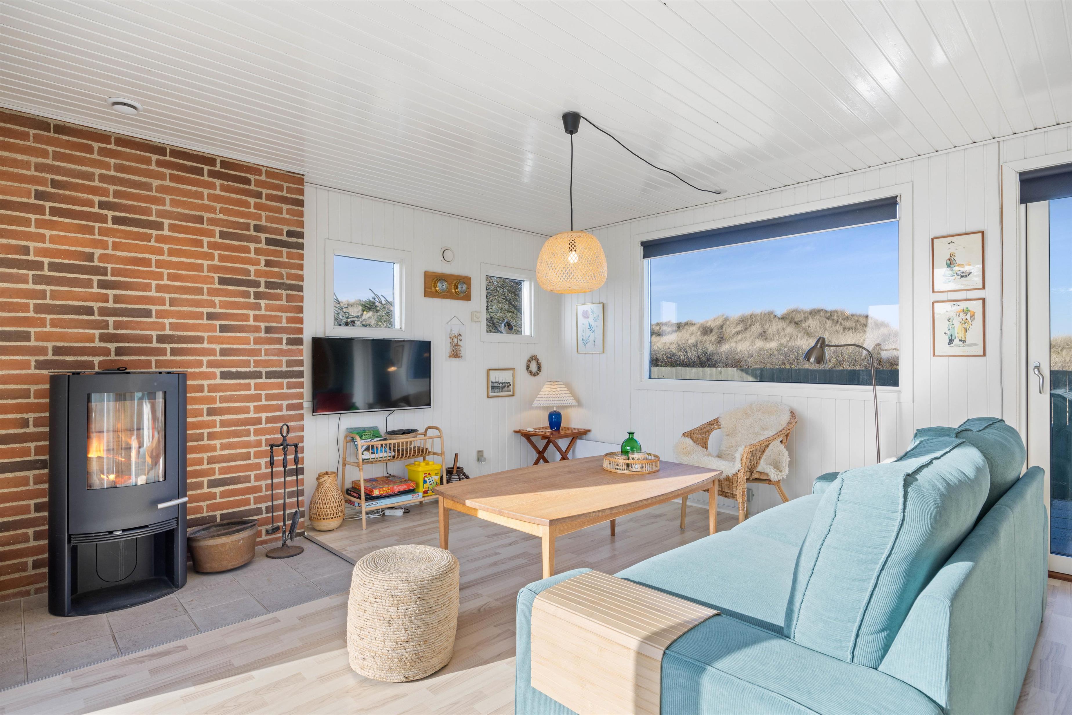 Sæt jer godt til rette i sofaen eller lænestolen og betragt det smukke klitlandskab gennem vinduespartierne, eller nyd en lækker middag ved bordet. Efter aftensmaden kan I tænde op i brændeovnen og blive varmet godt igennem, eller måske se en film sammen med hele familien. Mulighederne er uendelige, og der bliver masser af tid til samvær og hygge i dette skønne sommerhus.