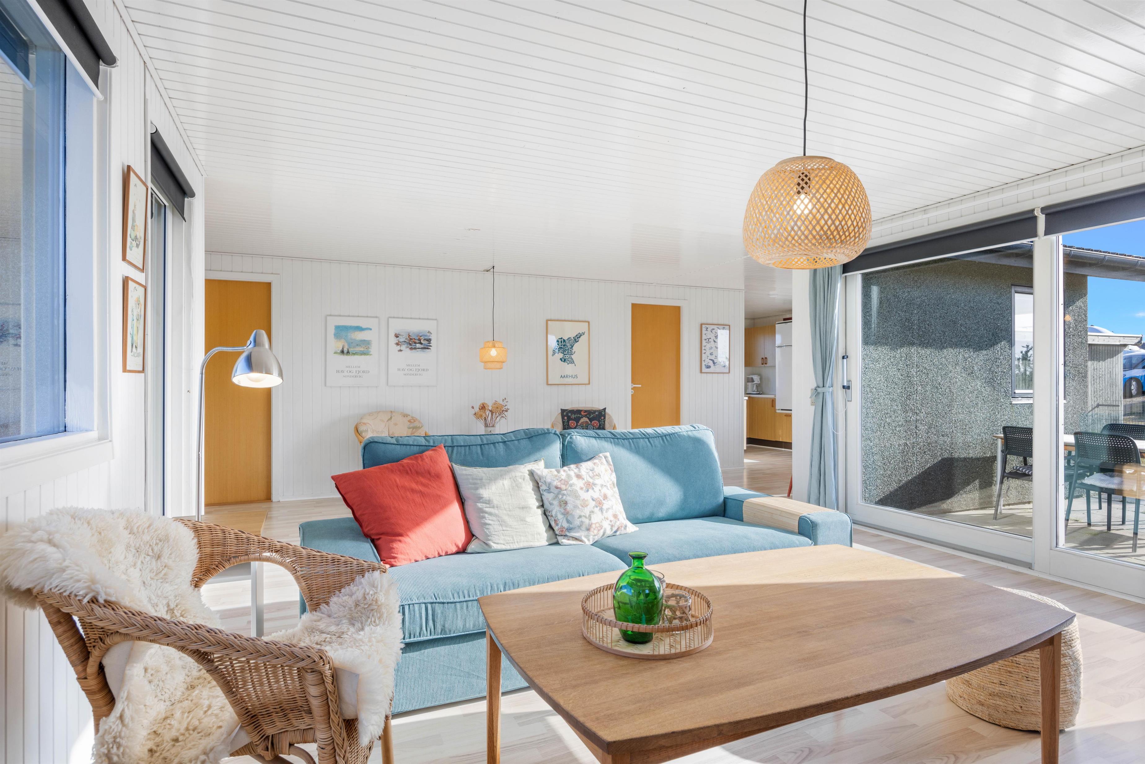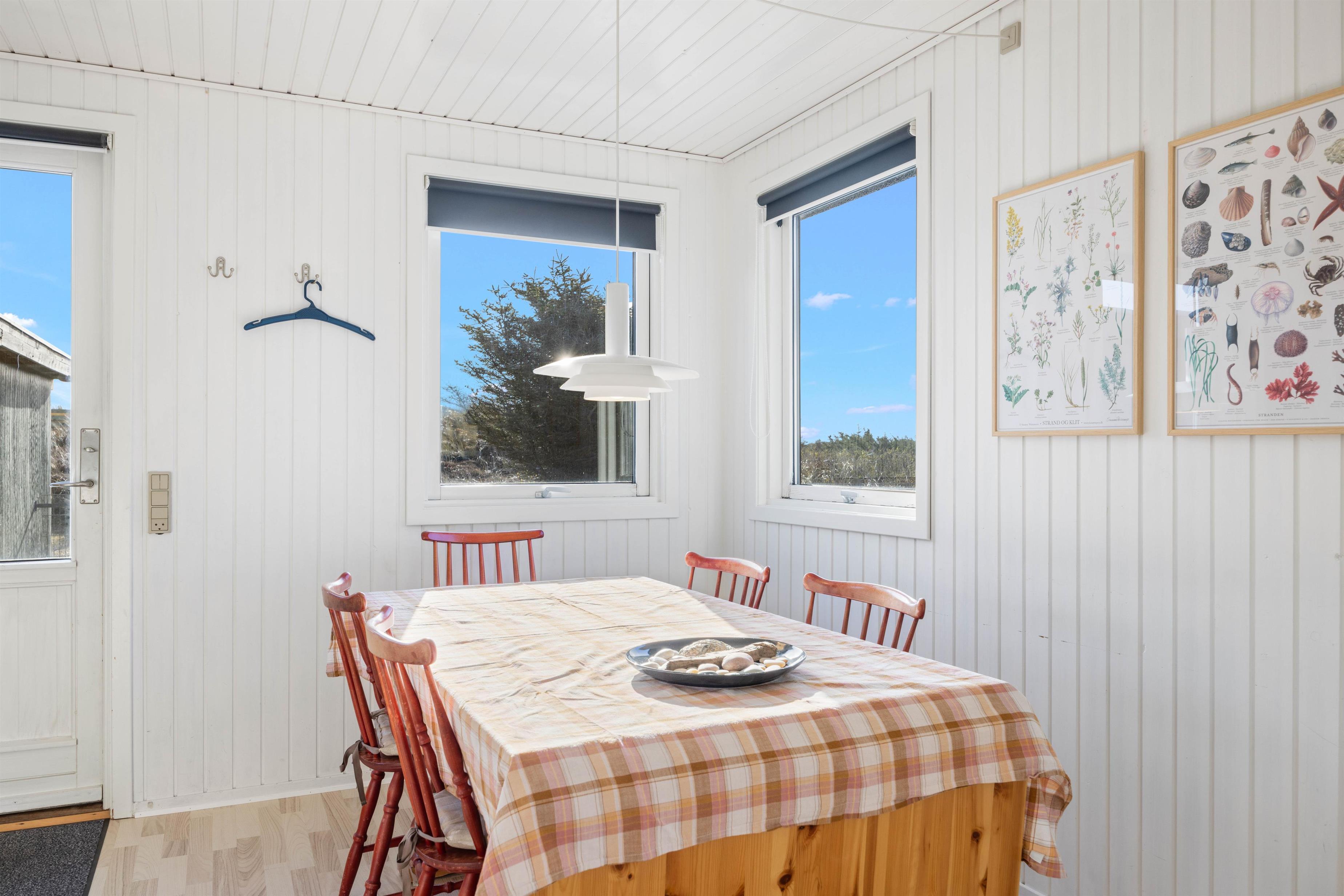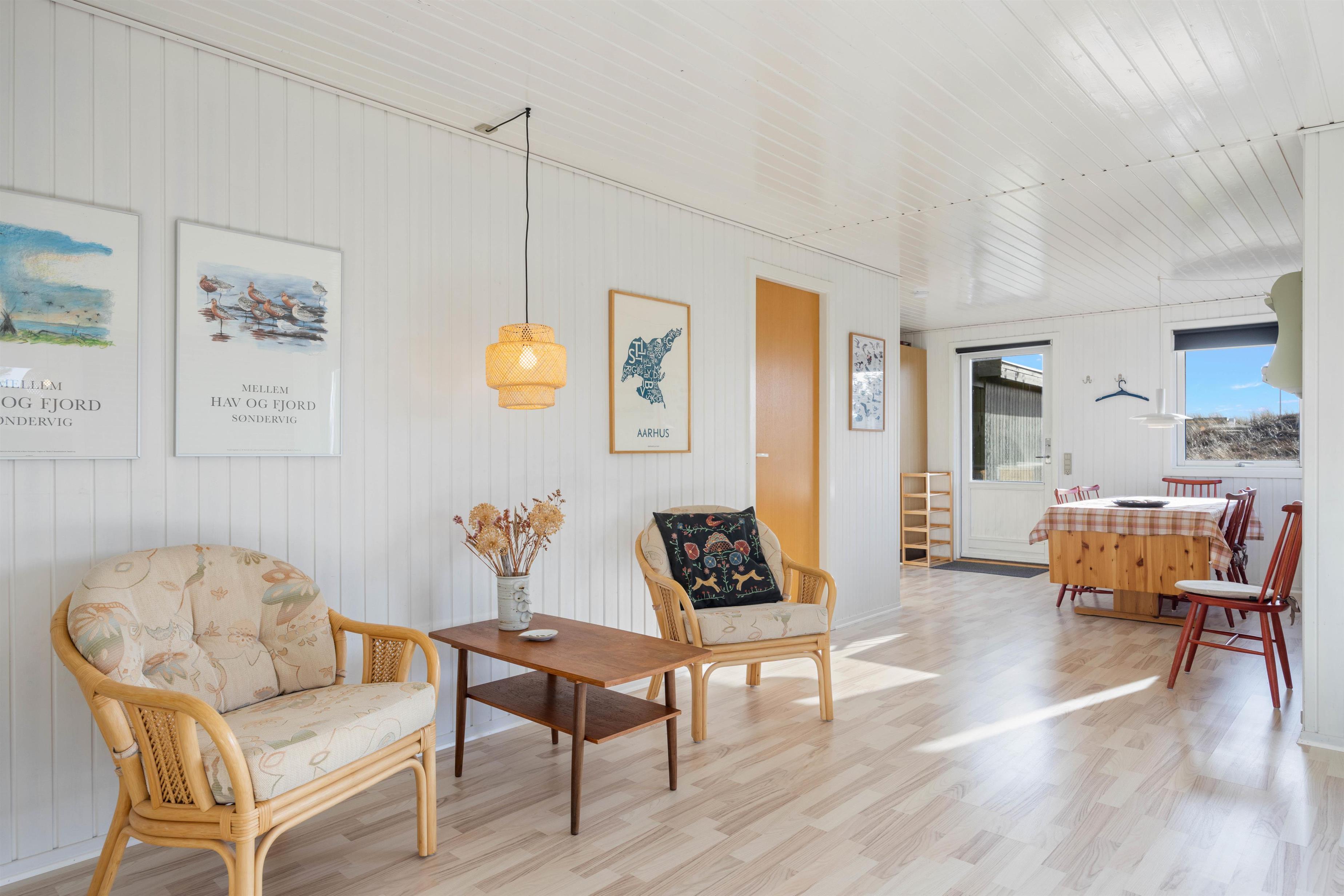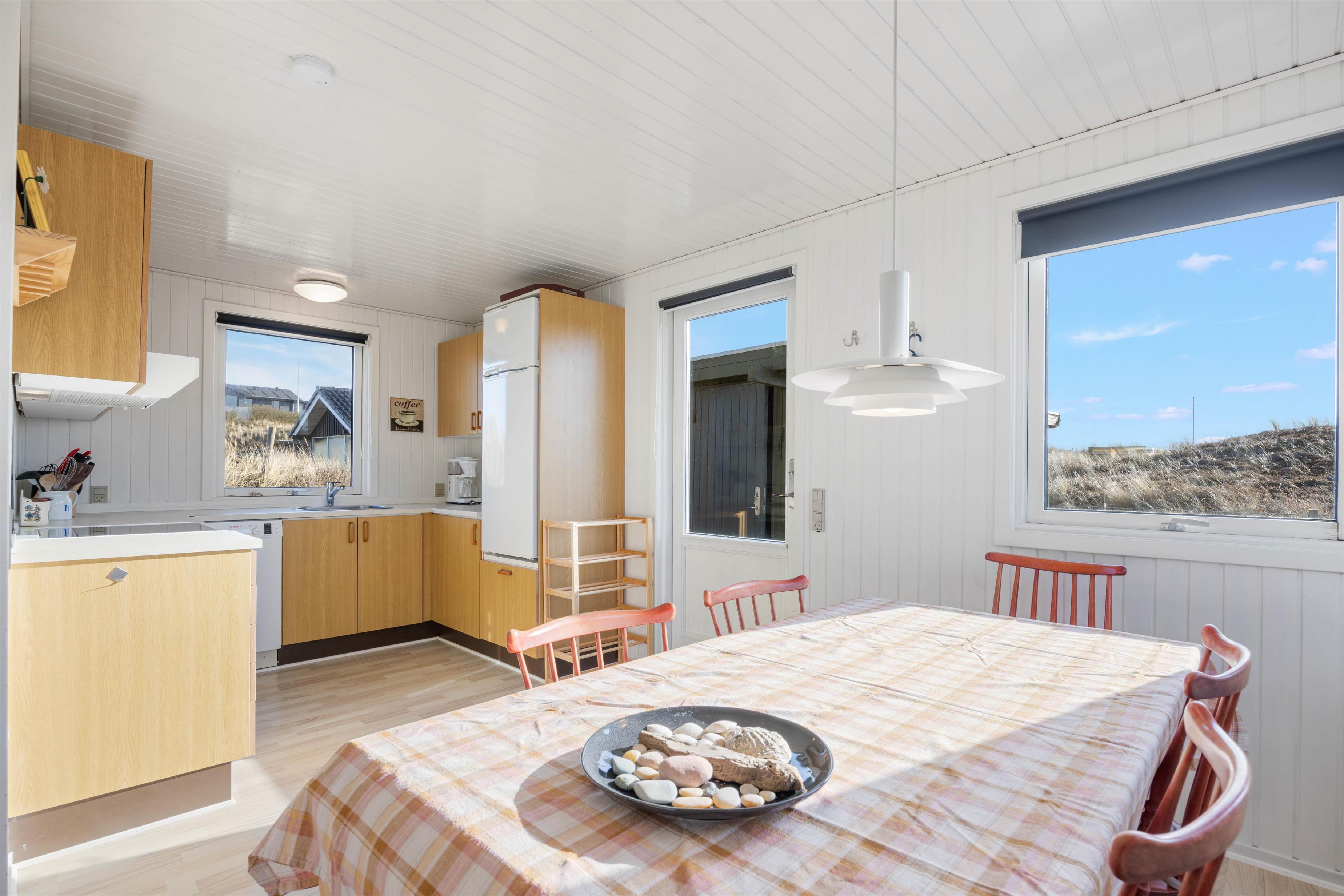 Sæt jer godt til rette i sofaen eller lænestolen og betragt det smukke klitlandskab gennem vinduespartierne, eller nyd en lækker middag ved bordet. Efter aftensmaden kan I tænde op i brændeovnen og blive varmet godt igennem, eller måske se en film sammen med hele familien. Mulighederne er uendelige, og der bliver masser af tid til samvær og hygge i dette skønne sommerhus.