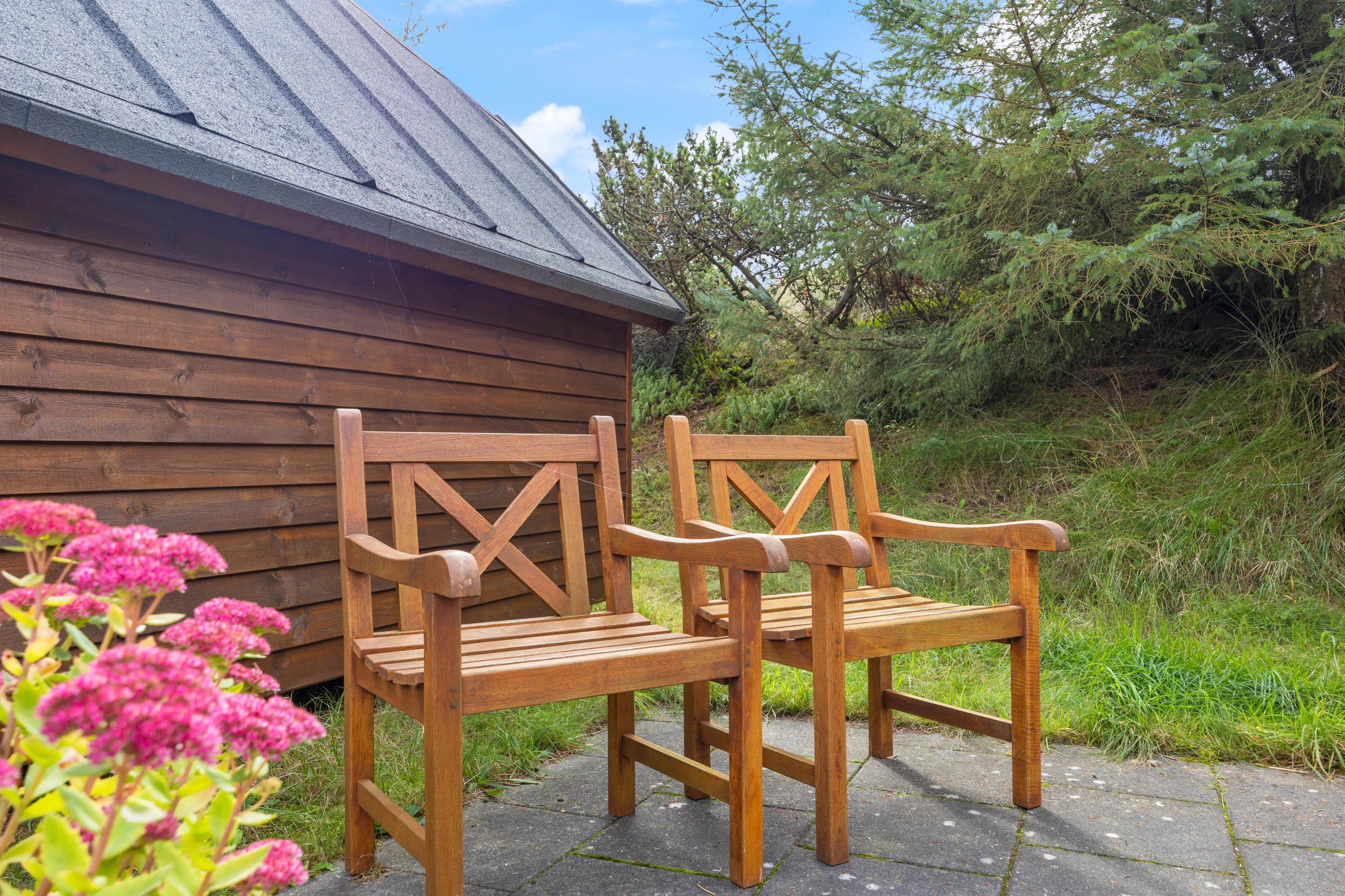 Huset ligger på en rigtig skøn naturgrund, hvor der er plantet træer og buske for at give en naturlig afskærmning, så man uforstyrret kan nyde ferielivet. På de dejlige velanlagte terrasser med gode havemøbler kan du nyde din ferie i fulde drag sammen med familie og venner. Så smid stegen på grillen og nyd de lange lyse aftener.