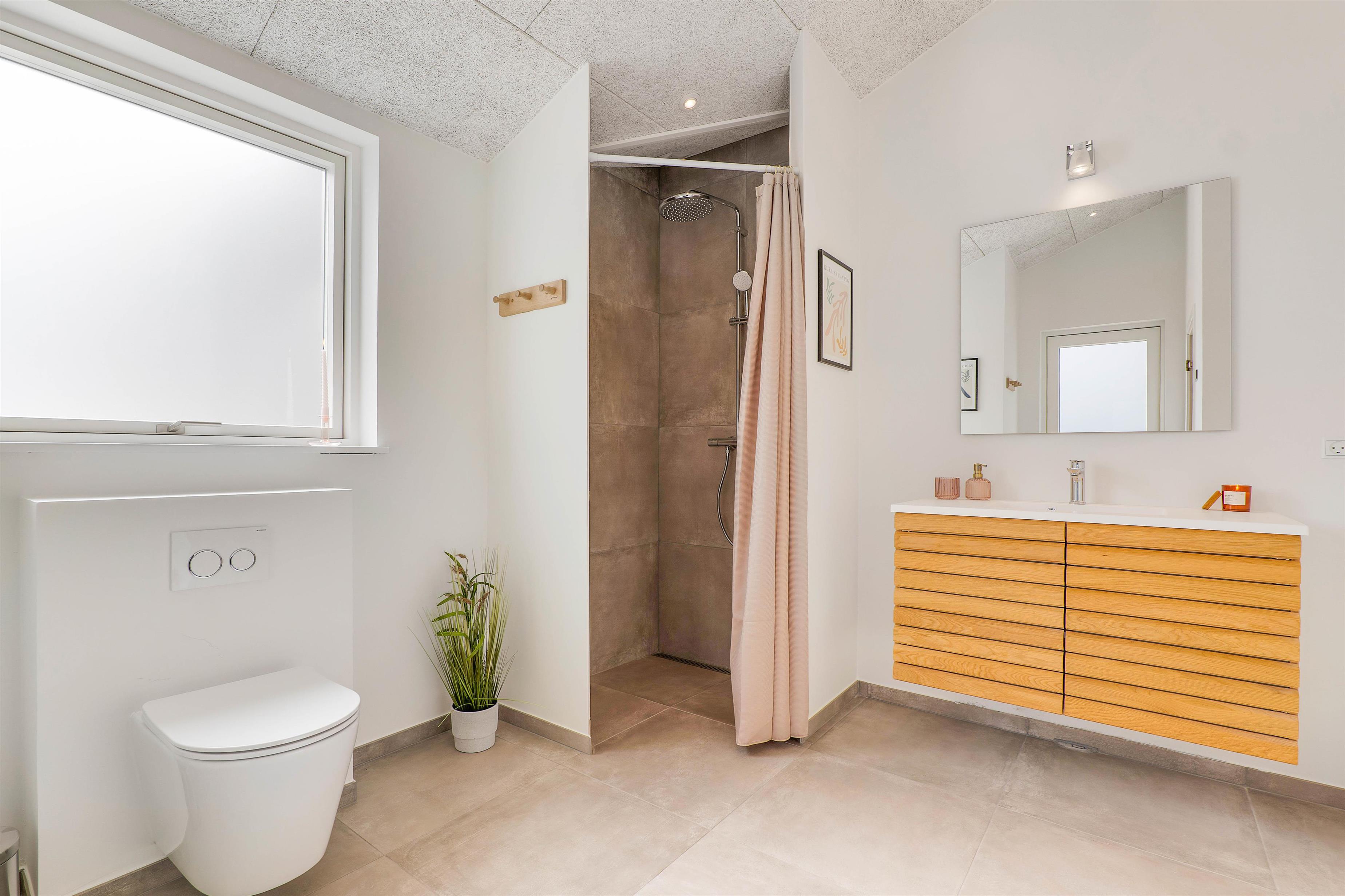 I kan også søge mod det ene af sommerhusets badeværelser, hvor der er en lækker sauna, som I kan sætte jer godt til rette i og lade varmen forkæle kroppen. I kan også sætte jer ind i saunaen efter en tur ved Vesterhavet, så I kan blive varmet godt igennem igen.