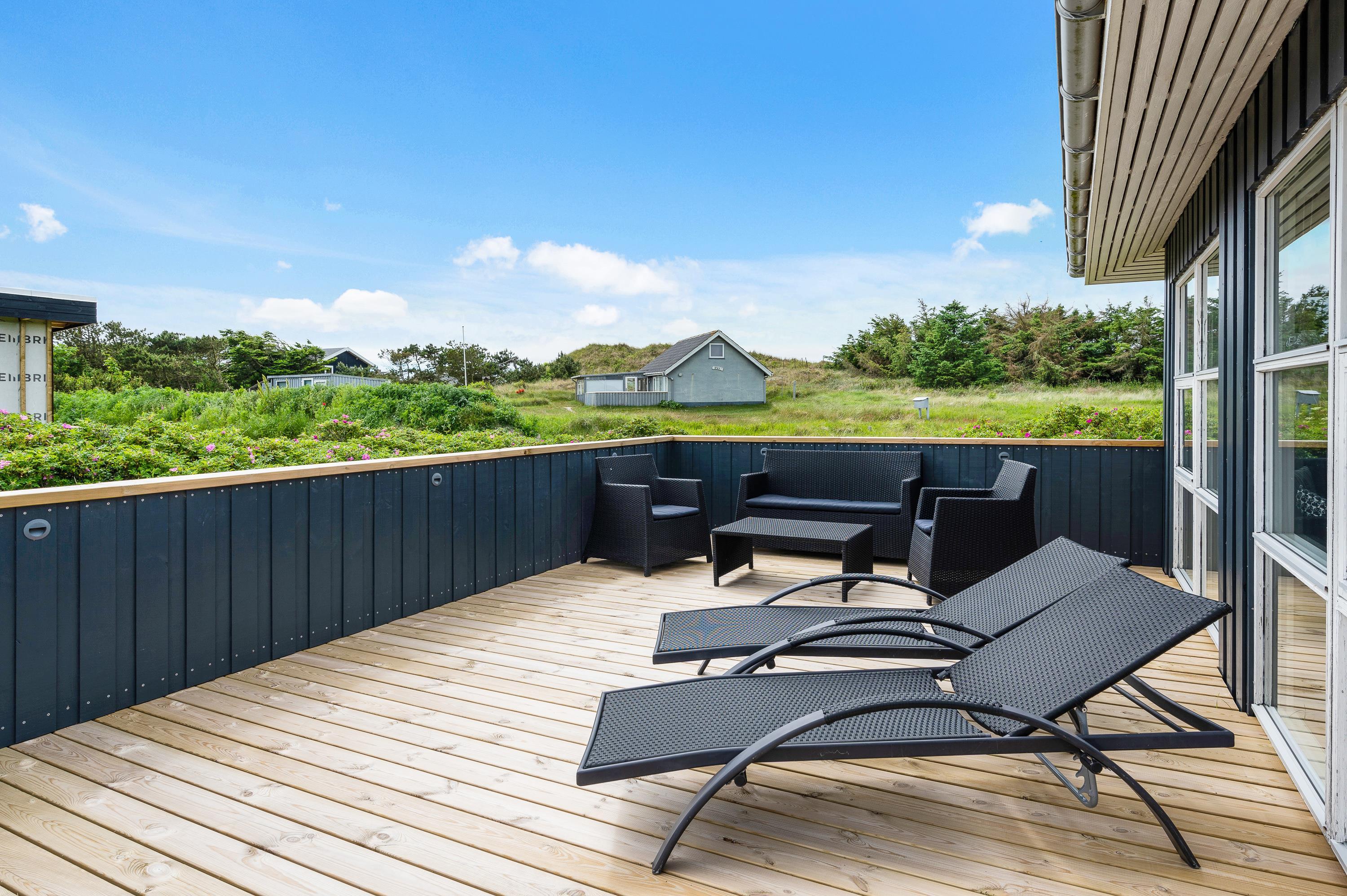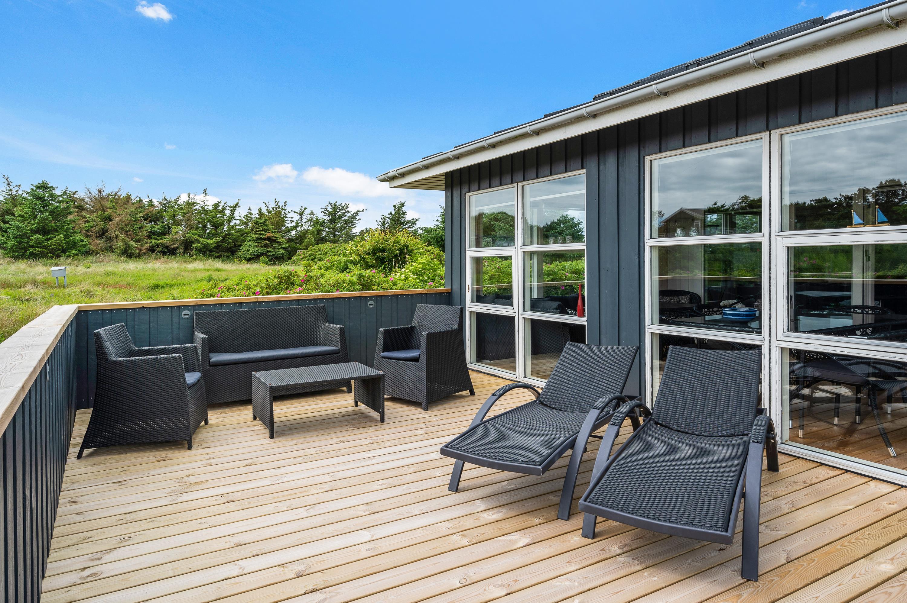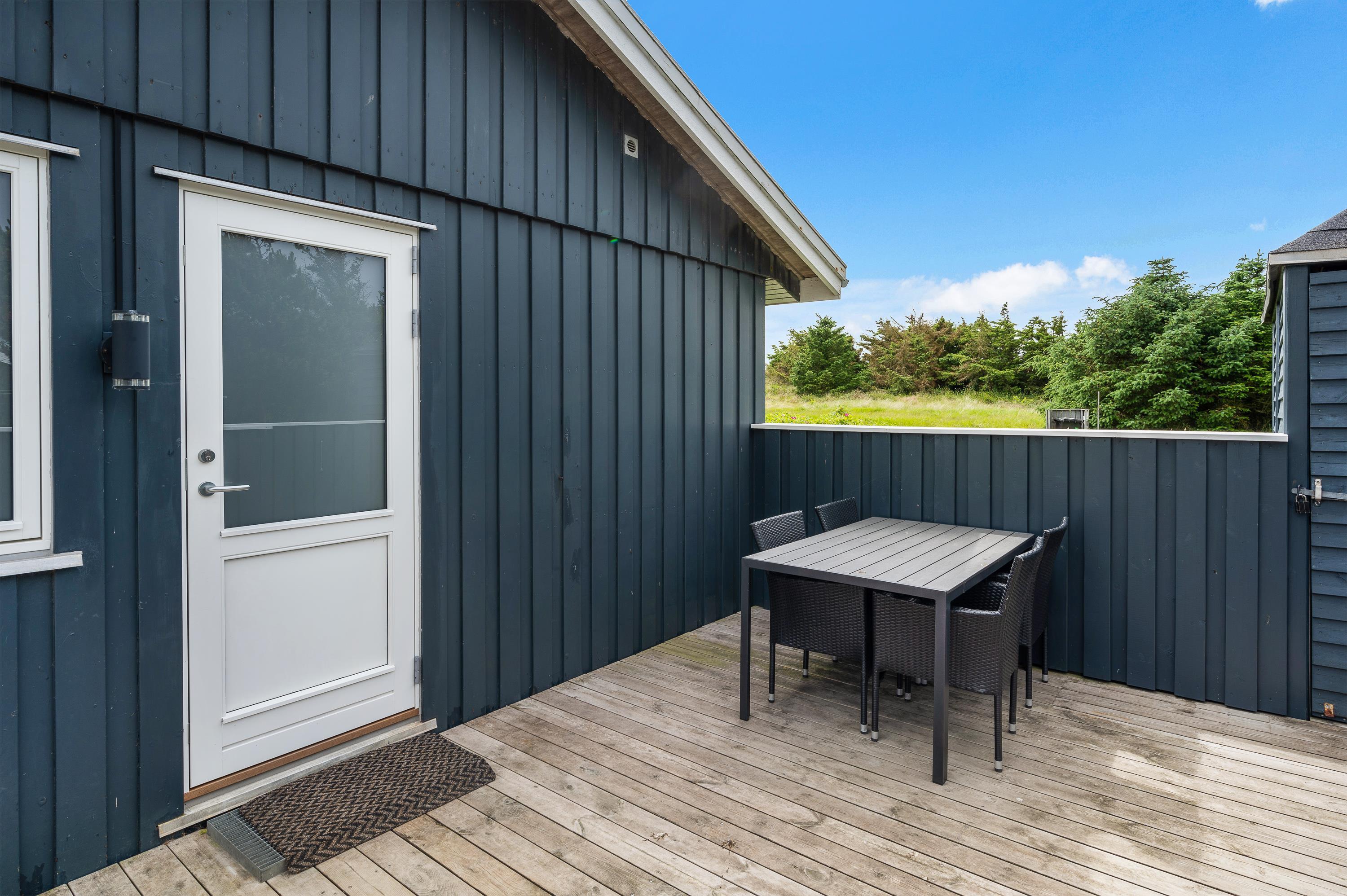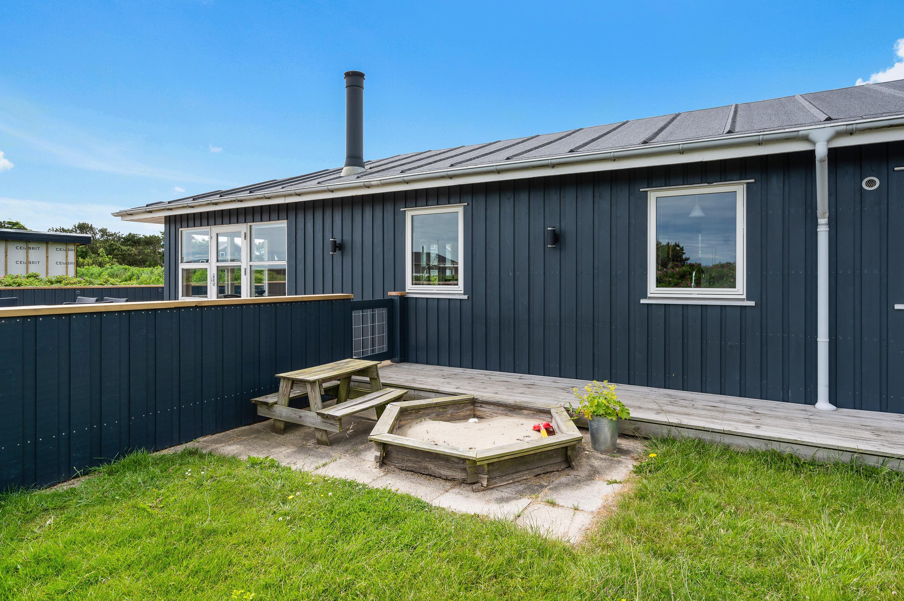 På den lukkede terrasse kan både børn og hunde få lov til at lege frit, mens I soler jer i liggestolene. Her på den store træterrasse er der selvfølgelig flere forskellige møbler, så I kan sætte jer godt til rette og nyde den friske vesterhavsluft. Fordi at terrassen både vender mod syd og øst, kan I uanset tidspunktet på dagen nyde solen og det danske vejr.