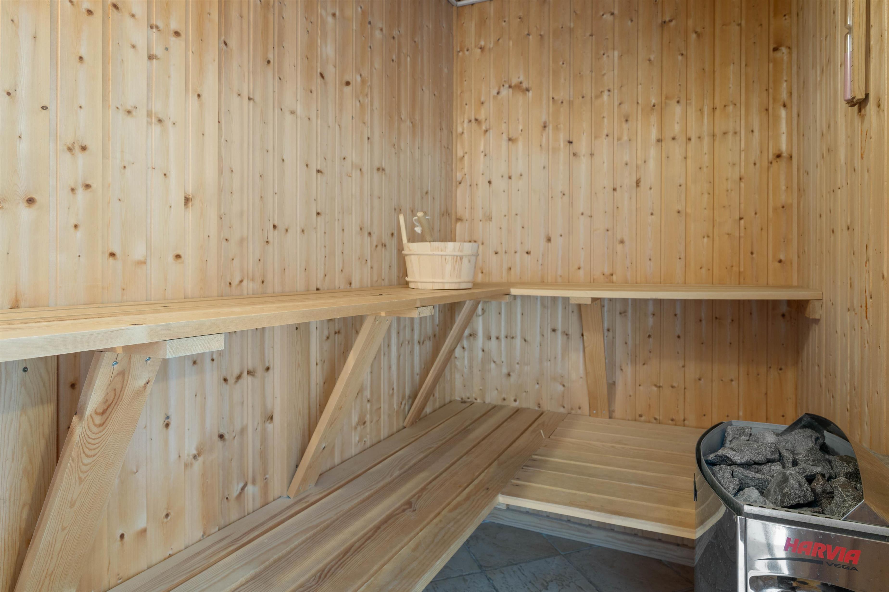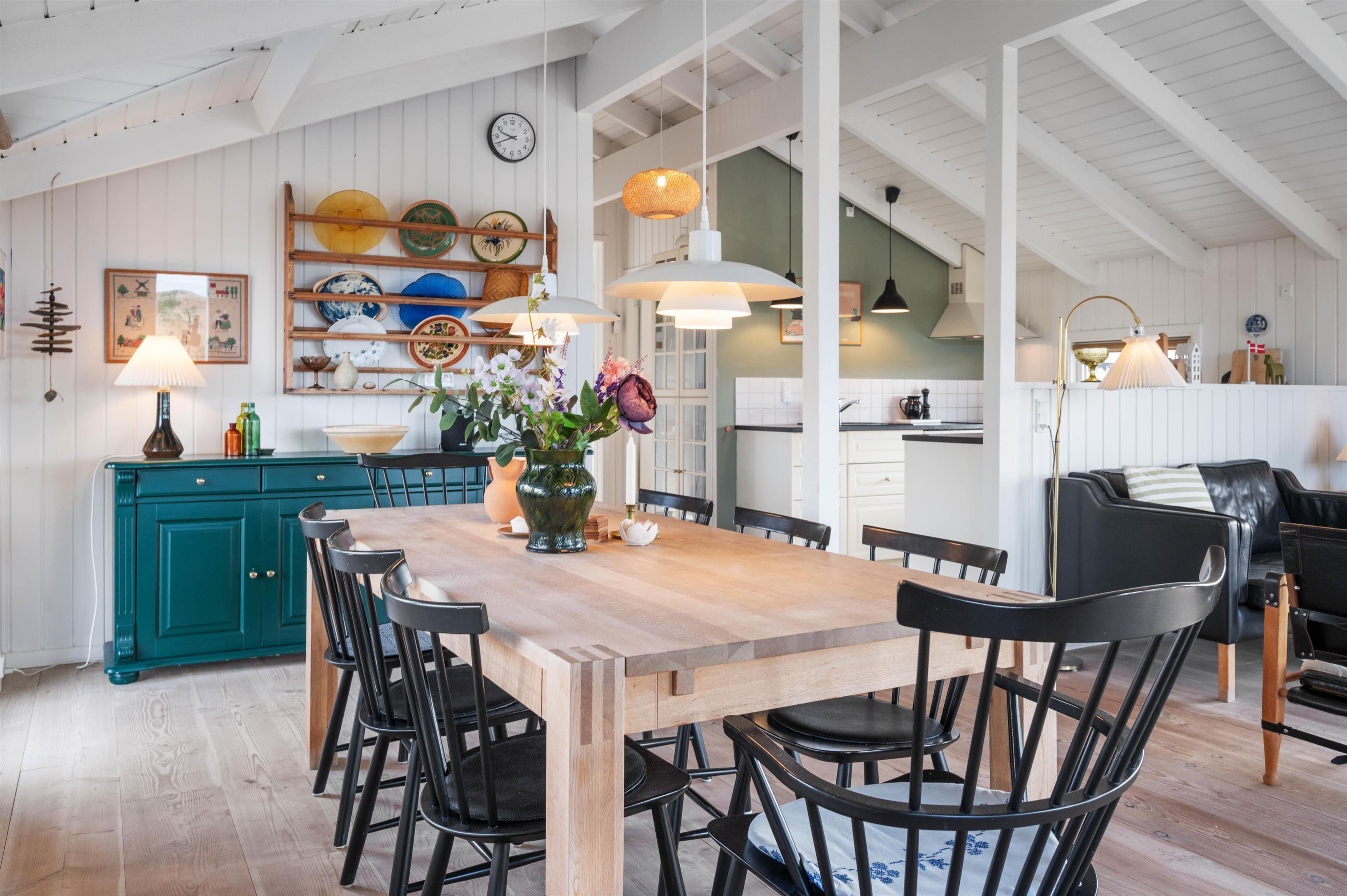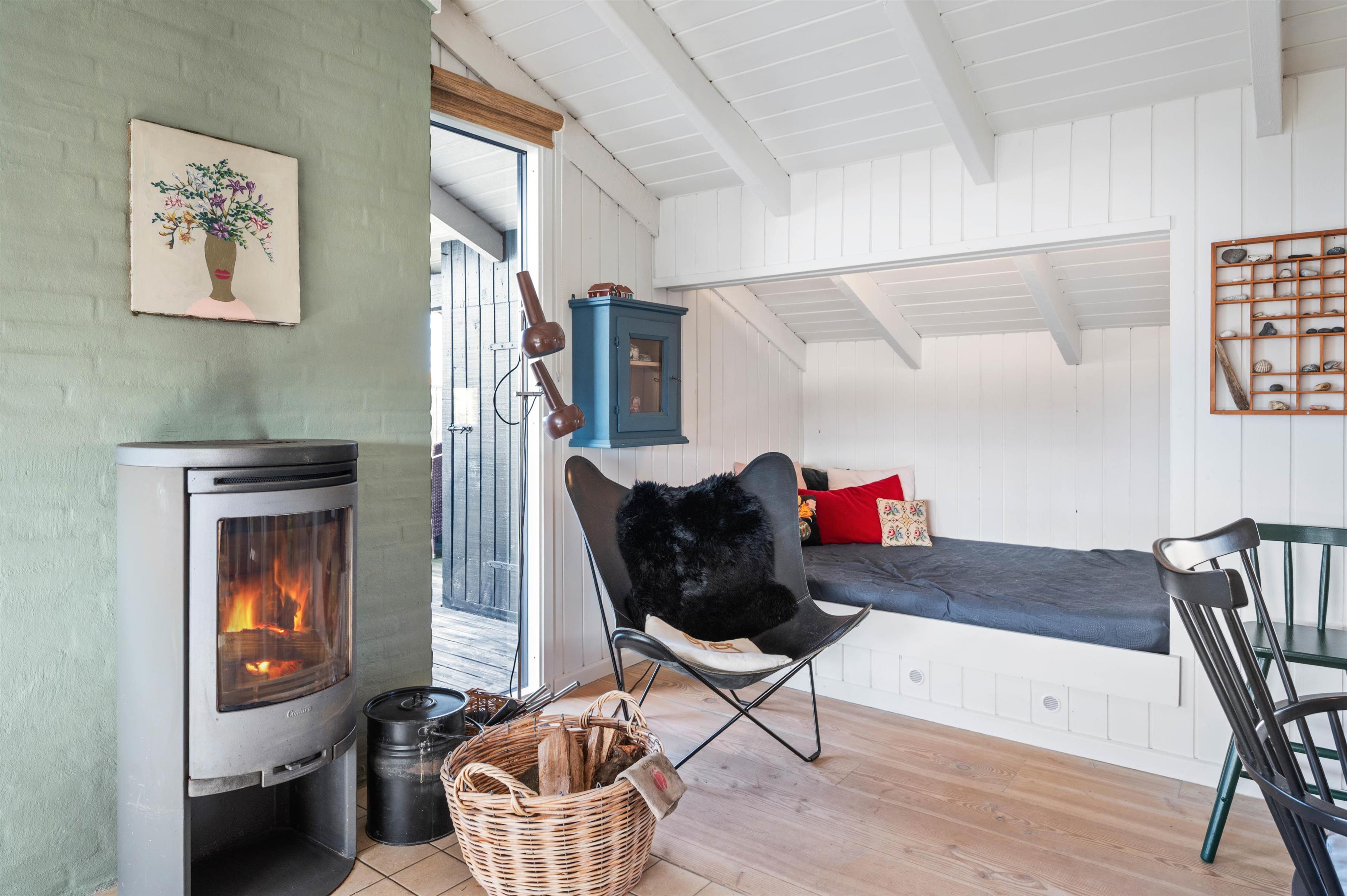 Sommerhuset er indrettet med fokus på afslapning, komfort og velvære. Har I været ude i den friske luft hele dagen, er det dejligt at kunne lade kroppen op i varmen fra saunaen eller vandet i spabadet. Ligesom huset falder i ét med naturen udenfor, så har man også i husets indretning inviteret naturen indenfor. Indretningen er holdt helt enkelt med lyse vægge, lofter og gulve samt flotte, enkle møbler. Det gør, at naturen kommer til sin ret, og den får en central placering både ude og inde.