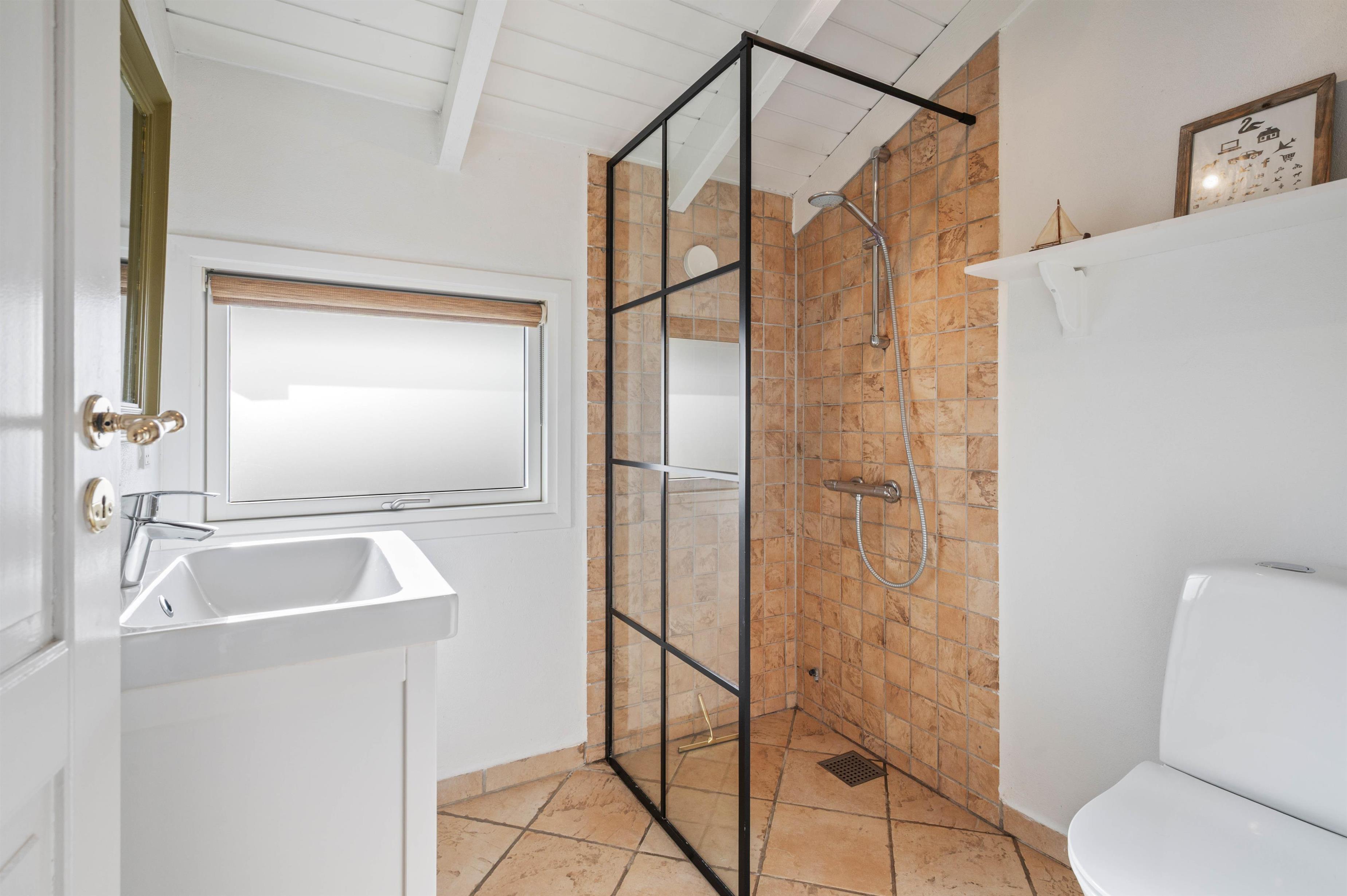 Selve sommerhuset er på 110m2 og fordeler sig på tre soverum, hvoraf det ene har dobbeltseng. Der er både brændeovn, spabad og sauna til at skabe en ægte sommerhusstemning.