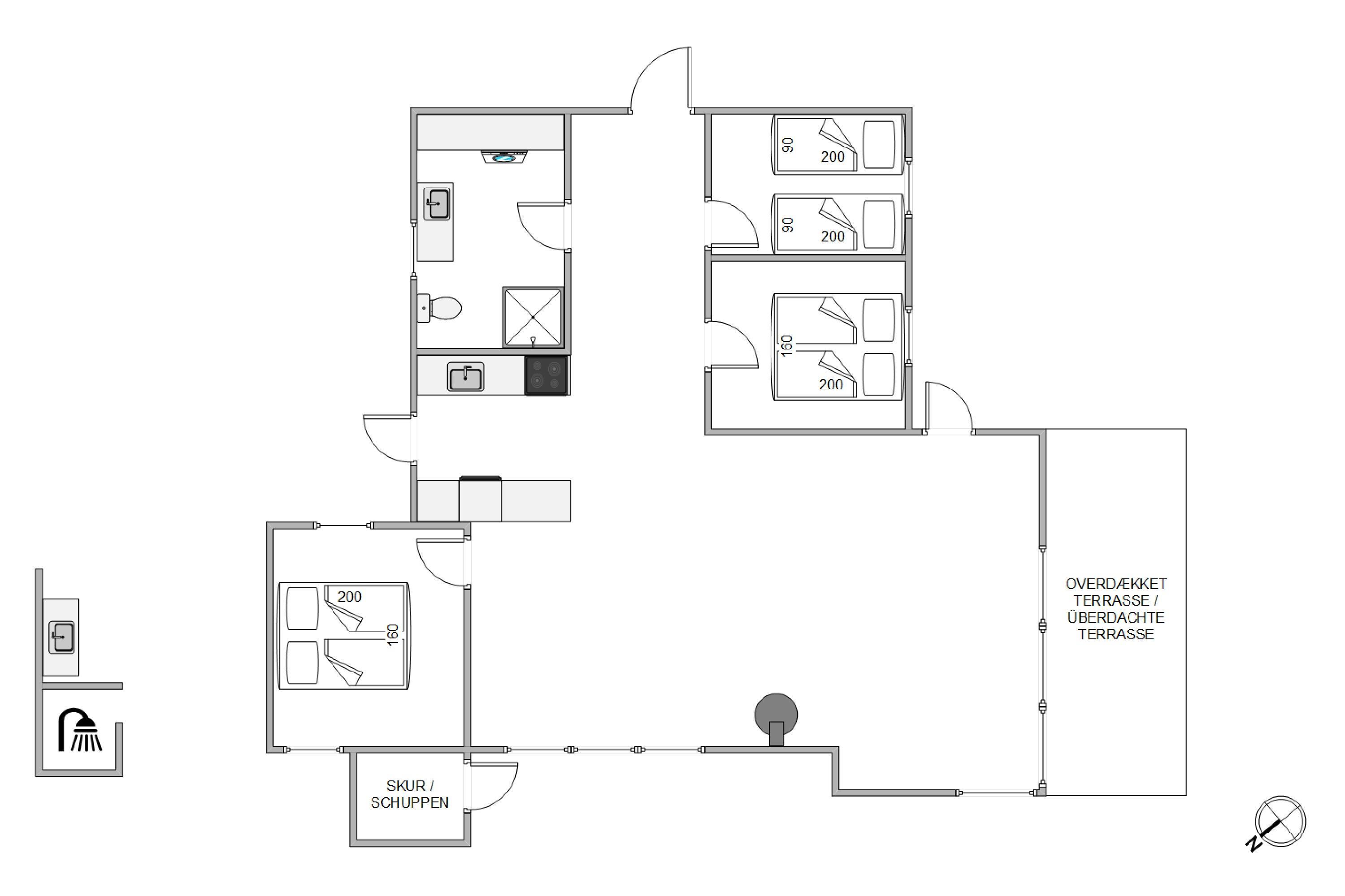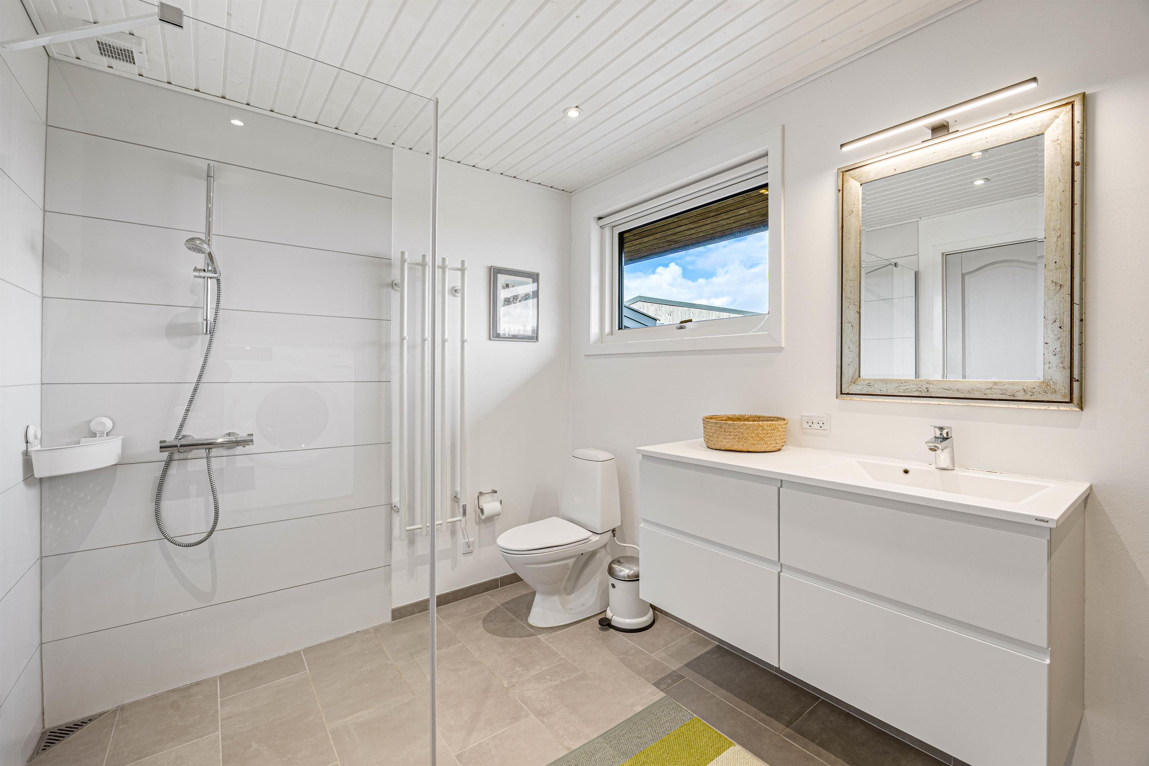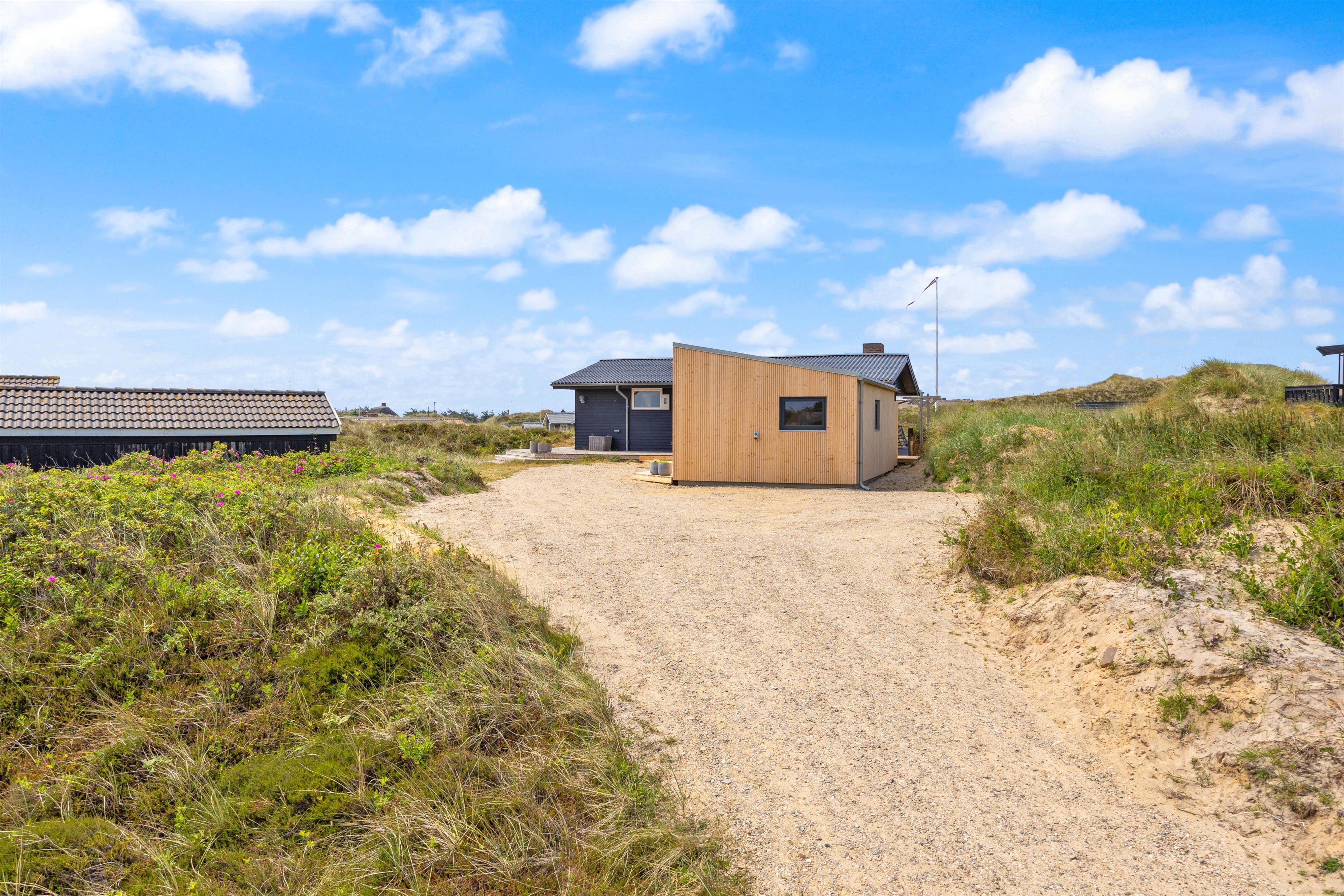 Sommerhuset ligger kun 250 meter fra Vesterhavet, så der er rig mulighed for på en frisk dukkert i bølgerne eller en gåtur langs vandet. Efter en lang dag ved stranden, hvor I har taget en dukkert, har I mulighed for at skylle kroppen og fødderne for sand i feriehusets udebruser, så I er fri for at tage sandet med indenfor. Udebruseren vil I kunne benytte jer af i perioden april til november. Mod syd finder I badebyen Søndervig, som hvert år gæstes af et stort antal turister. Byen byder på et godt udvalg af butikker, restauranter, caféer og underholdning samt badelandet Lalandia.