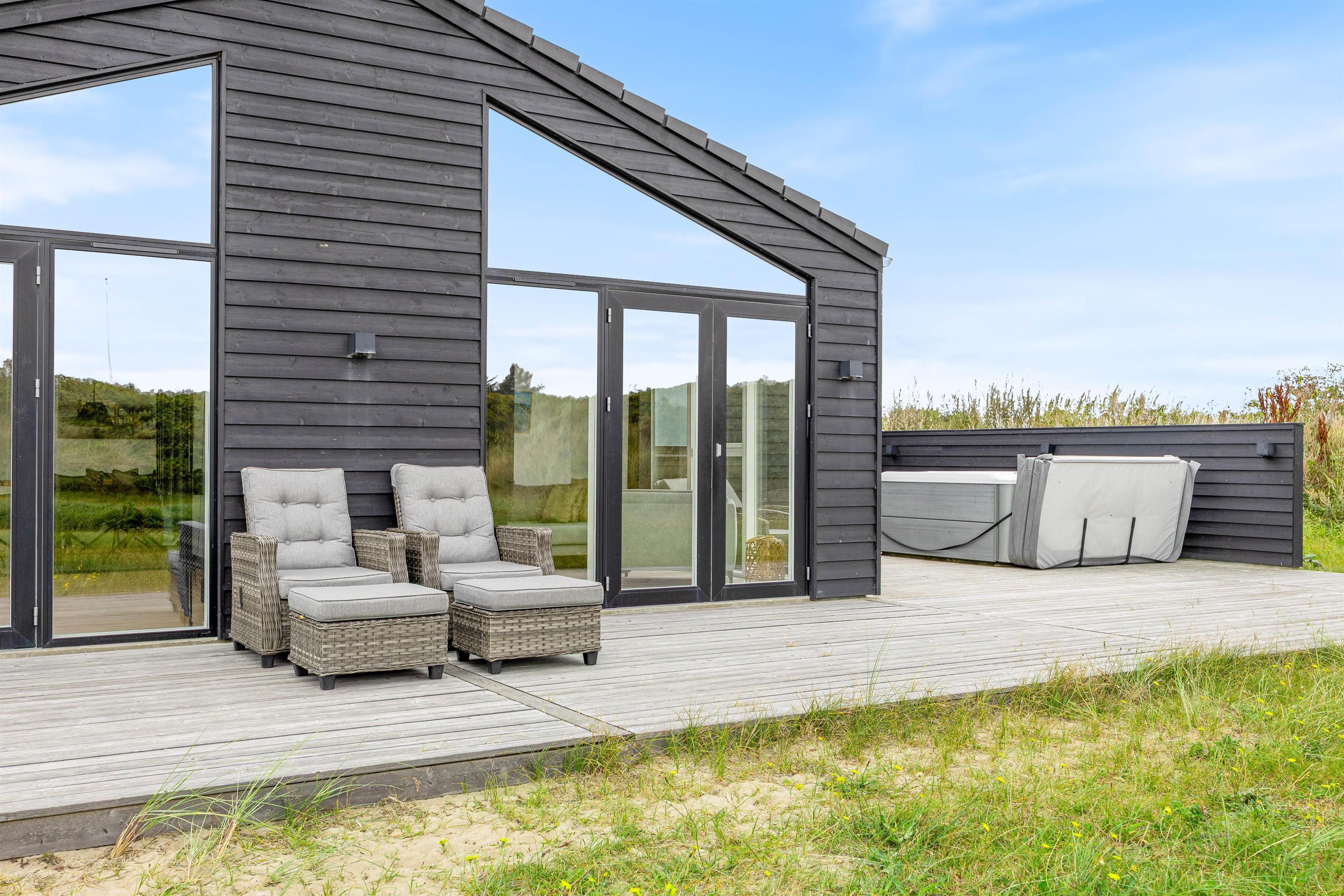 På terrassen kan I nyde en dejlig, afslappende stund i den skønne udespa, hvor I virkelig kan slappe af i det varme, boblende vand, der forkæler kroppen. Inden I sætter jer i udespaen, kan I skylle jer under udebruseren på terrassen. Et skyl under udebruseren er også oplagt efter en tur ved stranden, så I kan få skyllet sandet af tæerne. I kan benytte jer af udebruseren i perioden arpil til november.