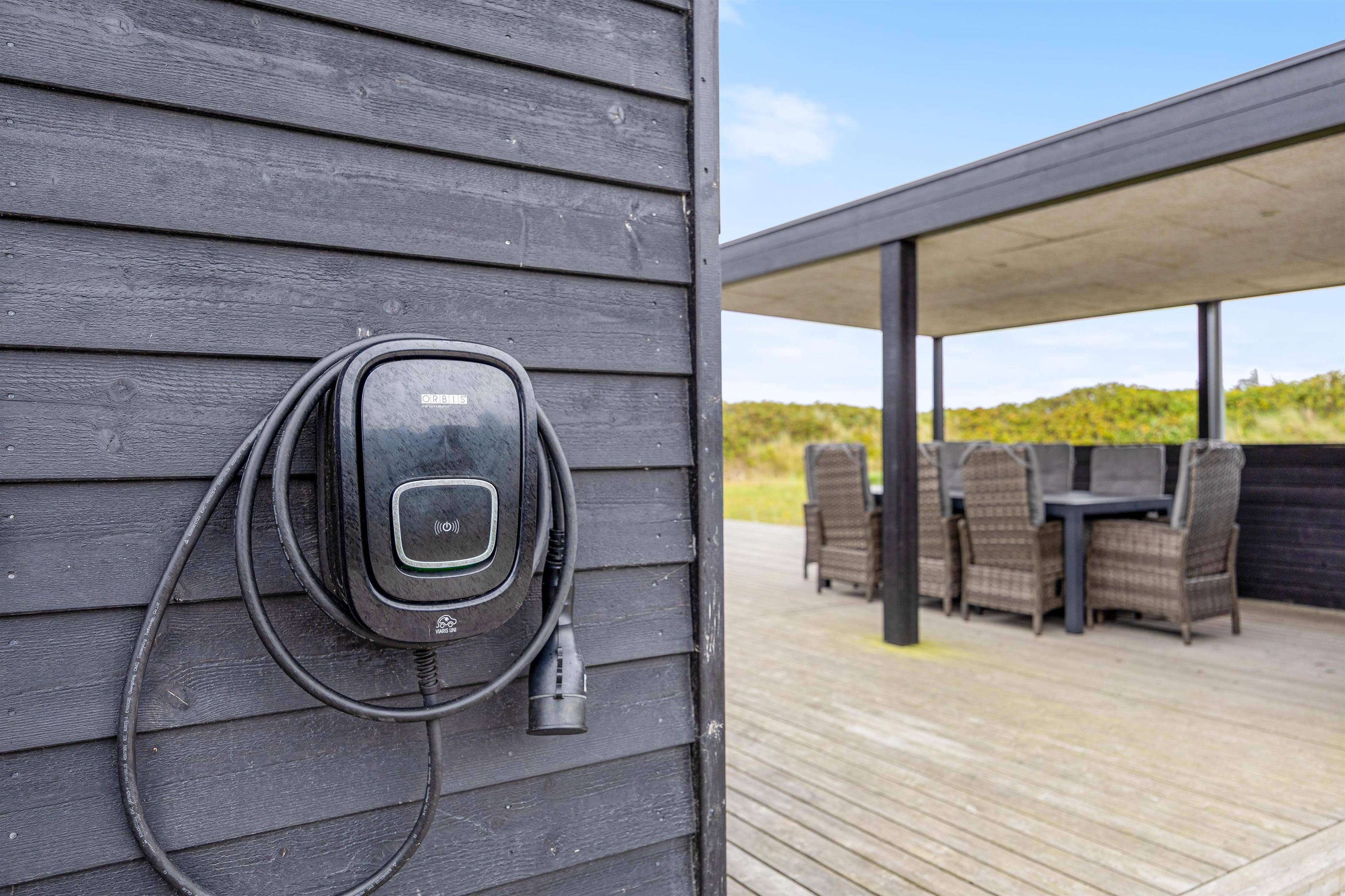 Skal jeres næste ferie foregå ved Vesterhavet? Så tag et kig på dette lækre feriehus på Klitdalen 15A. Det femstjernede feriehus, der er nybygget i 2022, byder op til 8 personer inden for til en ferie, hvor I hverken kommer til at mangle afslapning eller underholdning. Afslapningen finder sted i den lækre sauna og den skønne udespa, og underholdningen foregår i aktivitetsrummet, hvor I både kan spille billard og bordtennis. En ekstra bonus ved dette feriehus er, at det kun ligger 550 meter fra stranden og Vesterhavet. Er I kørende i el-bil, kan I lade bilen op i ved feriehusets el-stik.