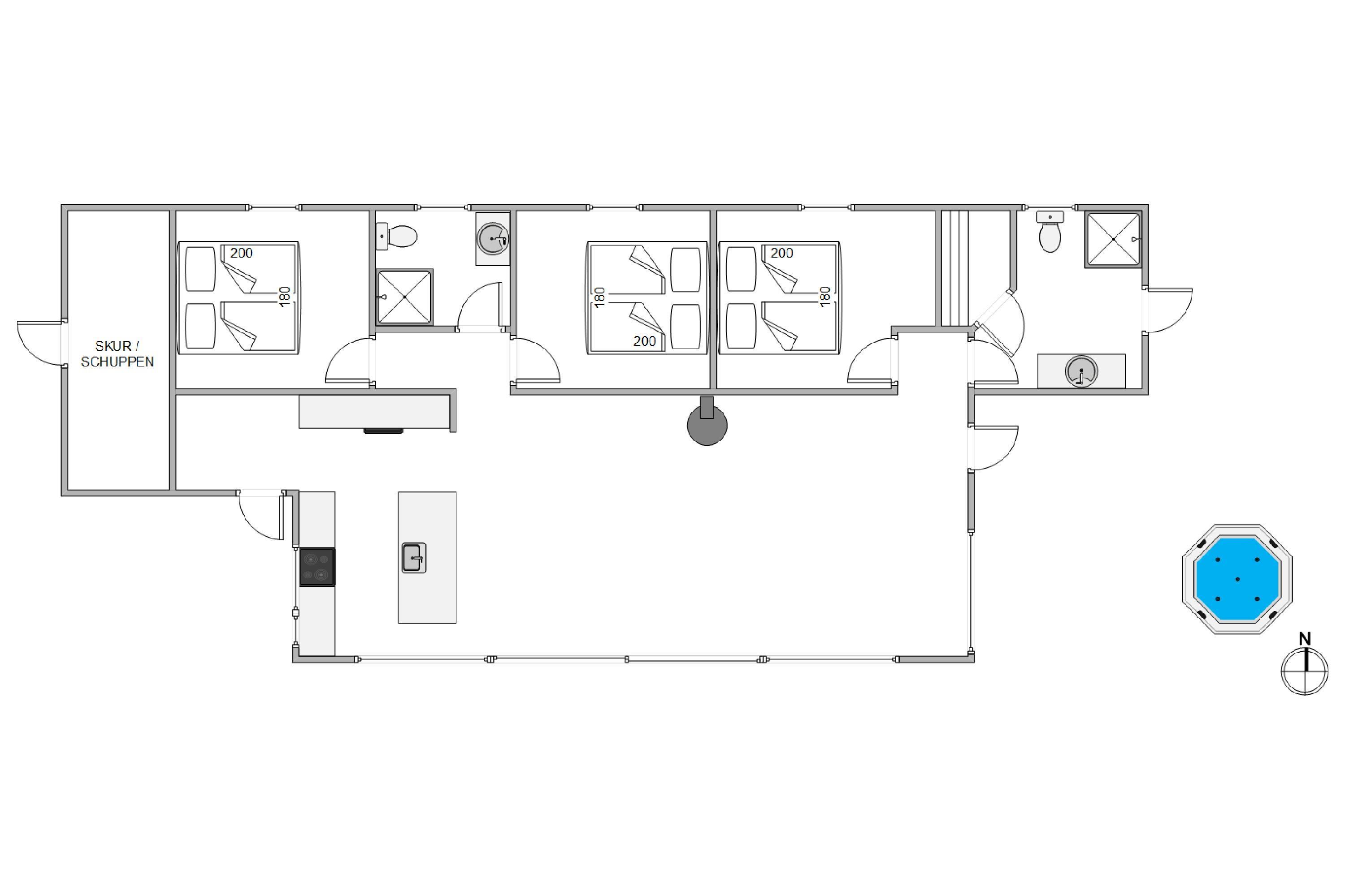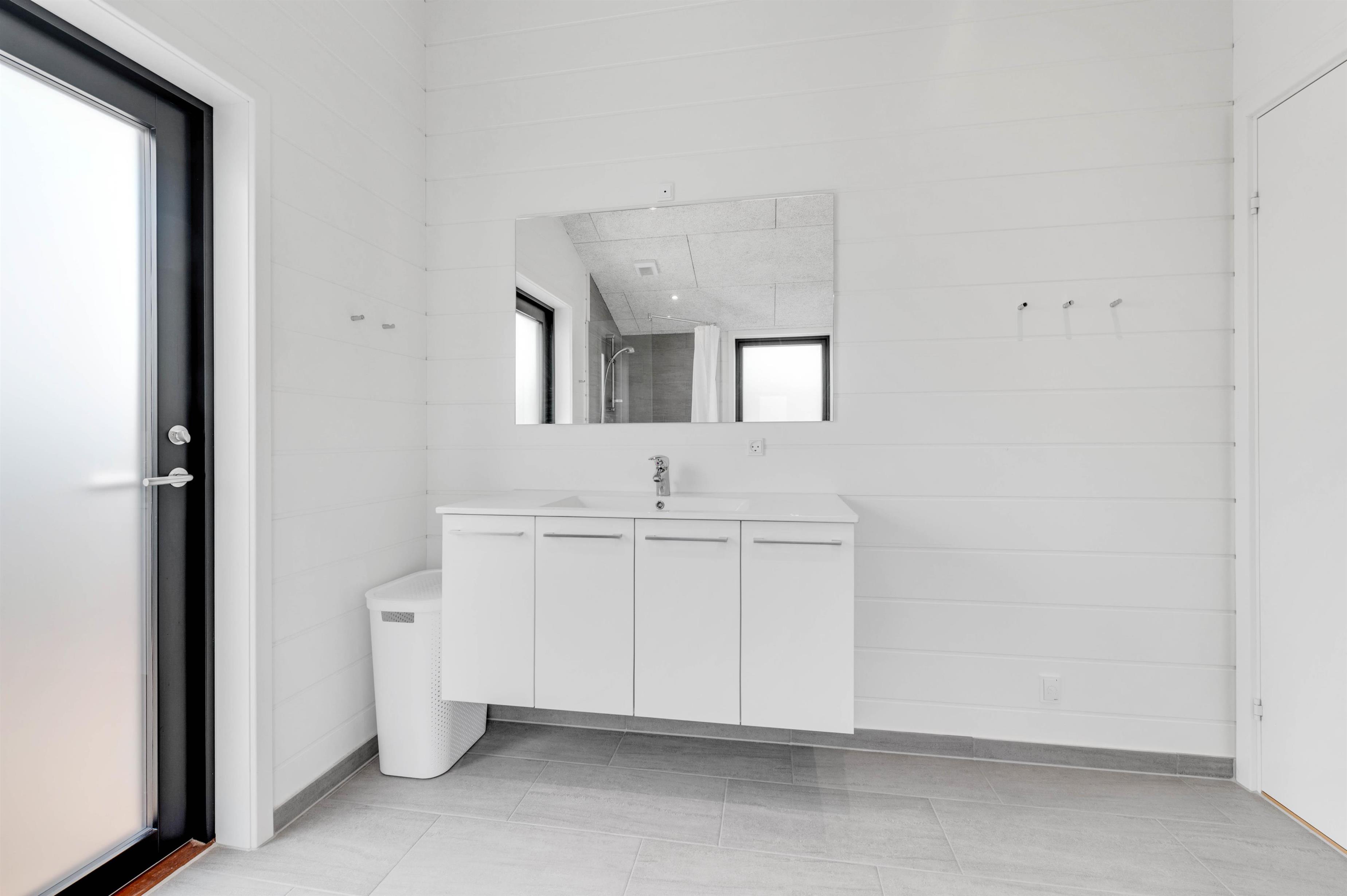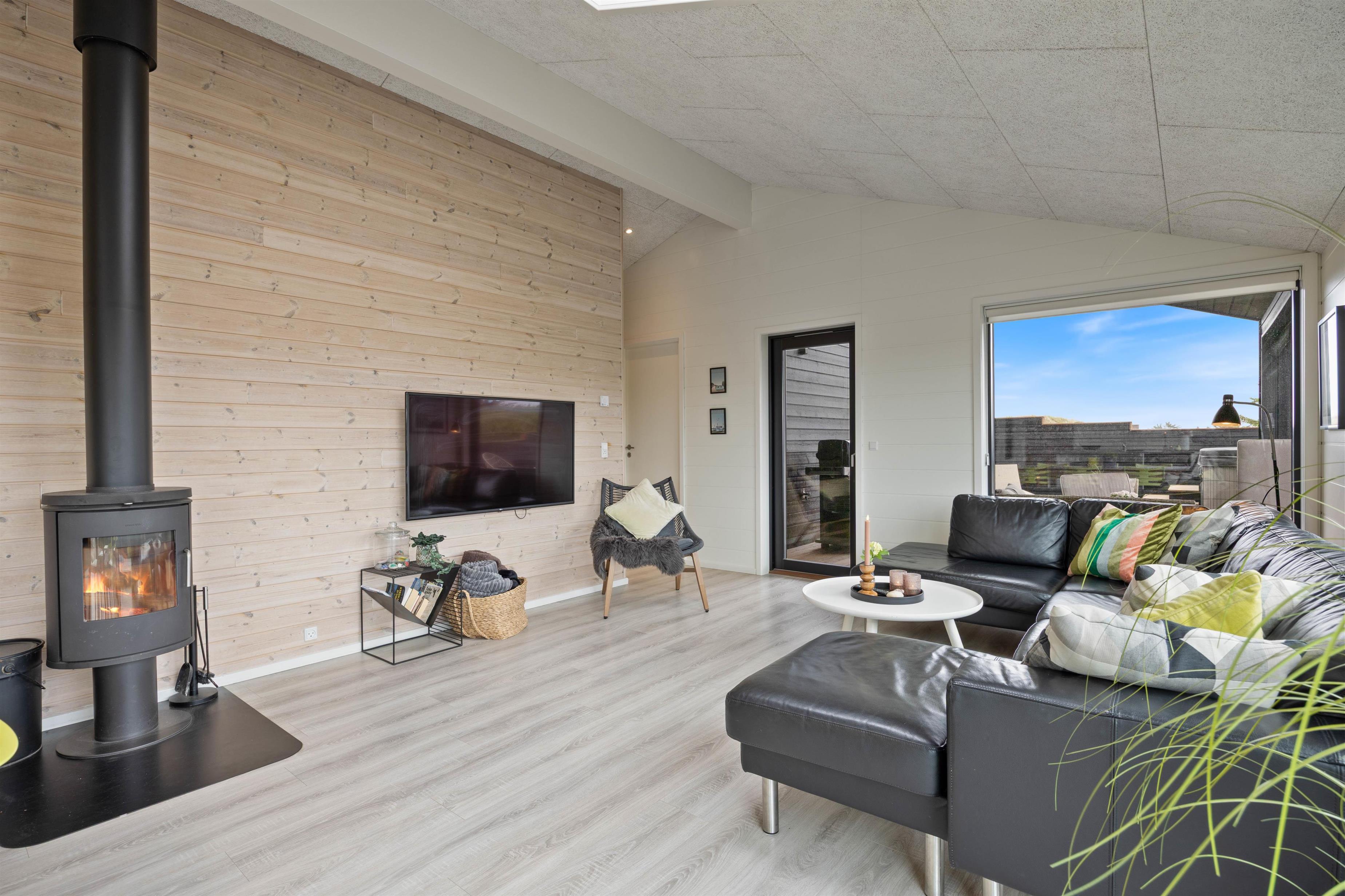Hele sommerhuset er dejligt lyst, og det er takket være de mange gode vinduespartier, som sørger for et dejligt lysindfald og byder hele den omkringliggende natur hele vejen indenfor. Generelt i hele huset, er der gode betingelser for afslapning og velvære. Brændeovnen i det rummelige alrum tilfører den klassiske feriestemning, og fra det største af sommerhusets 2 badeværelser er der indgang til saunaen, hvor I kan blive varmet godt igennem efter en dag i den friske havluft.