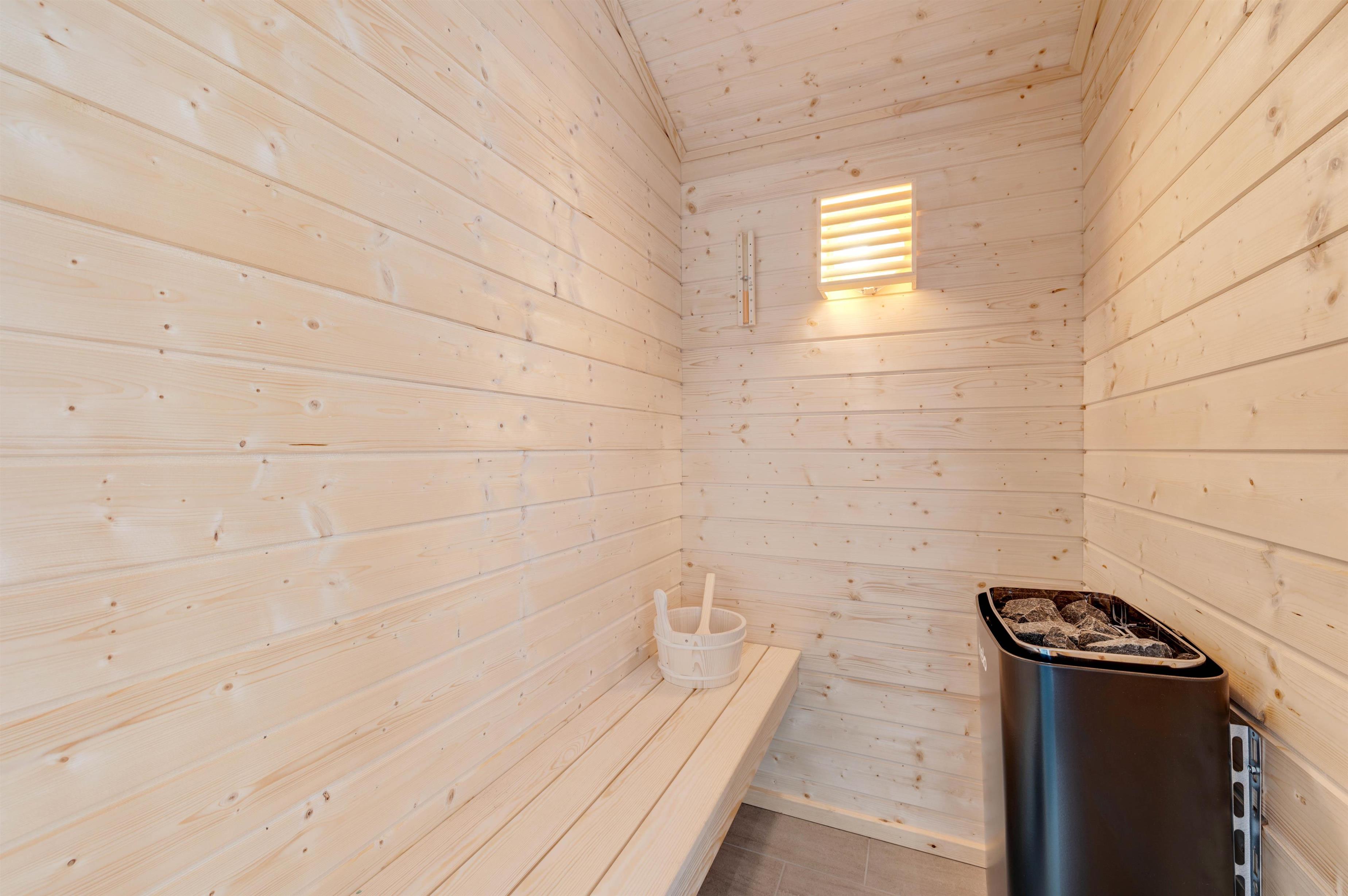 Ferie i lækre omgivelser med sauna, vinkøleskab og udendørs spabad