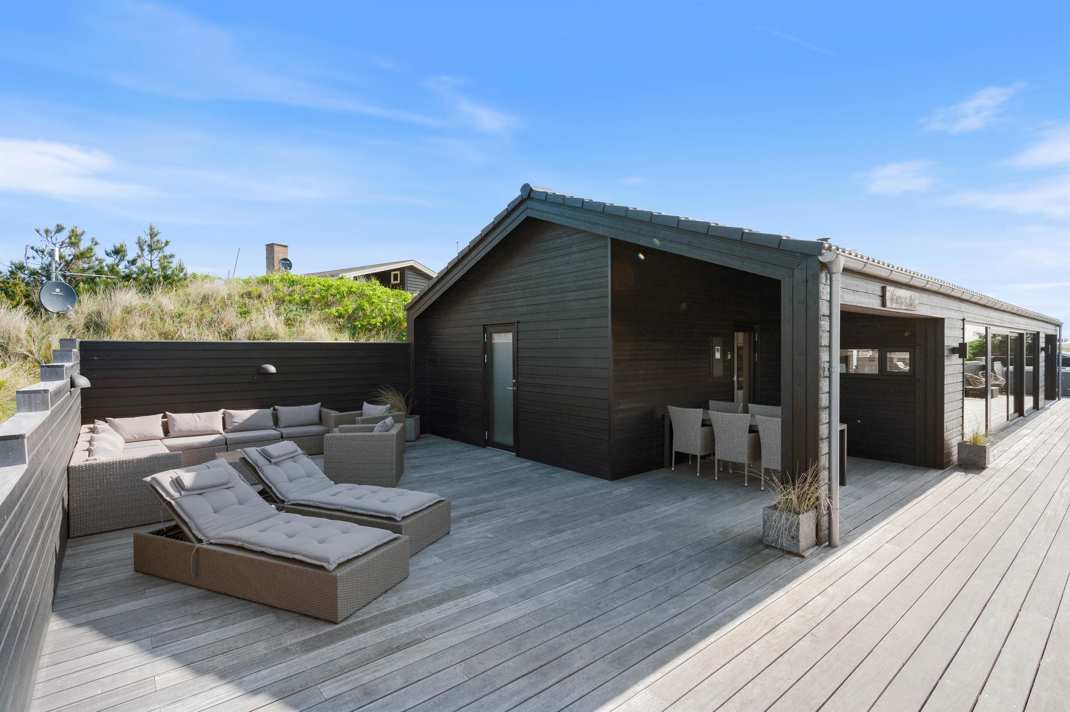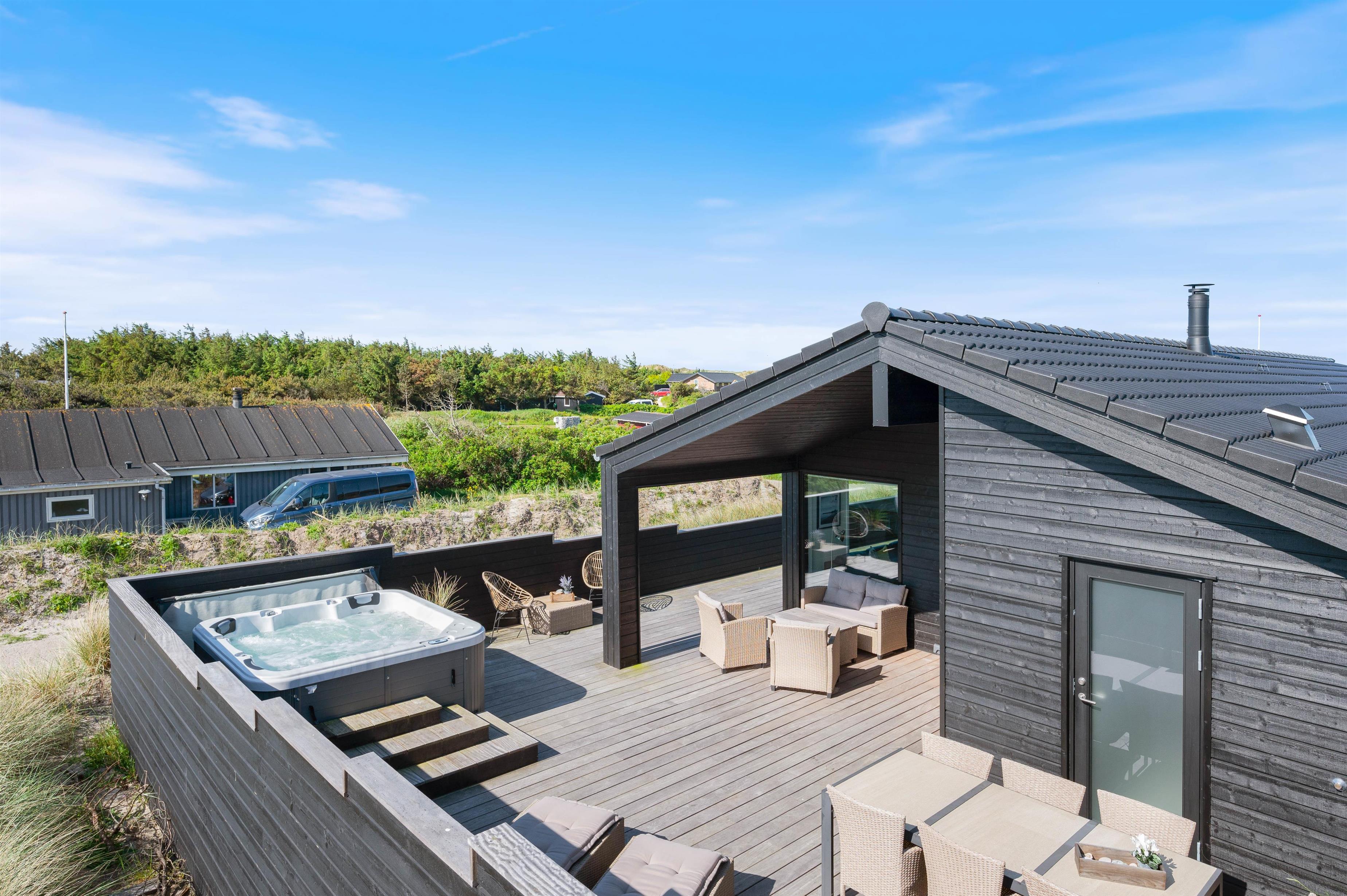 Længes I efter bred sandstrand og lyngklædt klitlandskab, og kan I også godt lide at holde ferie i ekstra skønne omgivelser? Så er dette sommerhus i Houvig på Lærkedalen 38, kun 400 meter fra Vesterhavet, det perfekte match til jer! Det feriehus der er lidt ud over det sædvanlige kan rumme op til 6 personer og har flere fantastiske highlights – blandt andet sauna, vinkøleskab og en lækker 150m2 stor terrasse med udendørs spa.