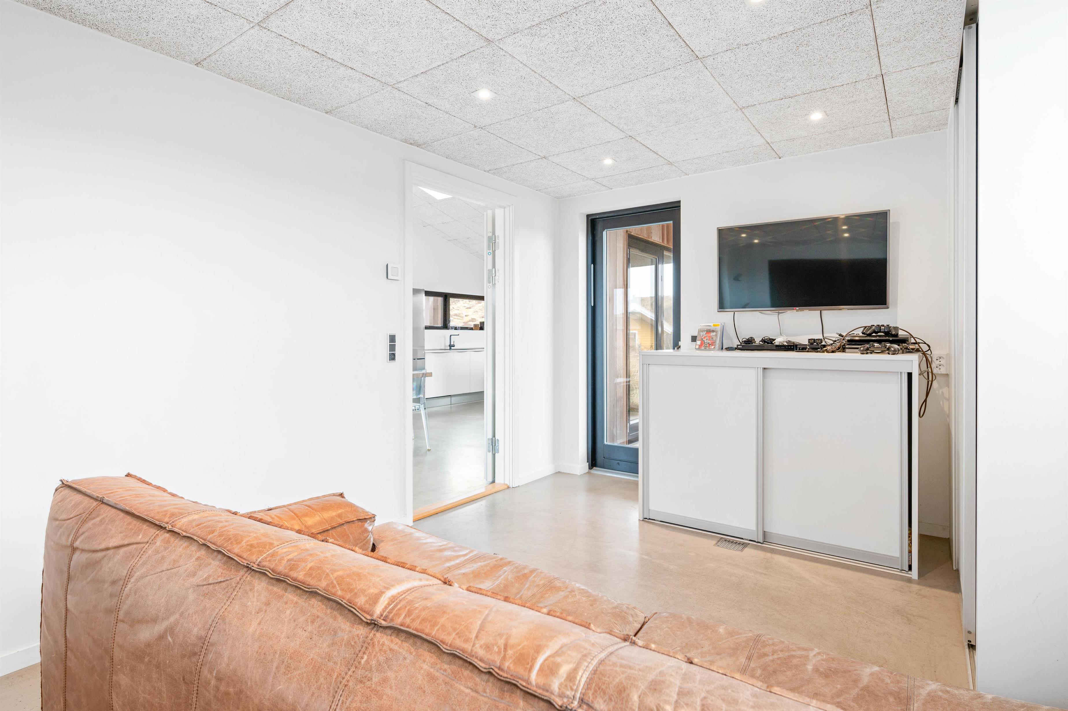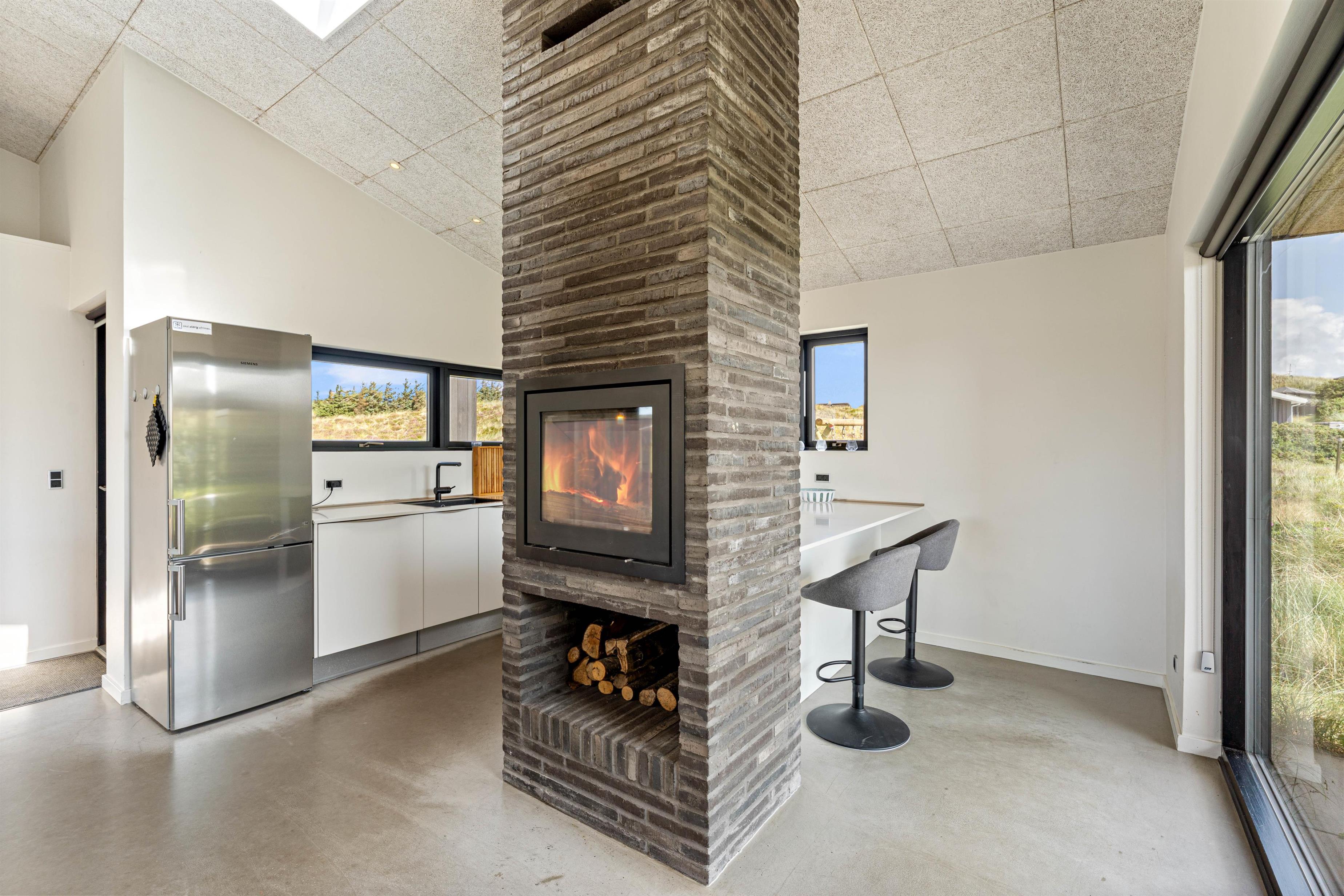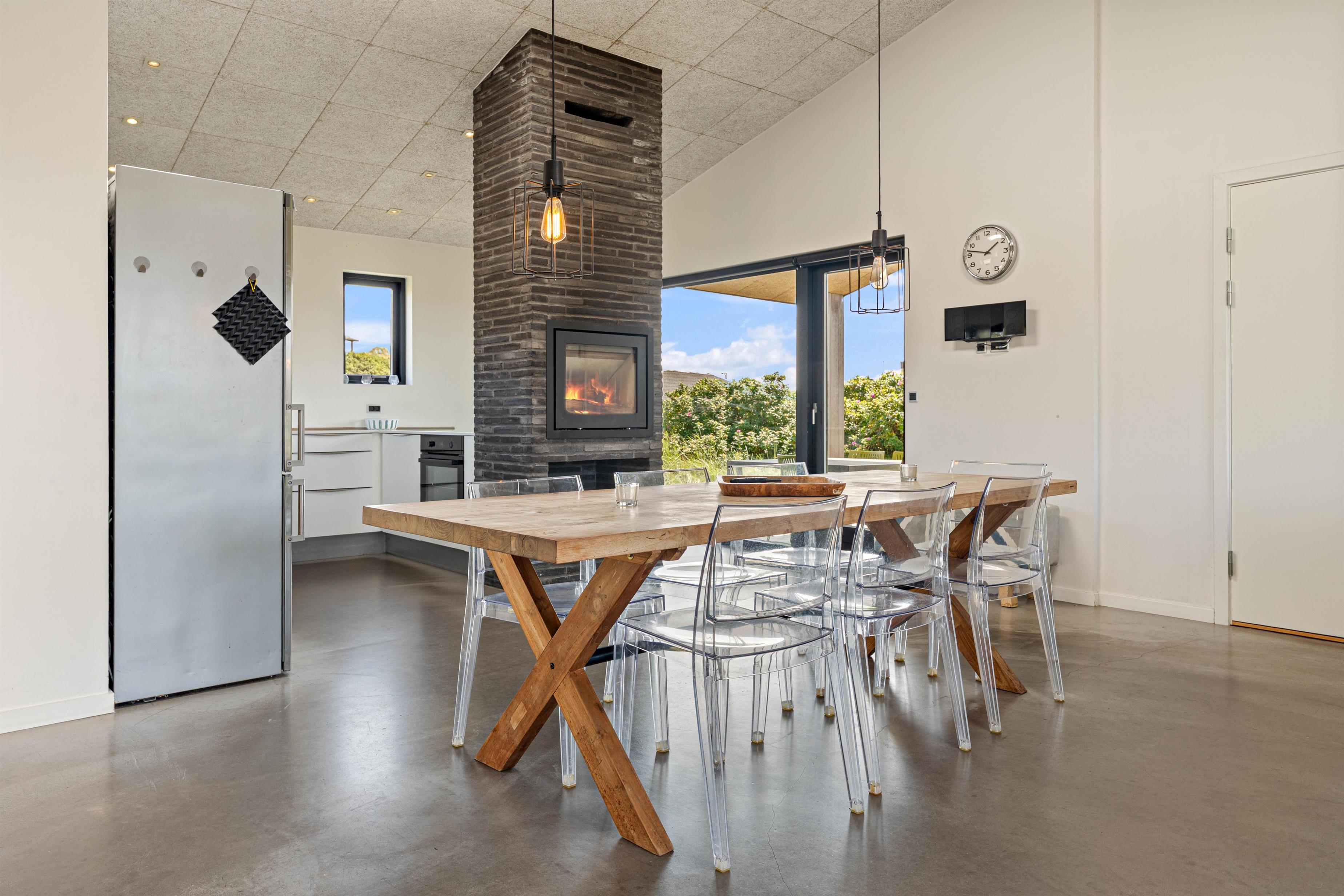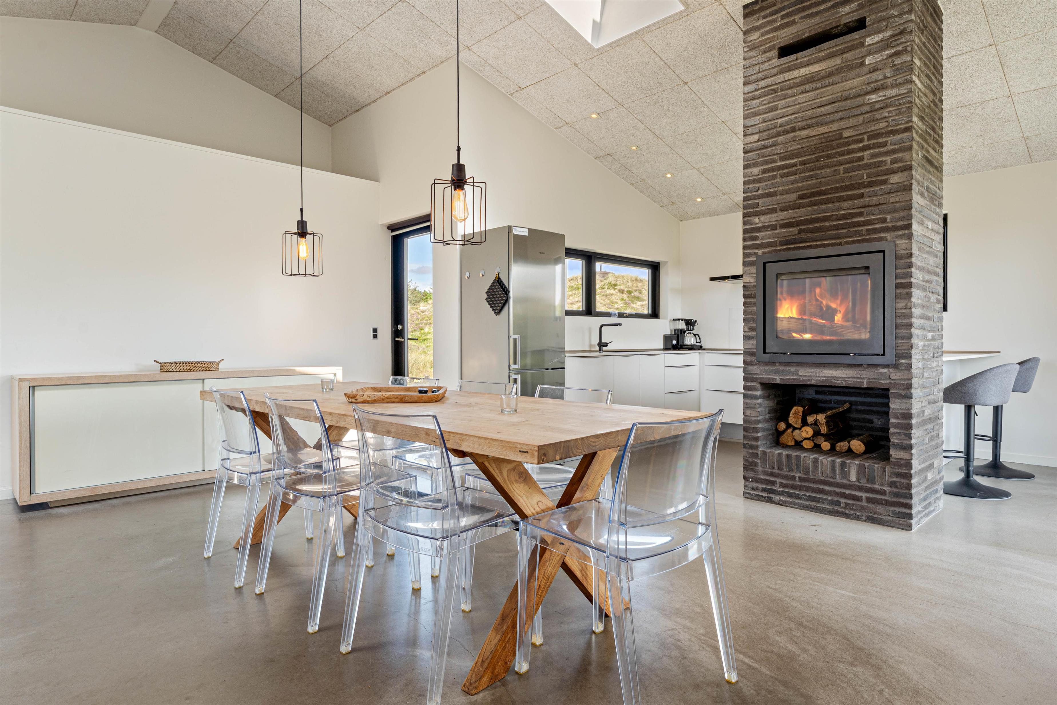 Dette lækre sommerhus er moderne møbleret med bl.a. læder og teak træ samt hvide vægge. Gulvvarmen i hele huset garanterer varme fødder, når der skal tages bad og den første kop kaffe skal brygges, dertil sørger en energivenlig luft-vand-varmepumpe for et perfekt indeklima. Når kulden tager til udenfor, kan I også tænde op i den flotte brændeovn, der uden tvivl vil give jer varmen igen.