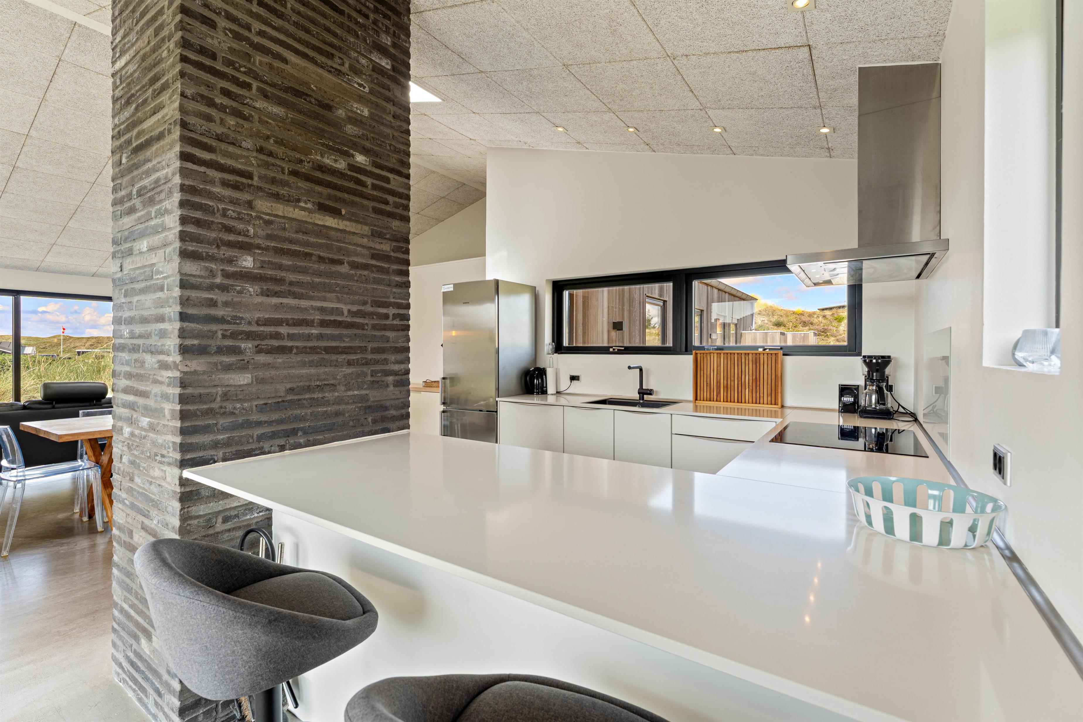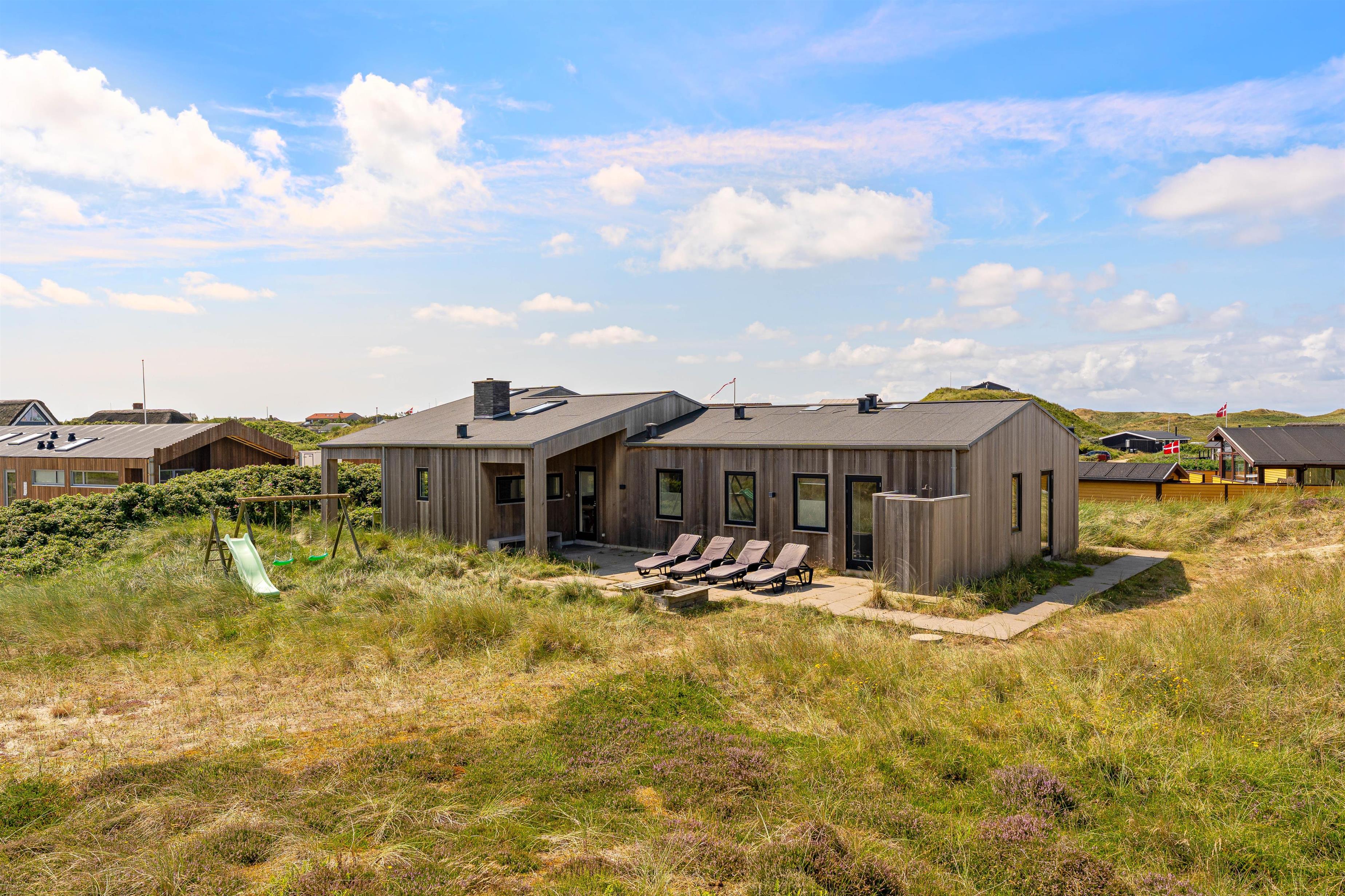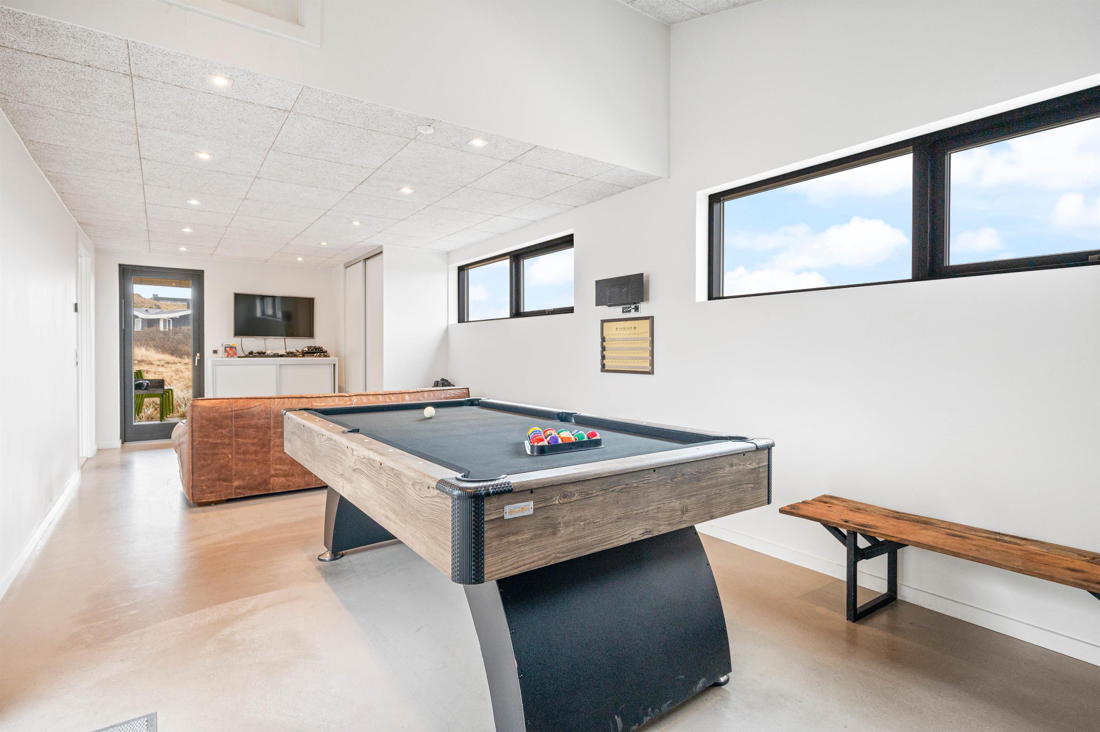 For enden af stille vej i rolige, børnevenlige og ugenerte omgivelser og med kun 350 meter til Vesterhavet ligger denne drøm af et feriehus, der i den grad opfylder alle ferieønsker. Det arkitekttegnede hus er stilfuldt indrettet med lækre faciliteter såsom sauna, spabad, udendørsbruser, pejseindsats og aktivitetsrum med billardbord, playstation 4 og Nintendo Wii samt fladskærms TV.
