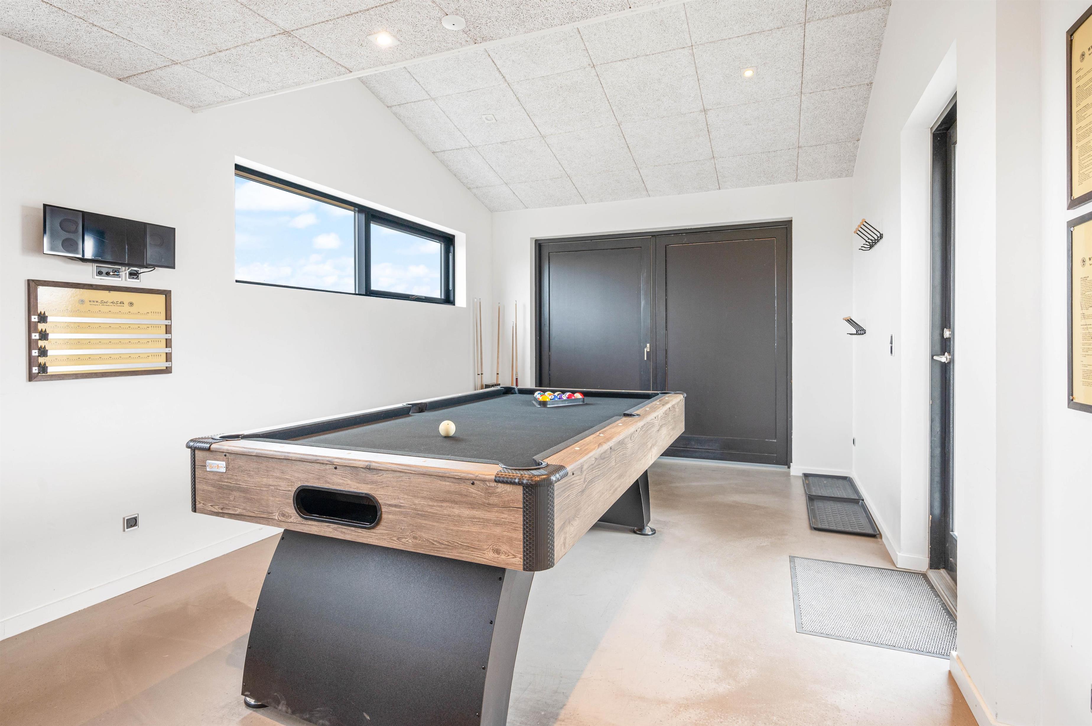 På Vibedalen 15 er der hele 3 fine og lækre badeværelser, hvoraf de 2 er med dobbelt bruser og direkte adgang til soveværelserne. Det tredje rummer en ekstra wellness-hemmelighed: Her danner spabadet og saunaen jeres egen lille wellnessoase, hvor I kan koble af og tanke nye kræfter – og mens I gør det, kan de konkurrenceglade gæster tage et spil billard i aktivitetsrummet - med de 2 nye billardkøer, som kan deles op, kan der også spilles på de smalle sider. Mon ikke de små få lyst til at spille mod de voksne?