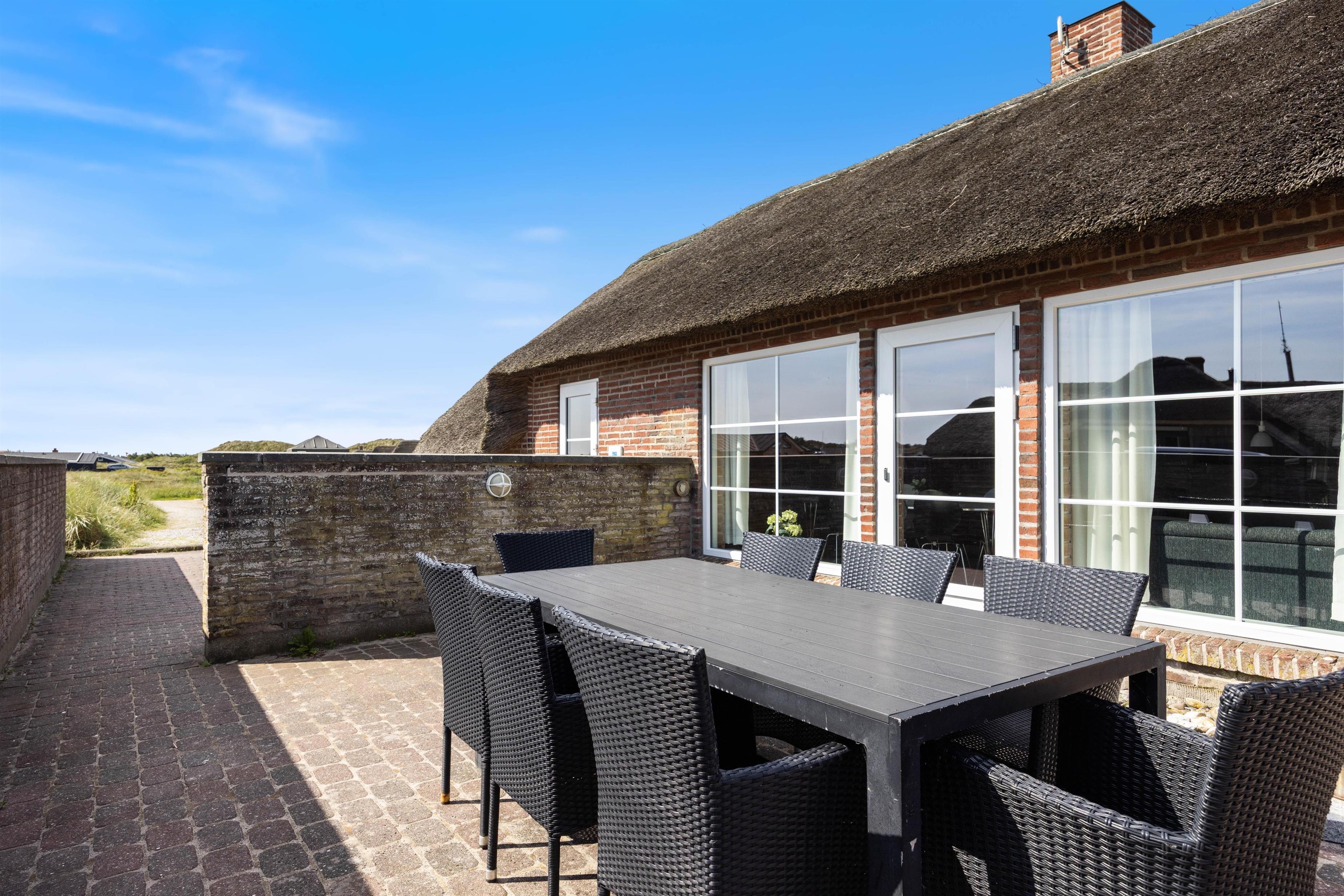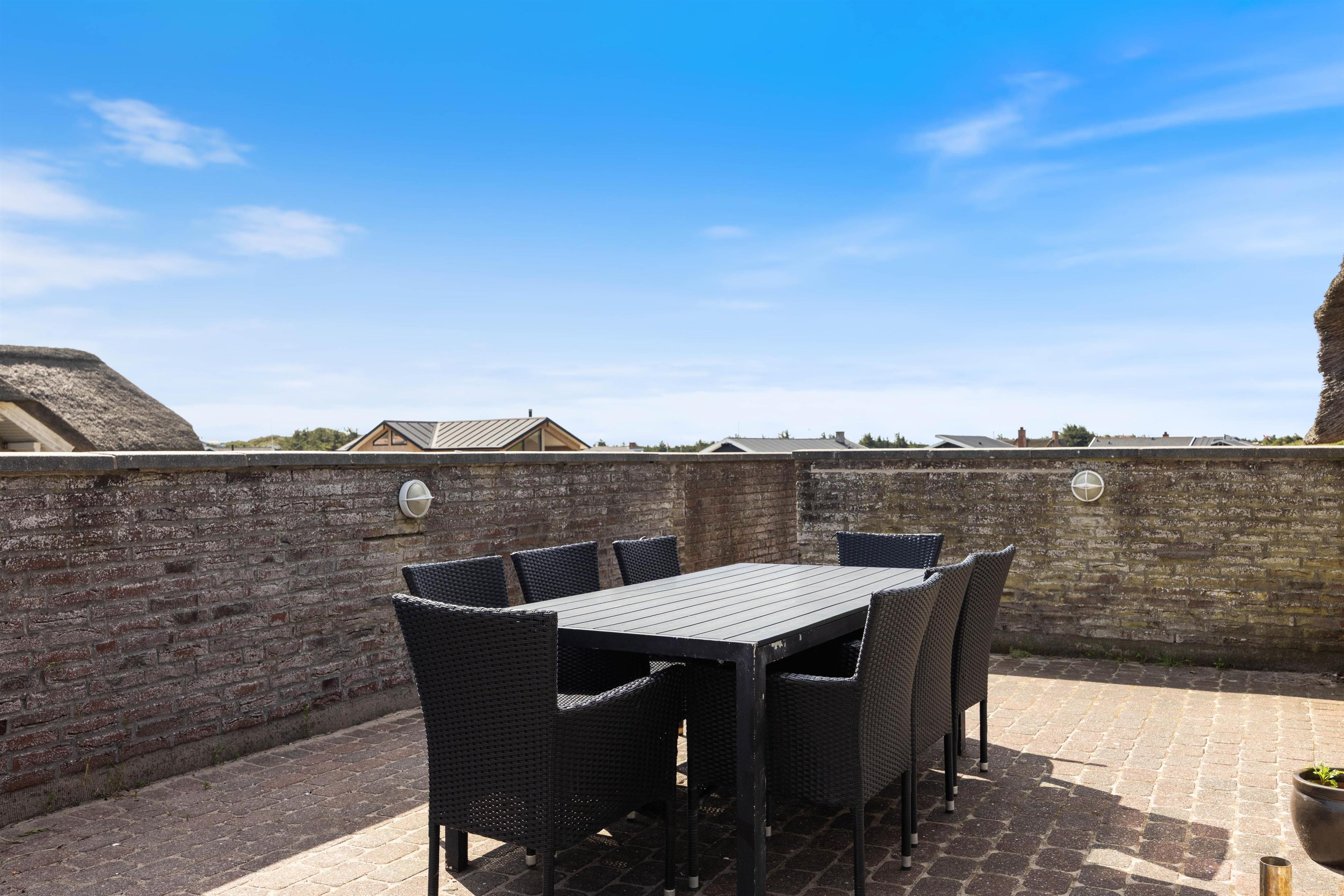 Uderummet er et sandt paradis for børnene og familiens hund. Her er der masser af plads til at lege på hele den ugenerede grund ned mod klitterne. Terrassen er perfekt til afslapning, som hører ferien til. Og når solen er fremme, kan de voksne trække sig tilbage og nyde varmen på solsengen eller diverse terrassemøbler.