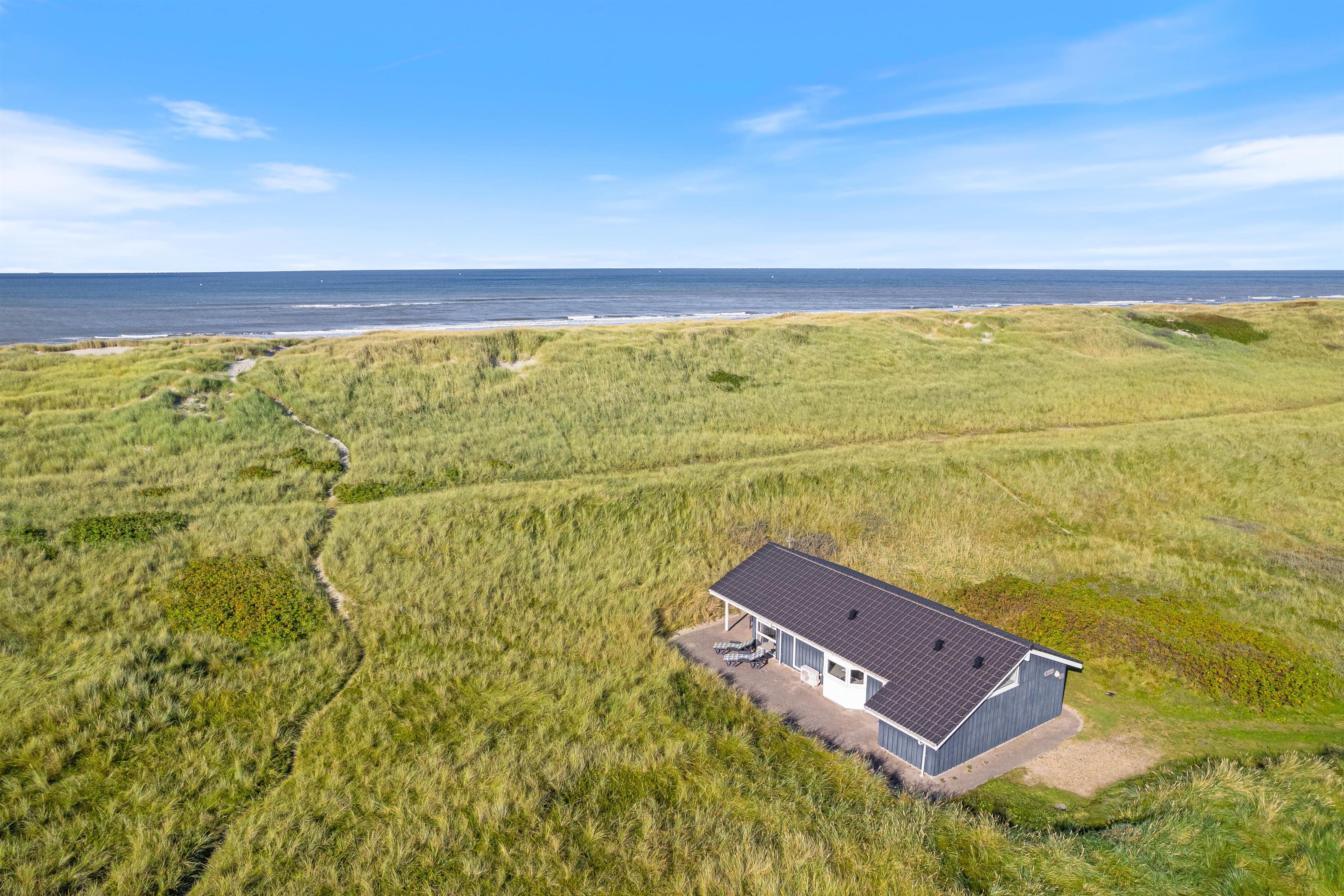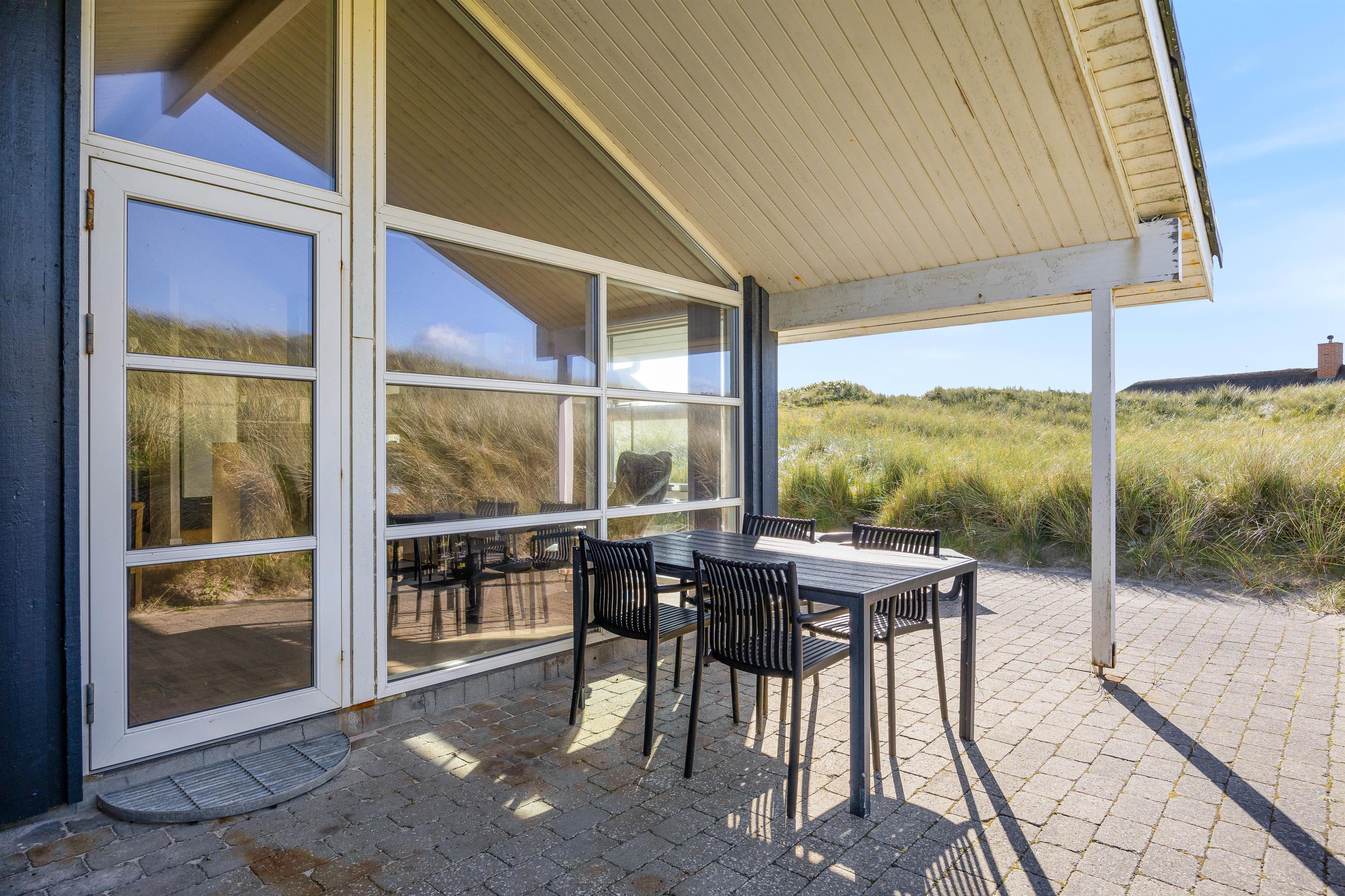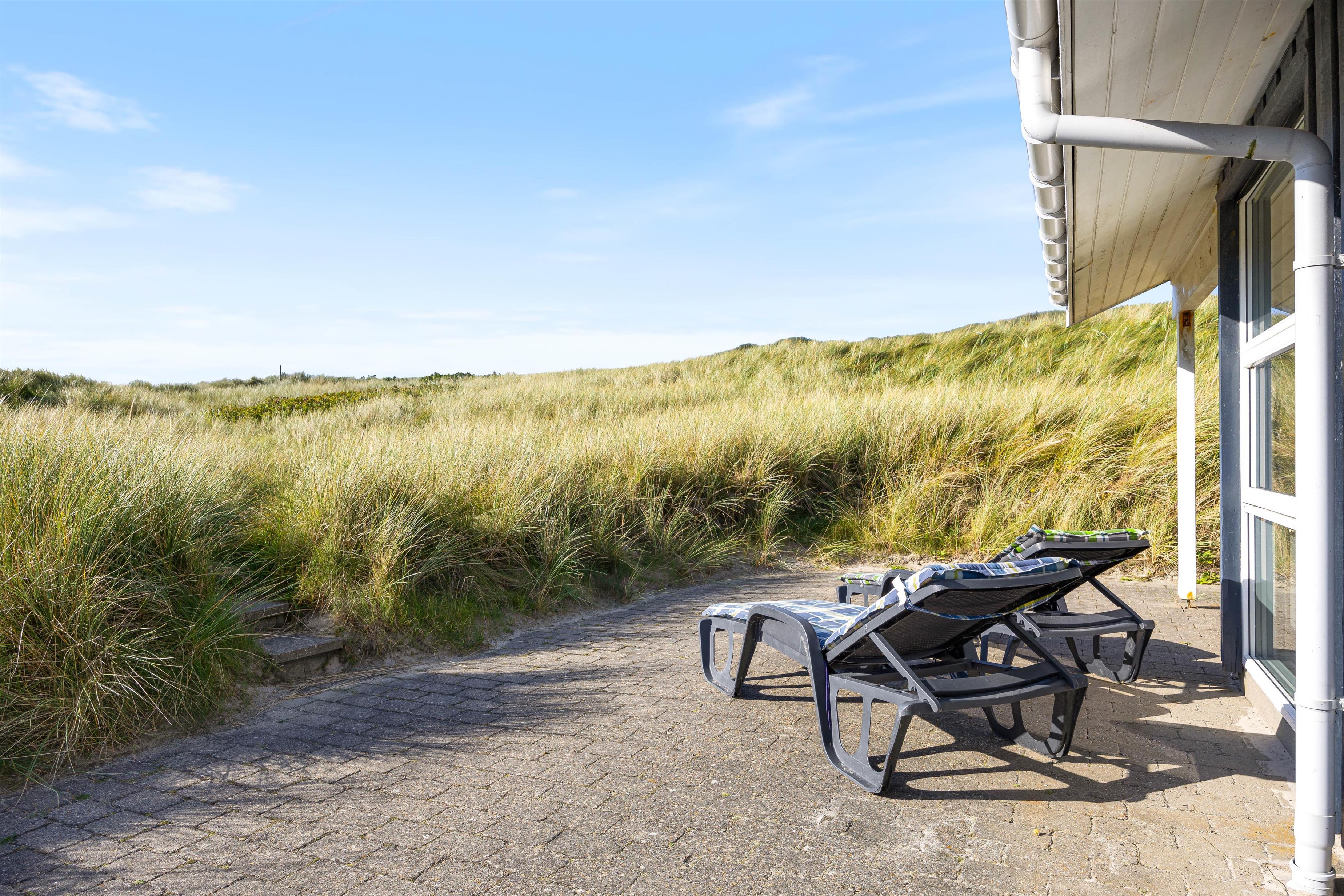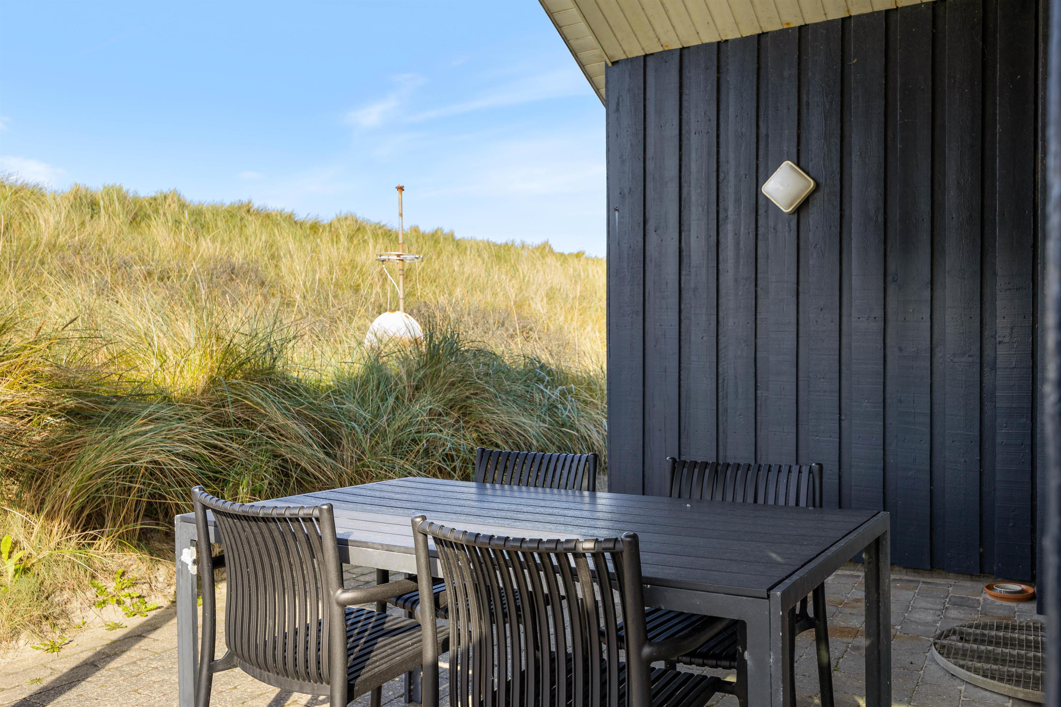 I får en helt eminent beliggenhed med kun 50 meter til havet og helt ugenerede omgivelser på en grund rammet ind af høje klitbanker. Nyd den friske luft og den smukke natur i fred og ro på terrassen, som tilmed er delvist overdækket, så I til hver en tid har ly og læ. Der findes ikke noget hyggeligere på en varm sommerdag, end en grillaften her på denne fantastisk terrasse.