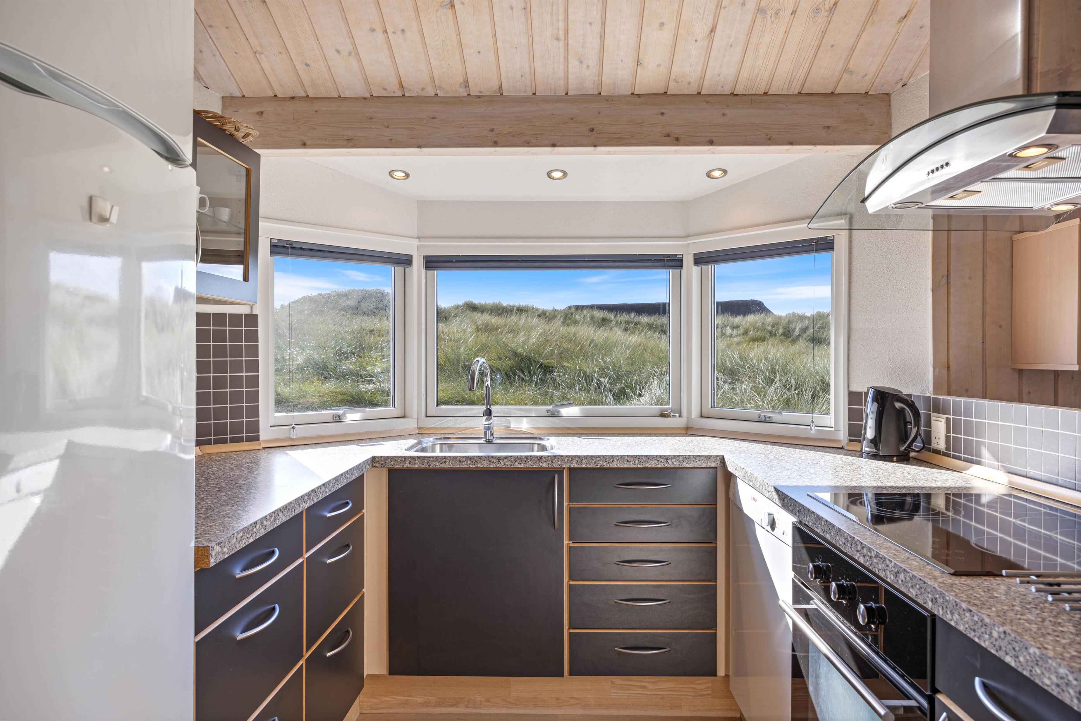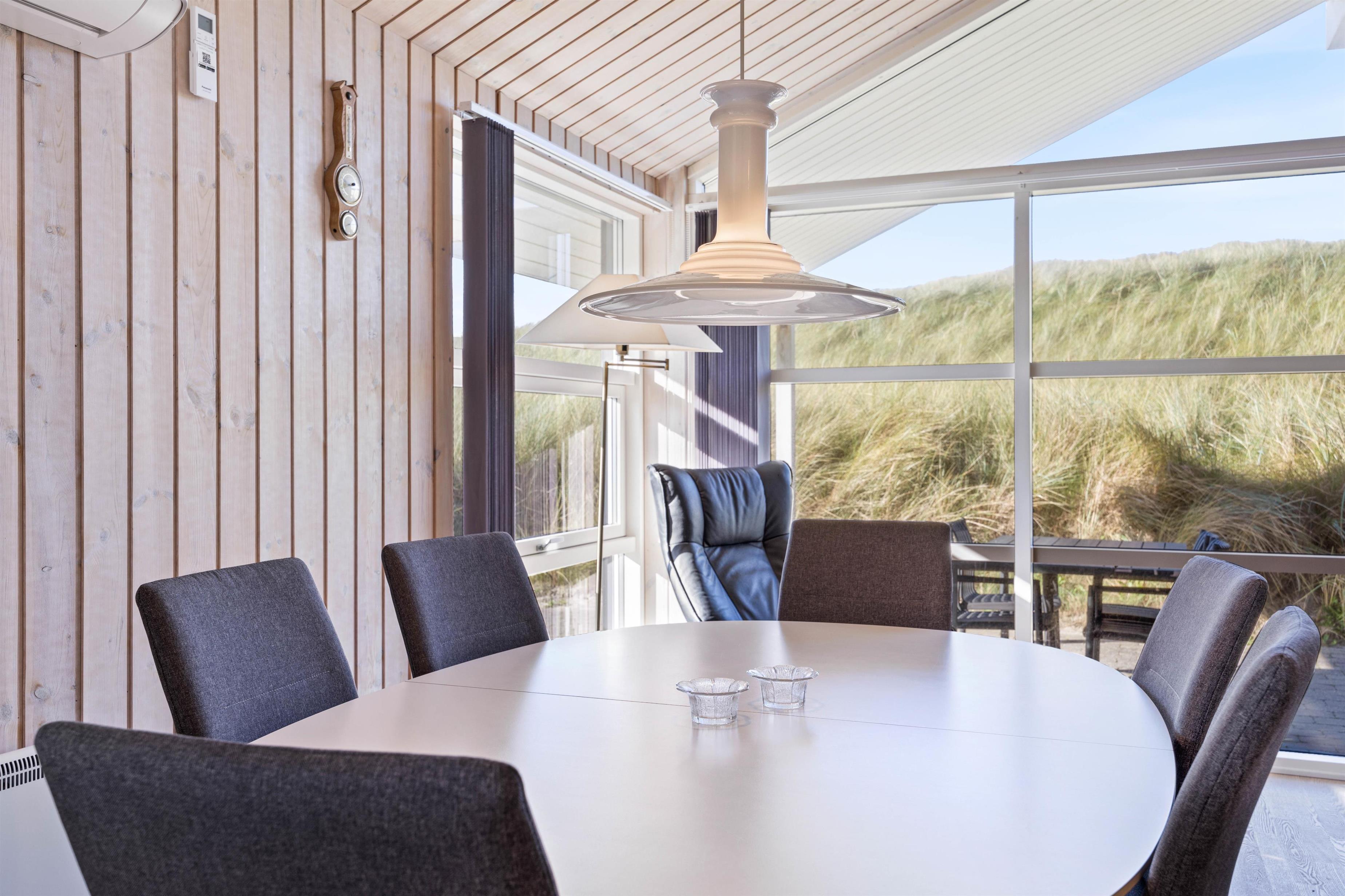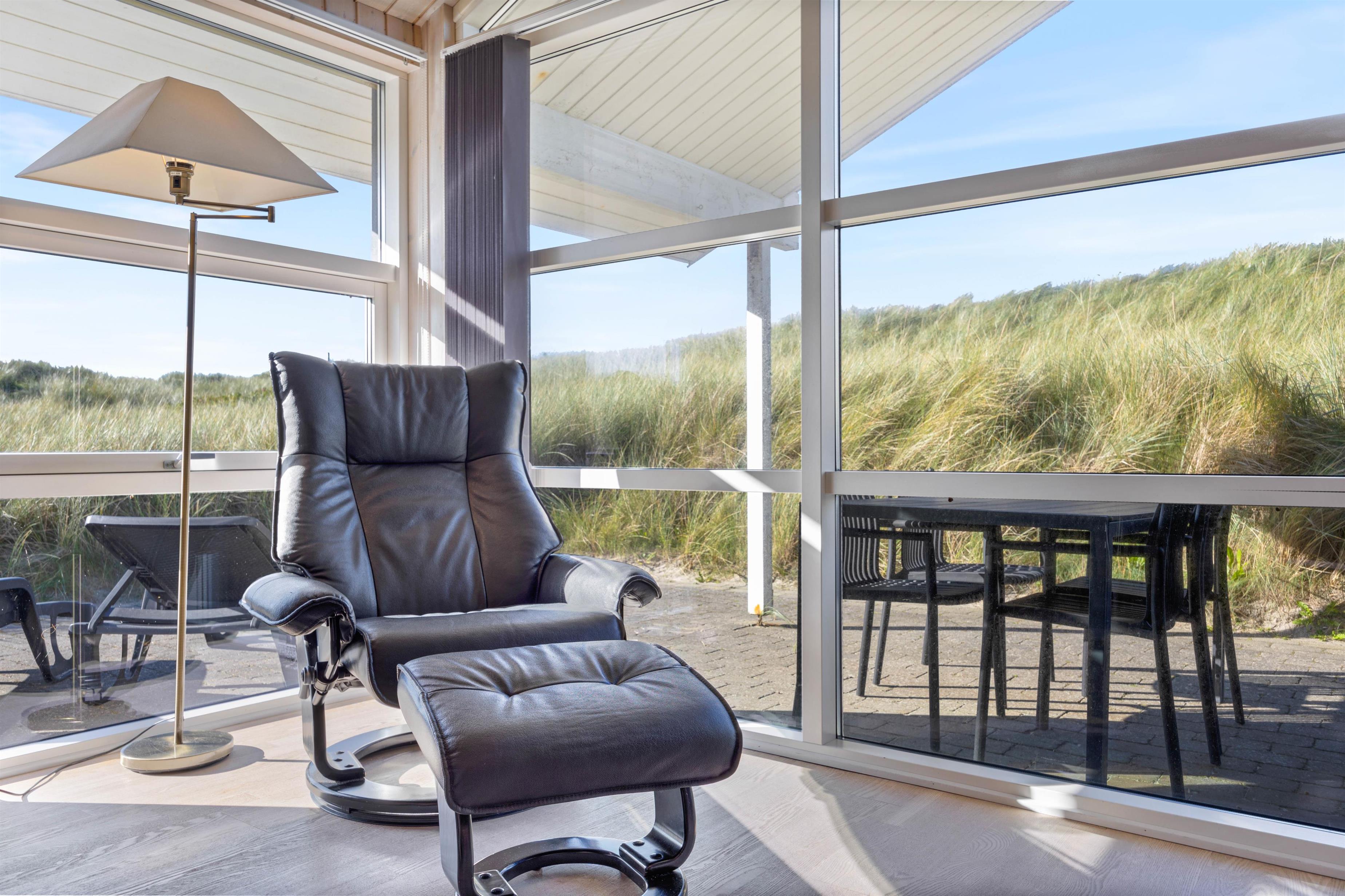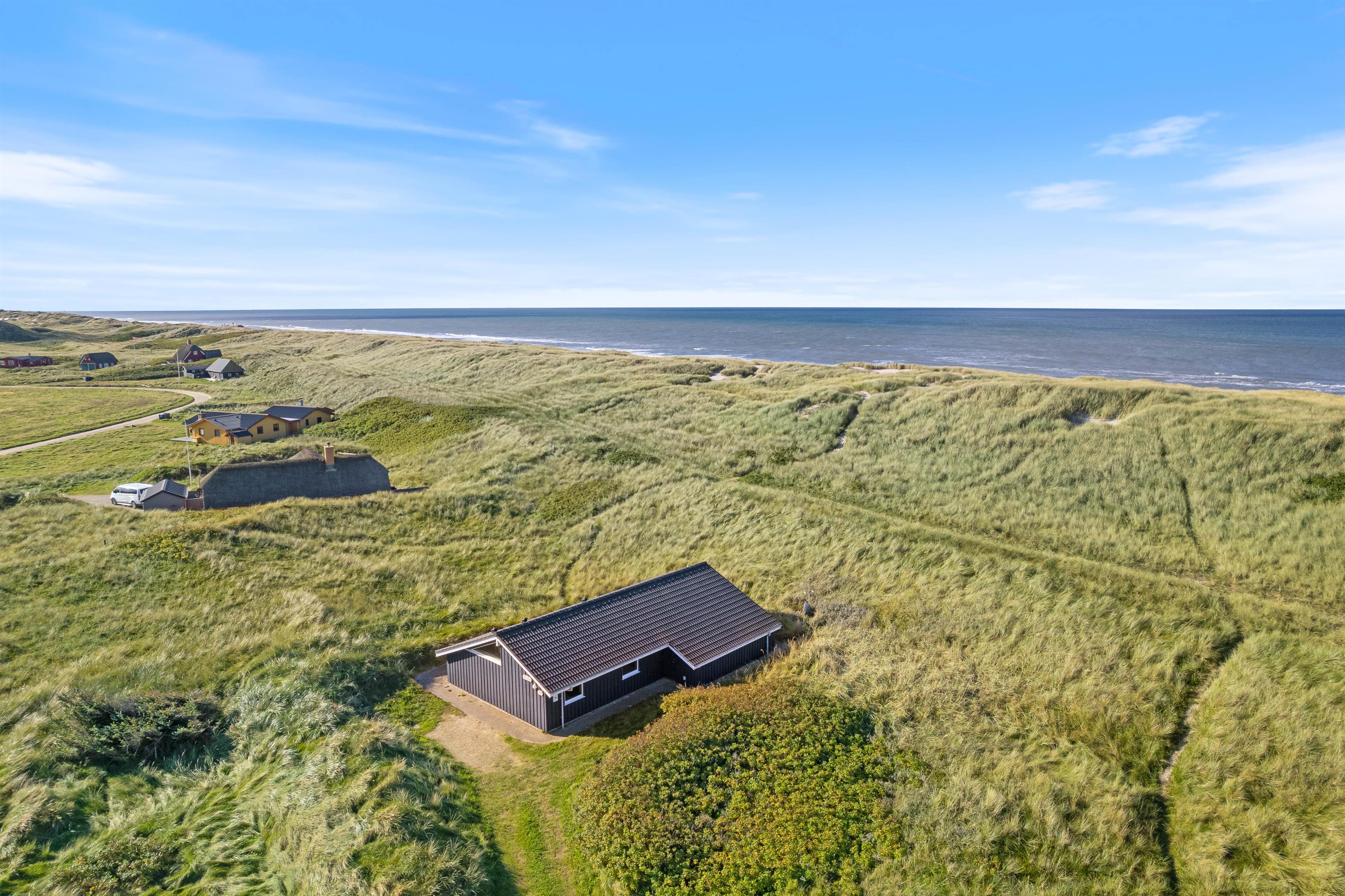 I får en helt eminent beliggenhed med kun 50 meter til havet og helt ugenerede omgivelser på en grund rammet ind af høje klitbanker. Nyd den friske luft og den smukke natur i fred og ro på terrassen, som tilmed er delvist overdækket, så I til hver en tid har ly og læ. Der findes ikke noget hyggeligere på en varm sommerdag, end en grillaften her på denne fantastisk terrasse.