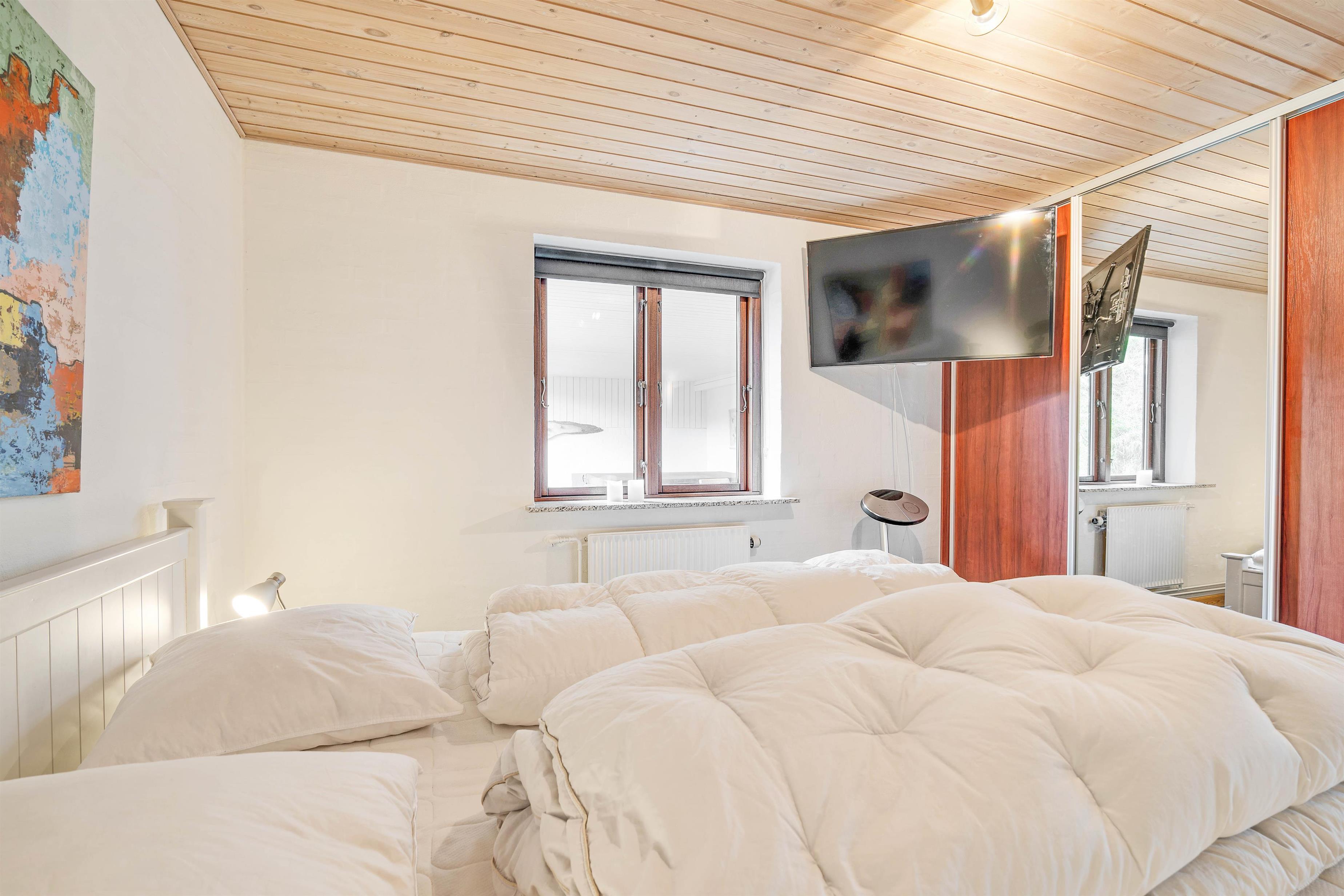 Herudover råder huet over et stort, flot badeværelse med bruseniche og gulvvarme samt et mindre toilet – også med gulvvarme. Der findes i alt 3 gode soveværelser i huset, hvoraf 2 er indrettet med hver en dobbeltseng, mens det sidste værelse er udstyret med 1 enkeltseng.