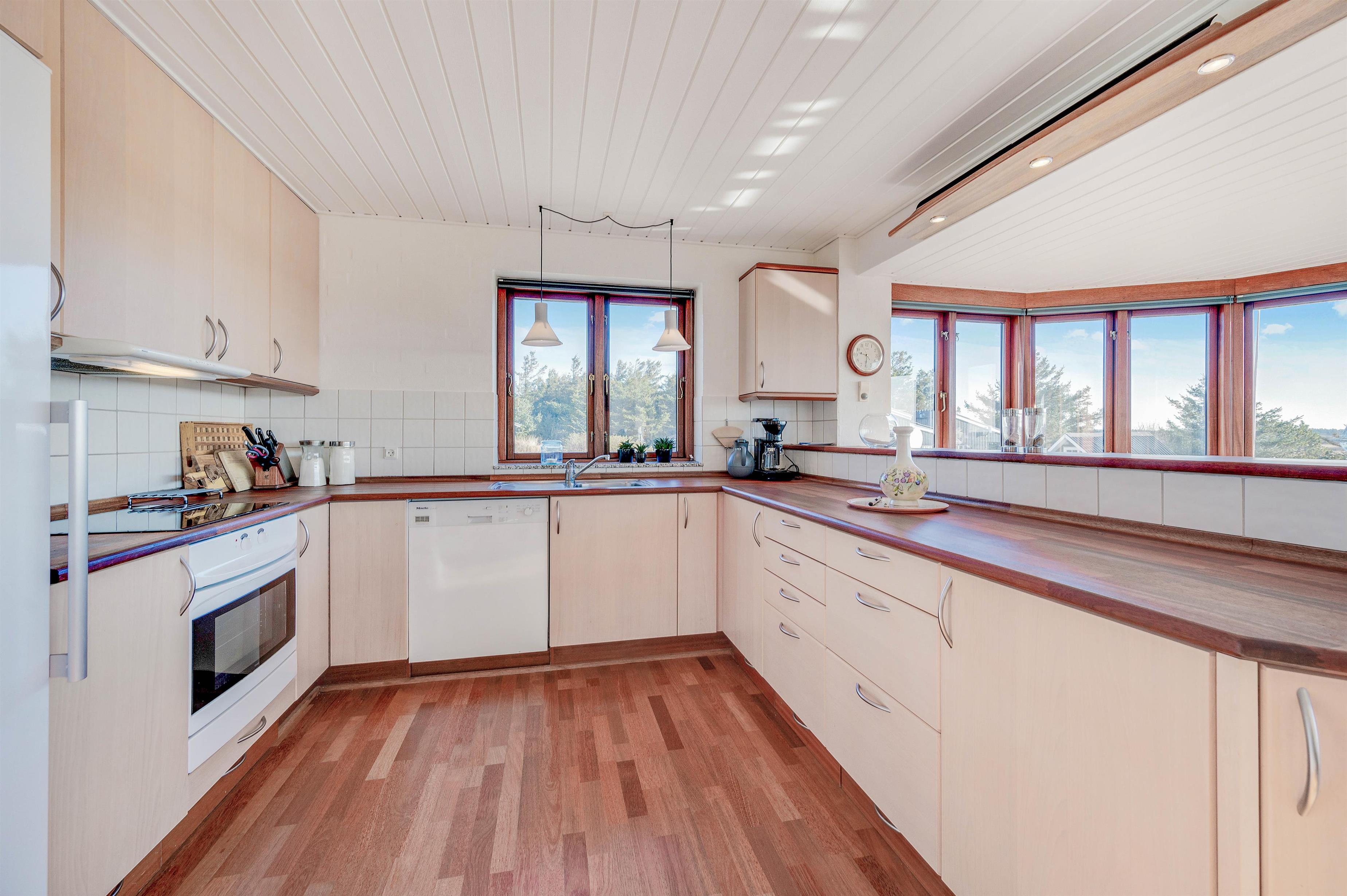 Det naturlige midtpunkt i huset er det store køkkenalrum, der forbinder stue, spisestue og køkken i ét. Her kan I mødes og samles omkring madlavning, mens I nyder den fantastiske udsigt ud over golflandskabet. Køkkenet er veludstyret med køleskab, opvaskemaskine og mikroovn, ligesom der også er en 150liters fryser til rådighed i huset.