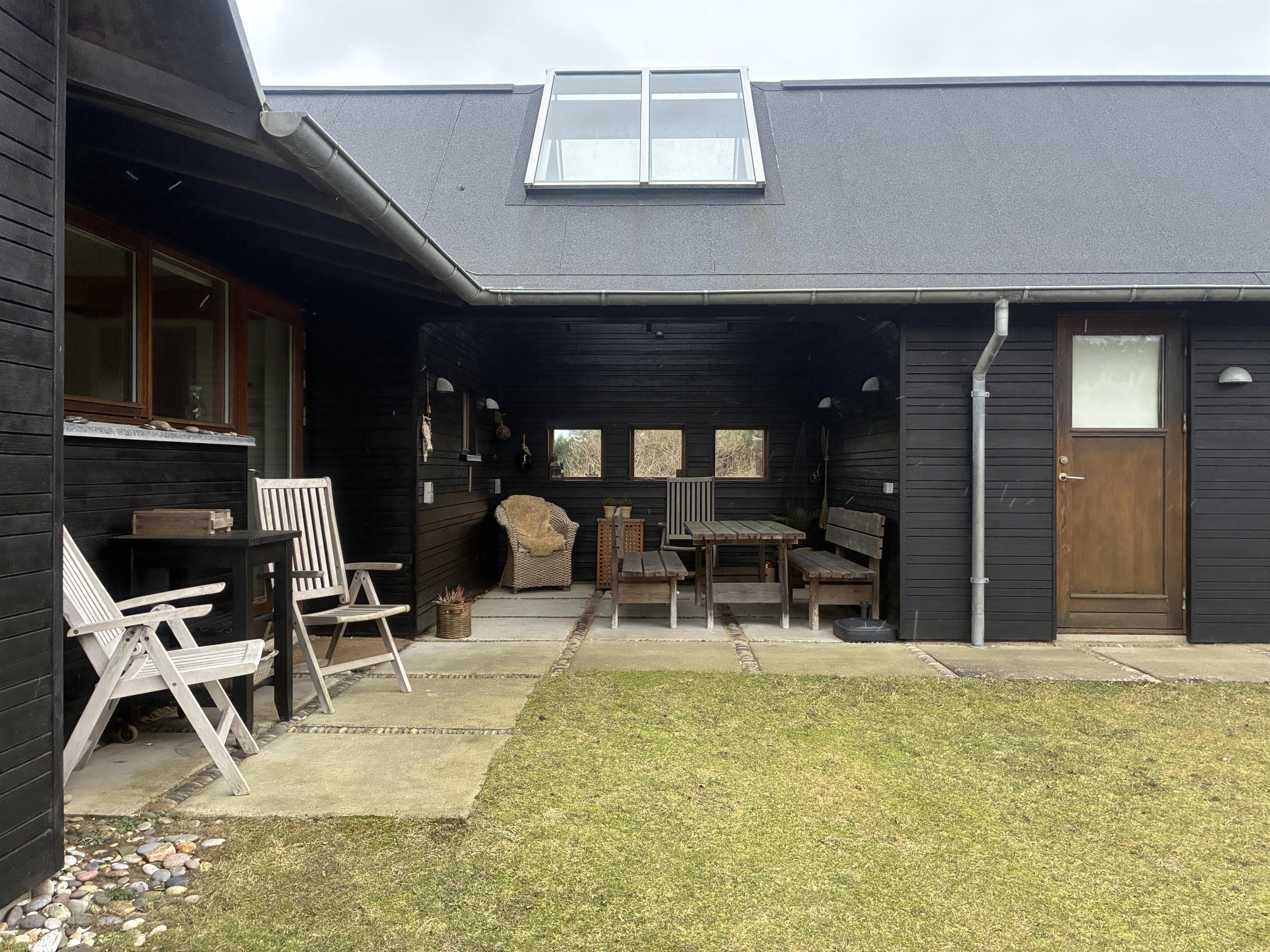 Sneppedalen 26 er omgivet af en 1.700 m² stor grund, der kombinerer natur- og plænegrund. Grunden er let kuperet og beplantet, hvilket på naturlig vis skaber god afskærmning og privatliv. Her er der rig mulighed for udendørs aktiviteter, leg og afslapning, og havemøblerne indbyder til mange hyggelige stunder i den friske vestjyske luft. Sommerhuset råder både over en åben og en overdækket terrasse, så I kan nyde jeres måltider, tilberedt på gasgrillen, udendørs – uanset vejret – mens I lader blikket glide ud over den smukke omkringliggende natur.