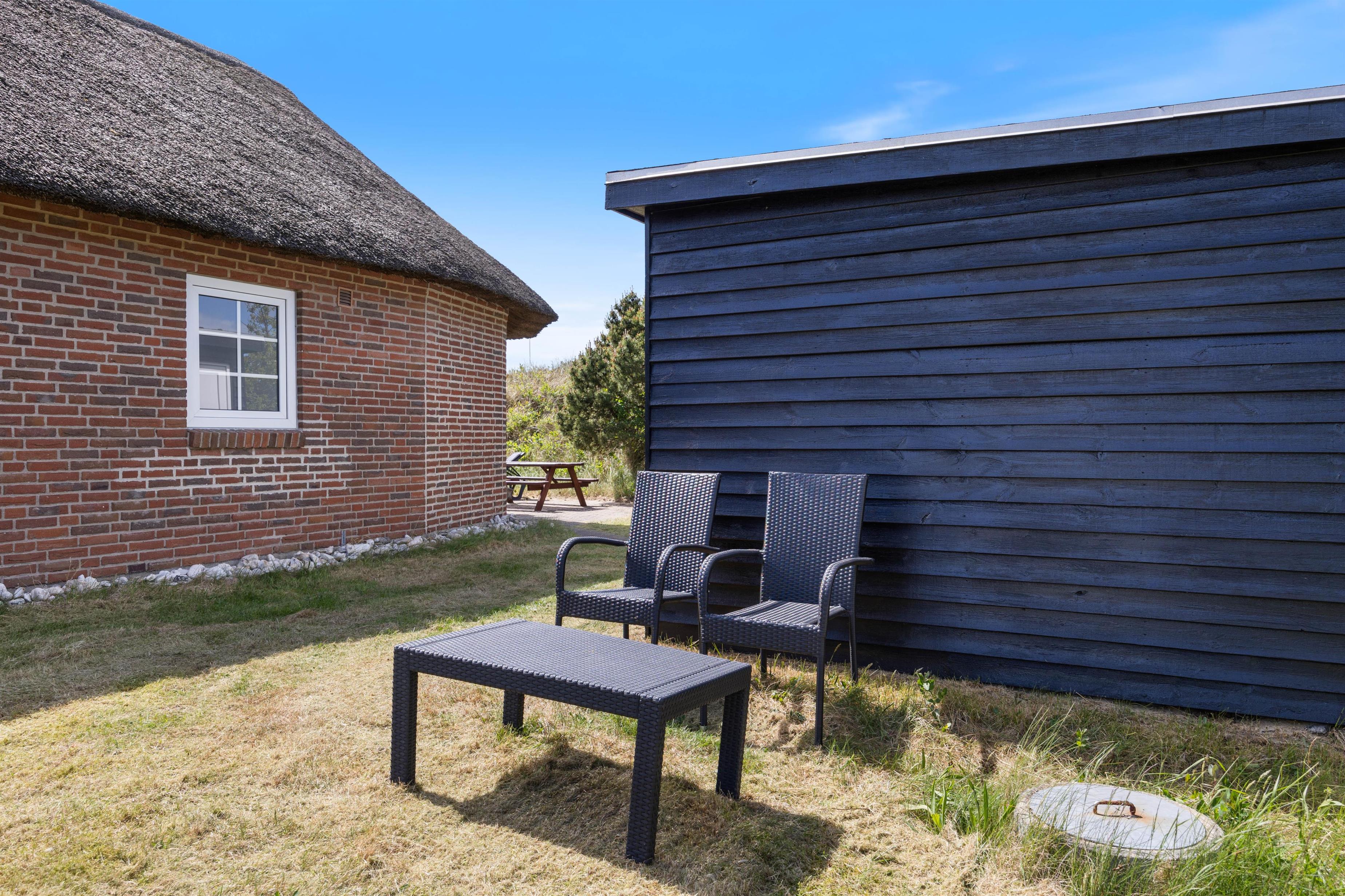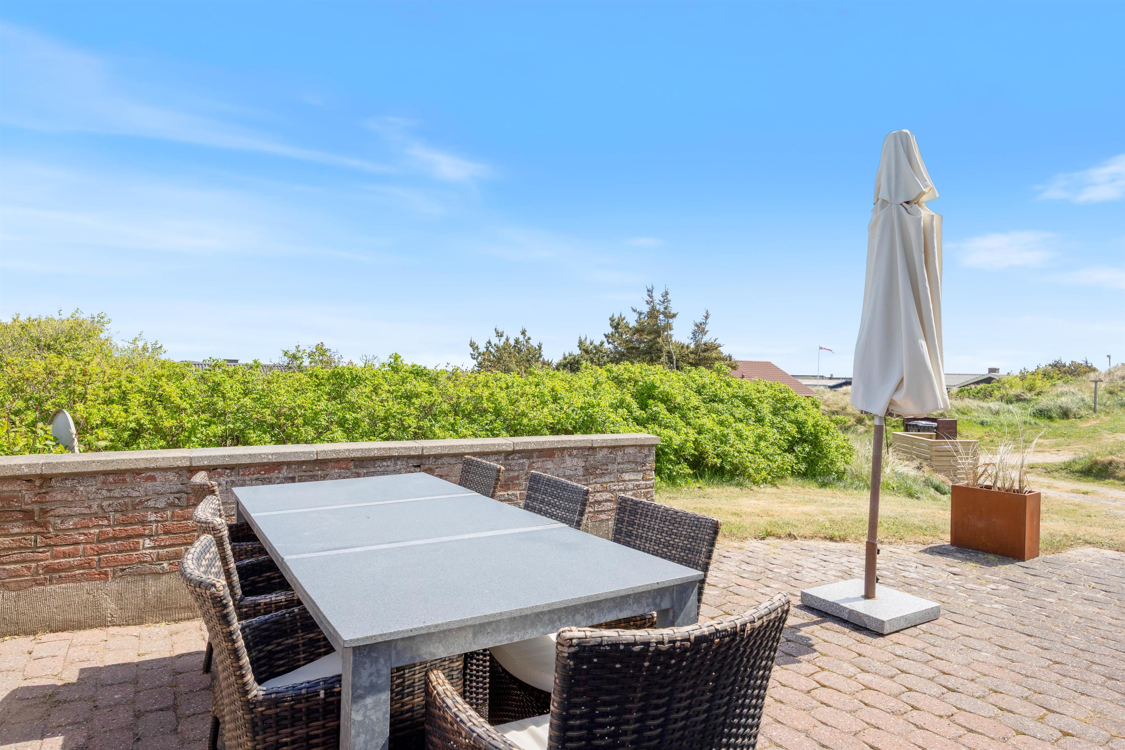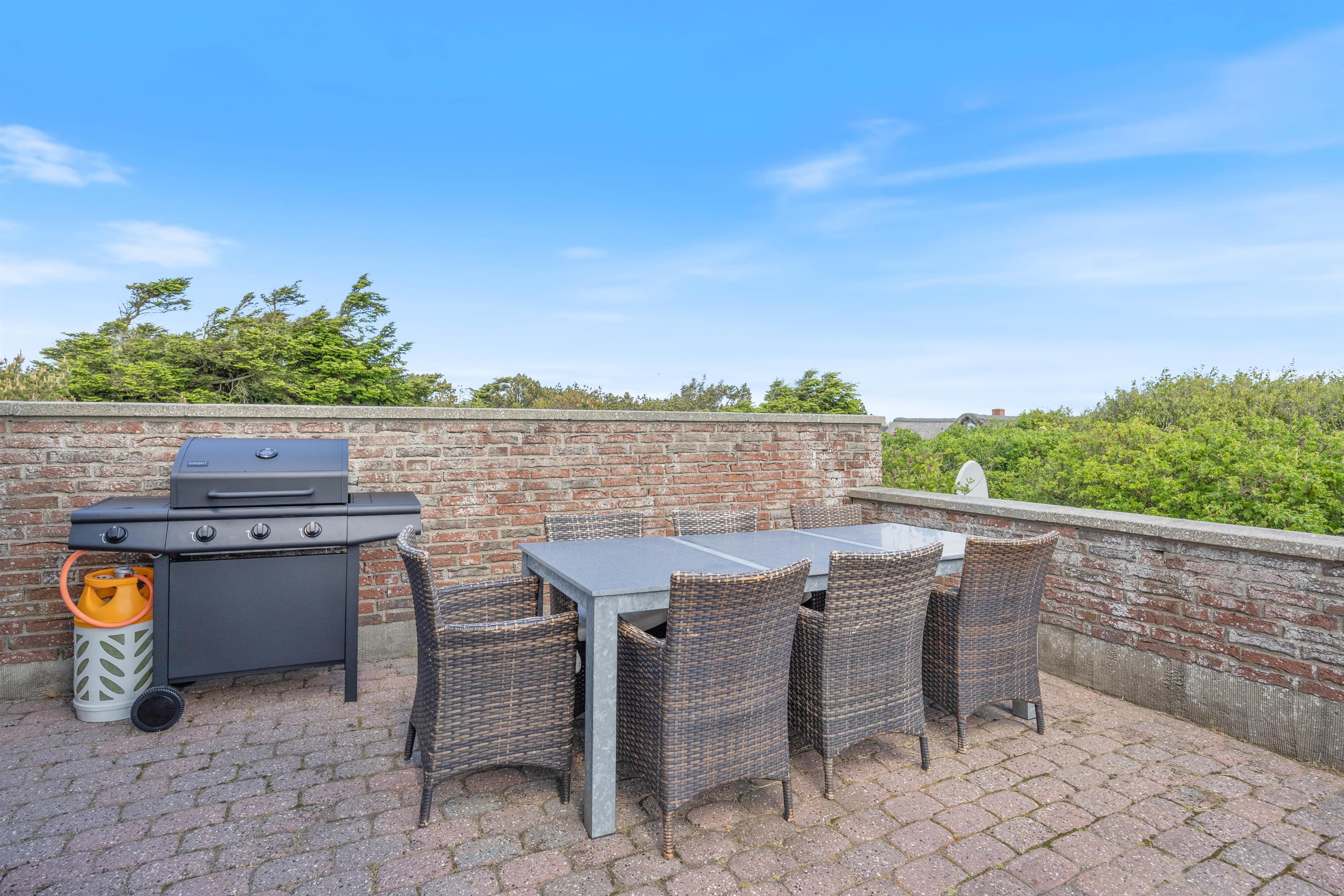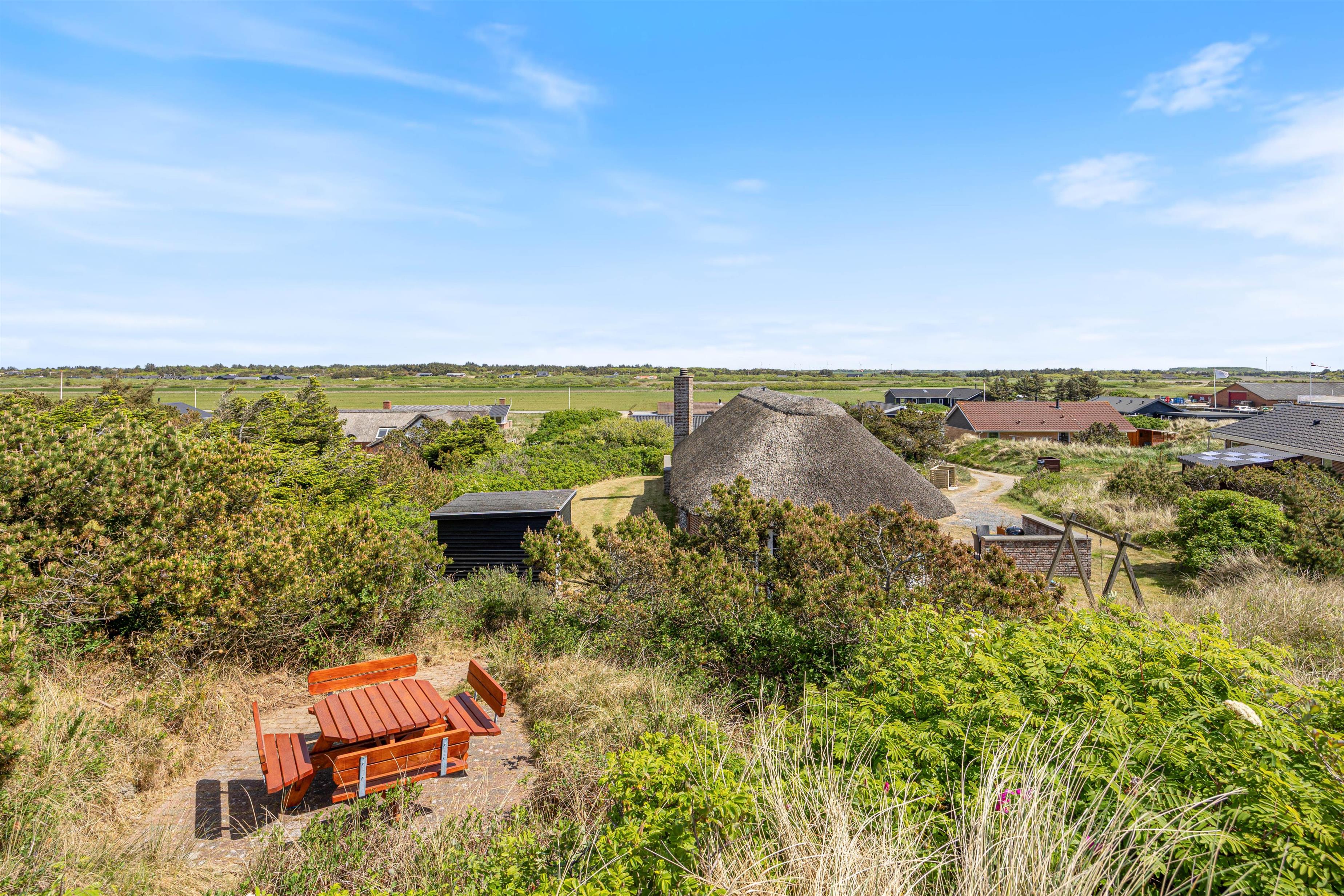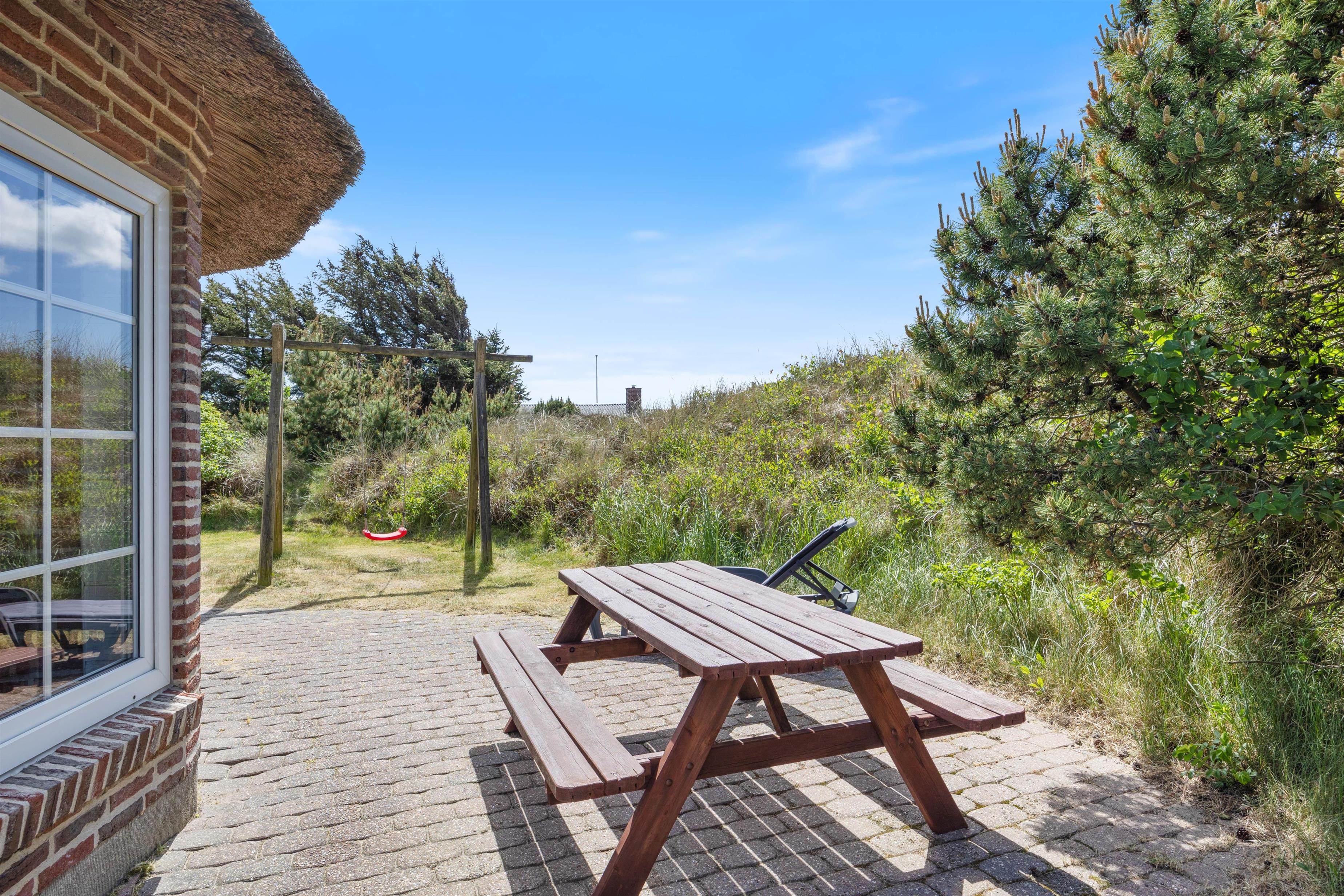 Fra stuen har I direkte udgang til en skøn terrasse, som byder på ro og fred. Sommerhuset ligger nemlig for enden af en rolig stikvej, så her er intet traffik overhovedet. Desuden er der hele 3 terrasseområder i henholdsvis øst, syd og vest. I har derfor rig mulighed for at finde en hyggelig krog at slå jer ned i, hvad enten I er på jagt efter sol, læ eller skygge. Bag huset finder I en højtliggende hyggekrog, der er godt afskærmet af en klit.