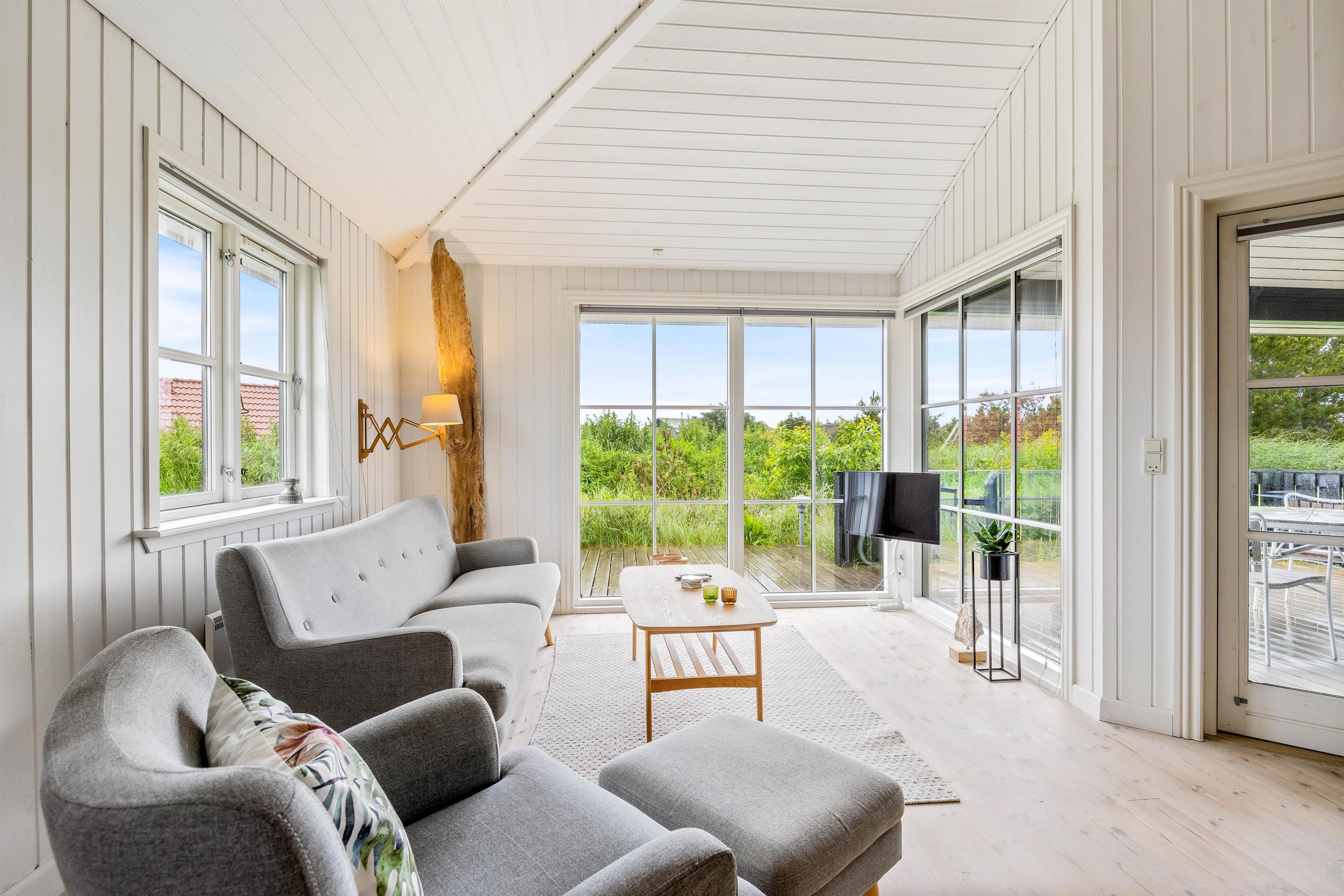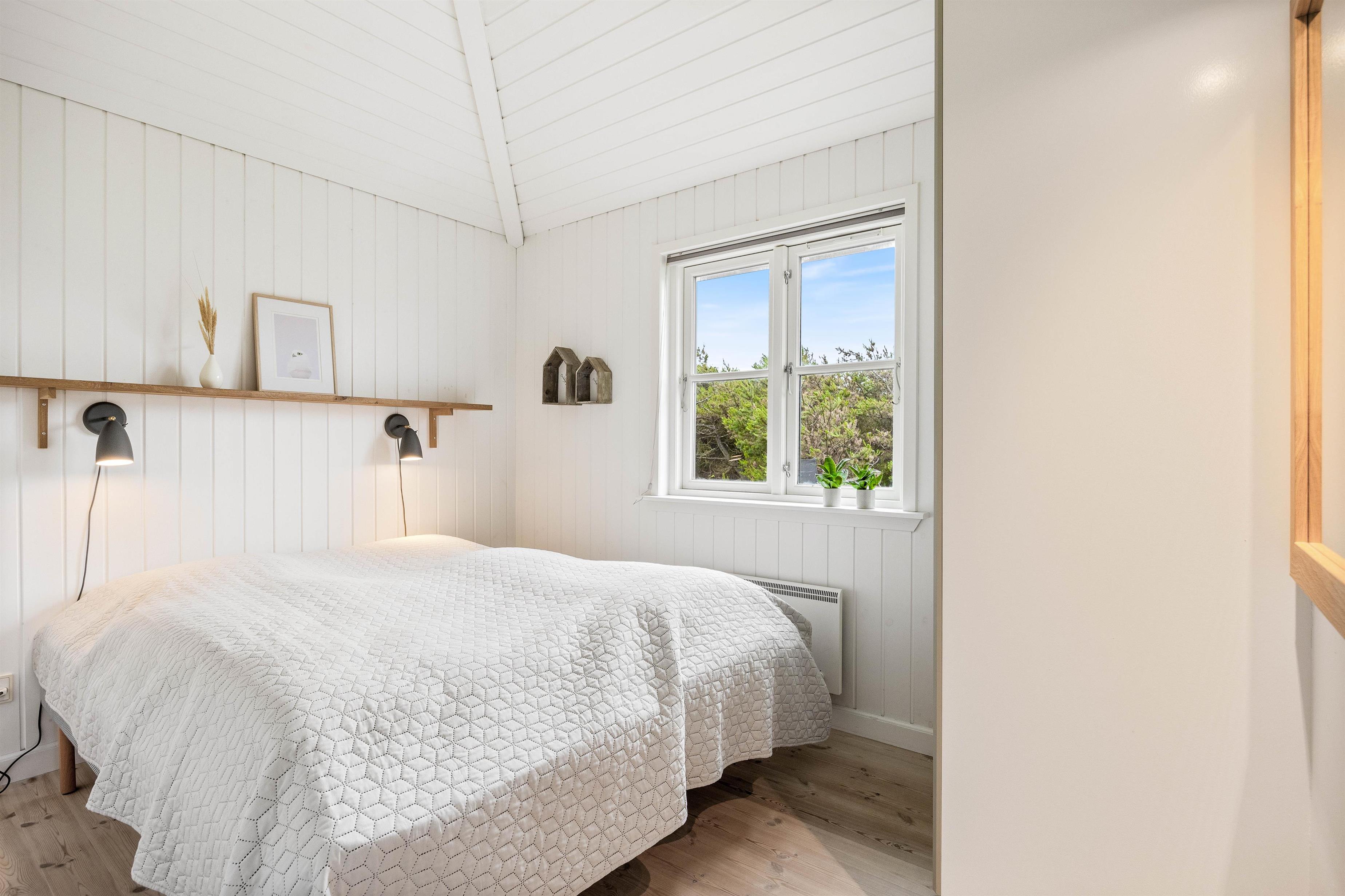 Det træbeklædte sommerhus er det perfekte hus til at slappe af i. Husets hjerte er det åbne køkkenalrum, hvor I kan nyde masser af kvalitetstid sammen med jeres medrejsende. Det lyse køkken harmonerer godt med de lyse trægulve og de hvidmalede trælofter som er i hele huset. Her er der masser af plads til alle, og huset indeholder også to fine badeværelser.