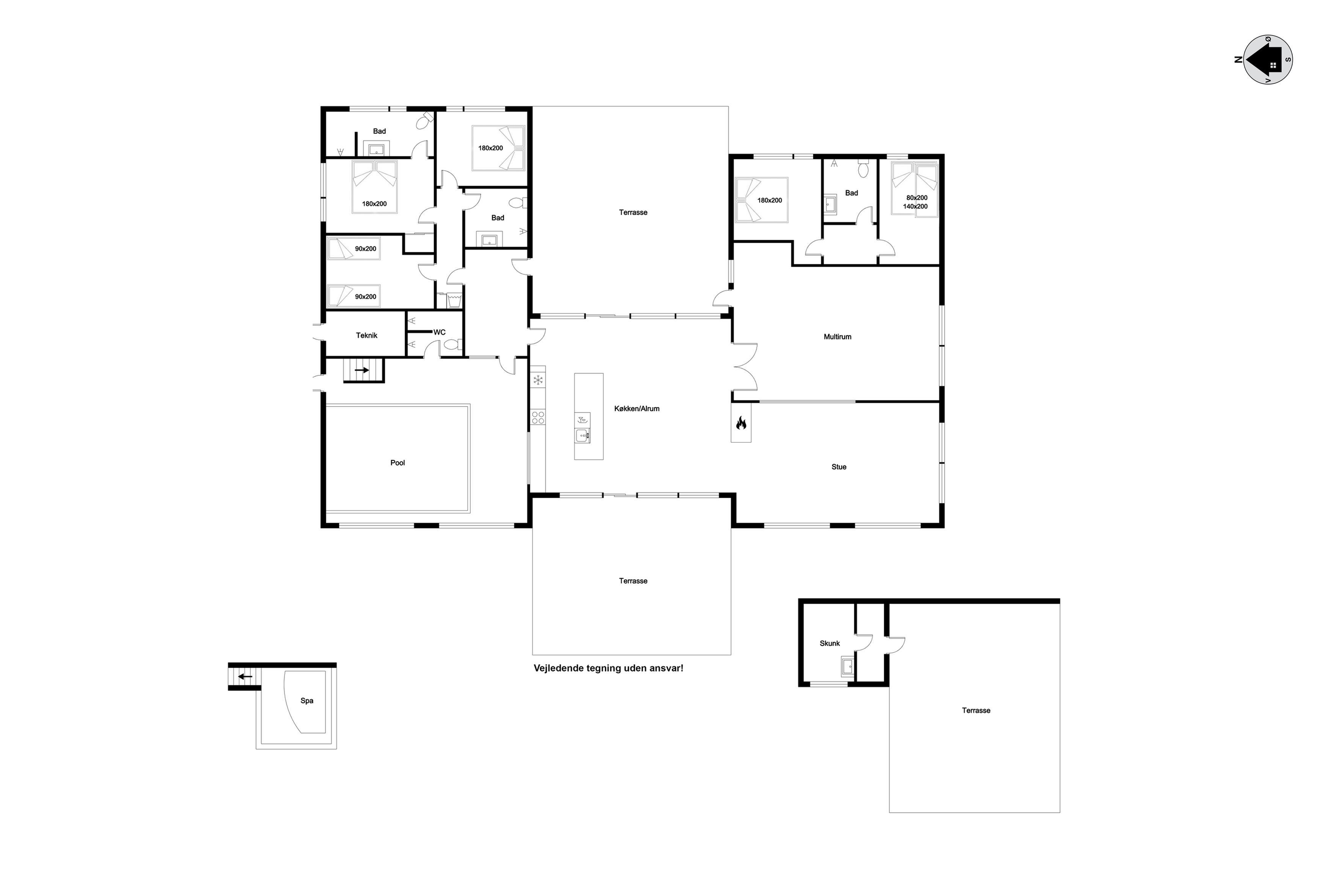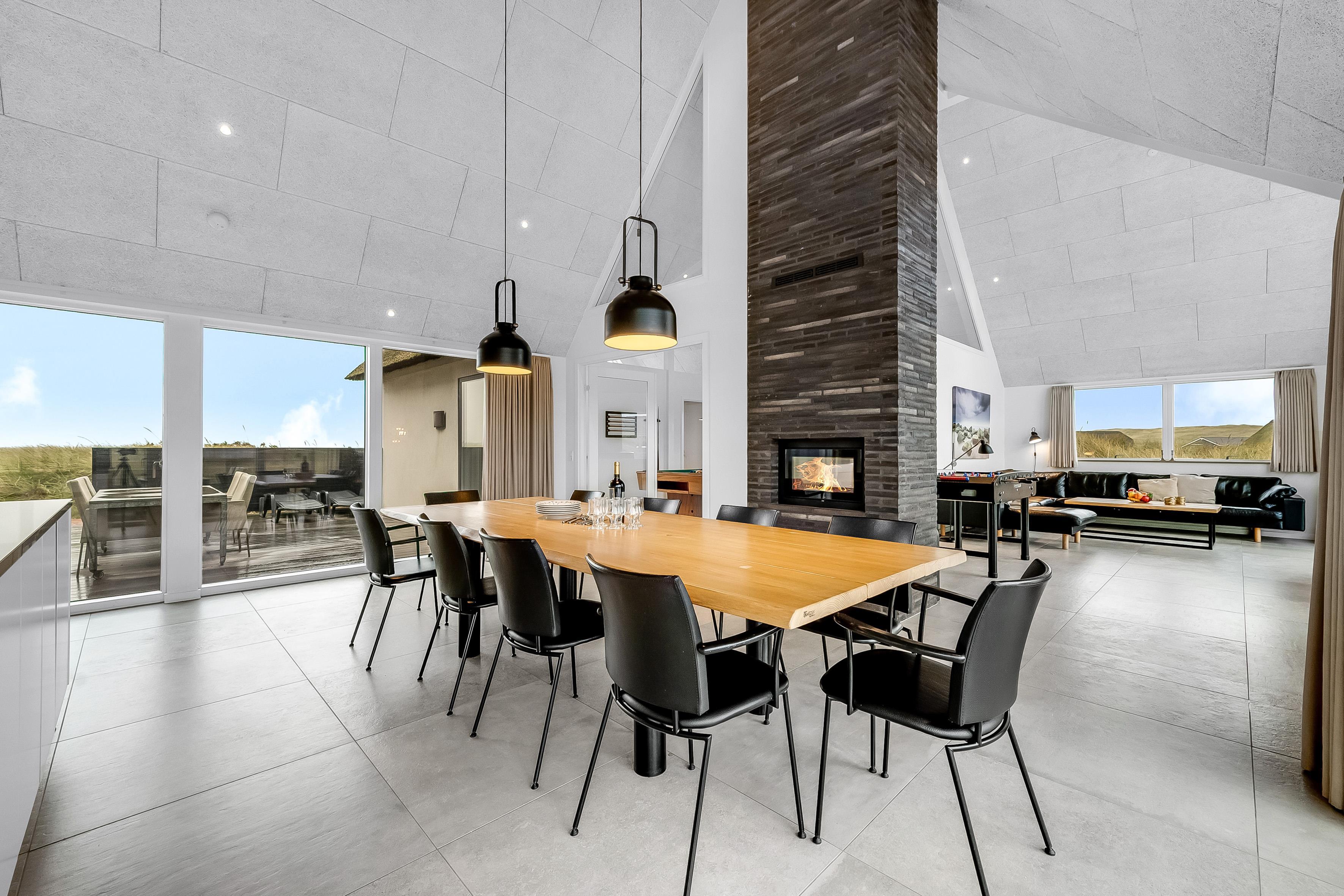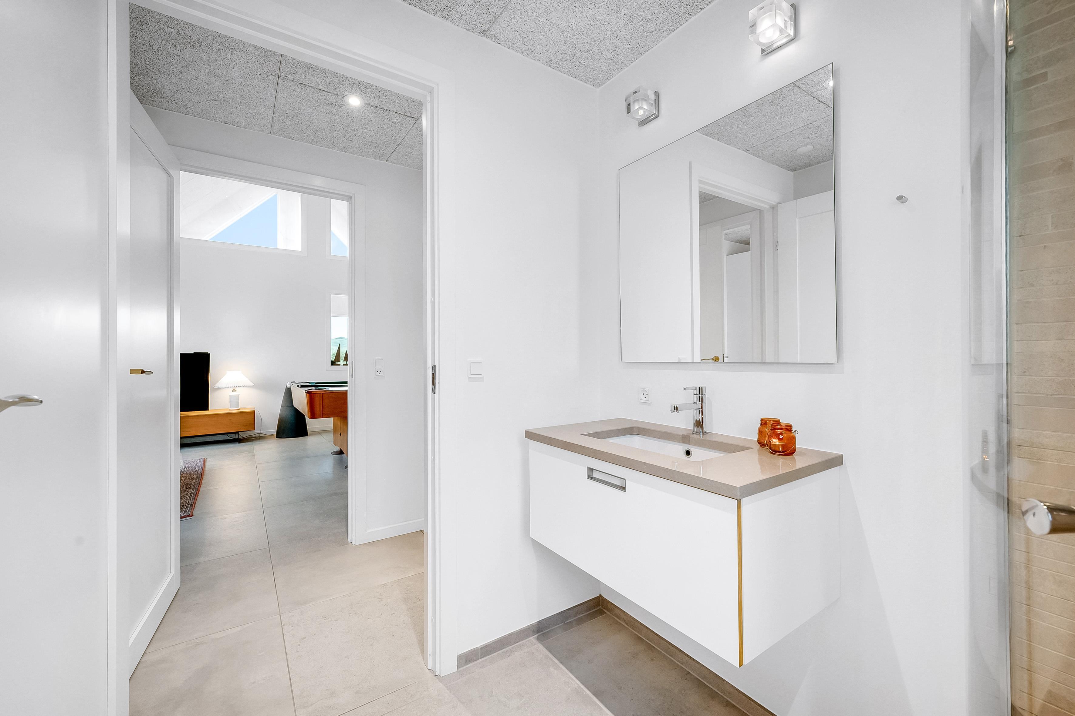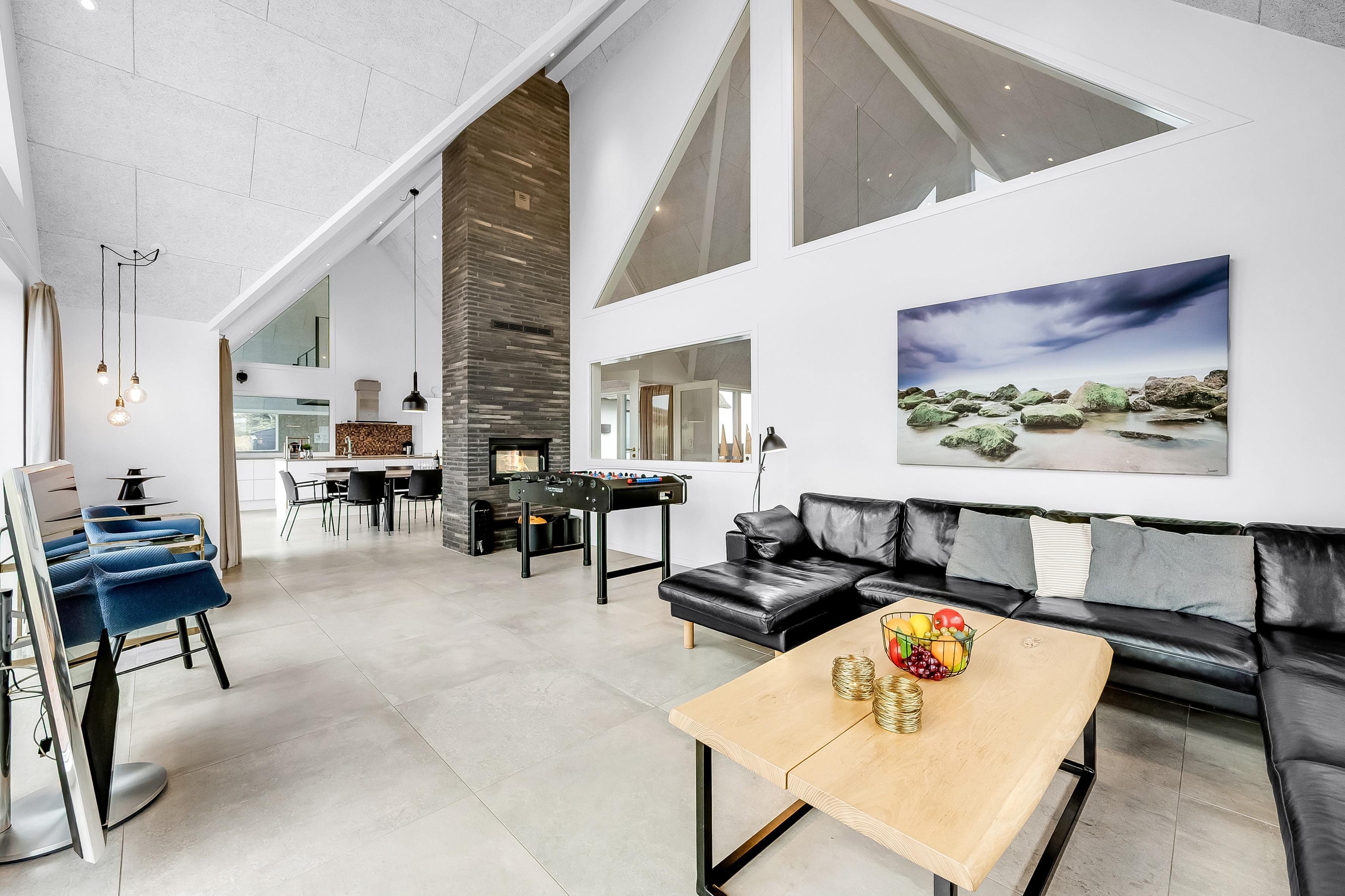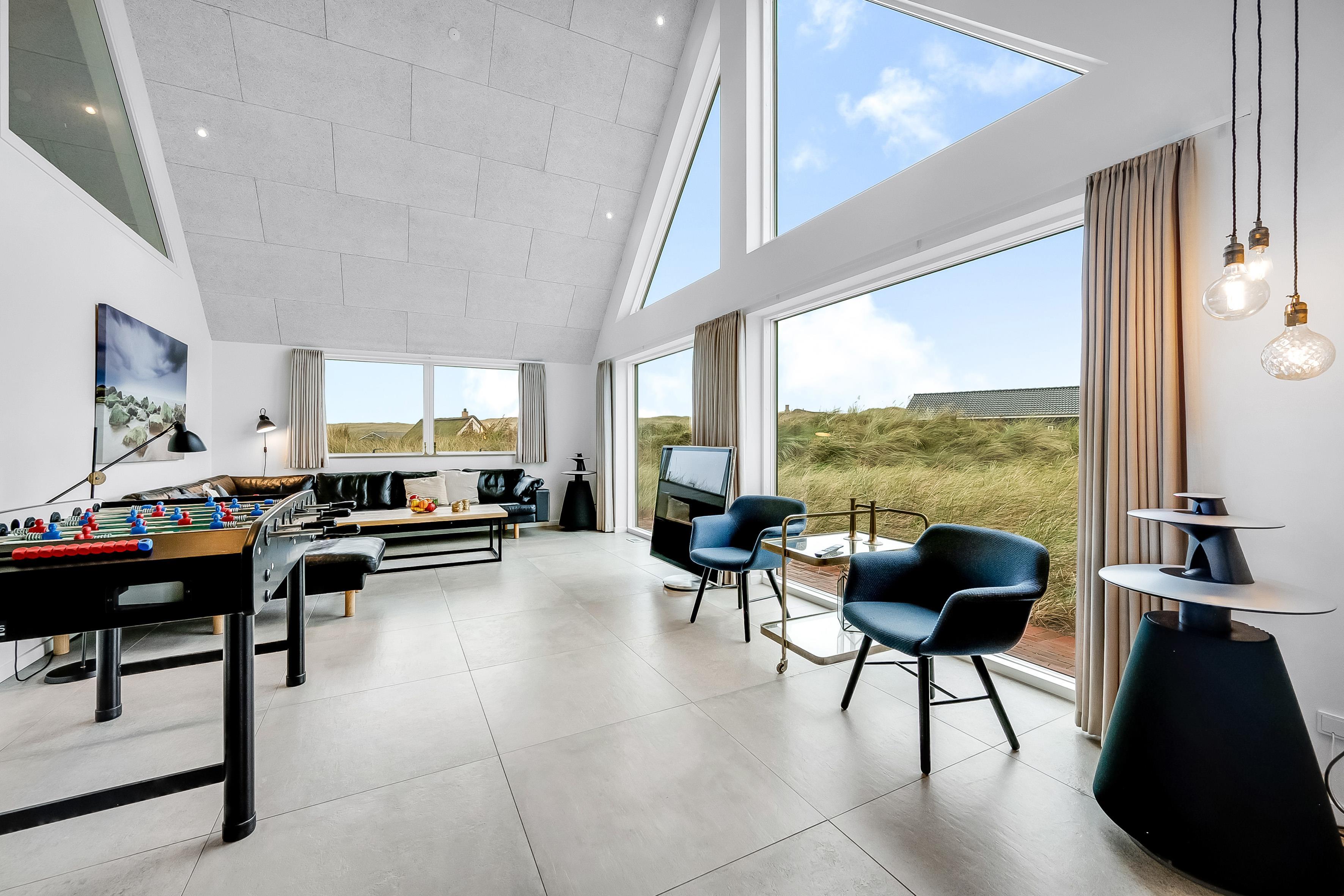 For dem, der elsker at underholde, er der et aktivitetsrum med pool/billard, bordfodbold og meget mere. Dette rum er perfekt til at tilbringe tid sammen med venner og familie, mens I nyder en sjov aften. Huset har også en indendørs spa, der kan rumme 2 personer, samt en udendørs sauna, hvor du kan slappe af efter en lang dag.