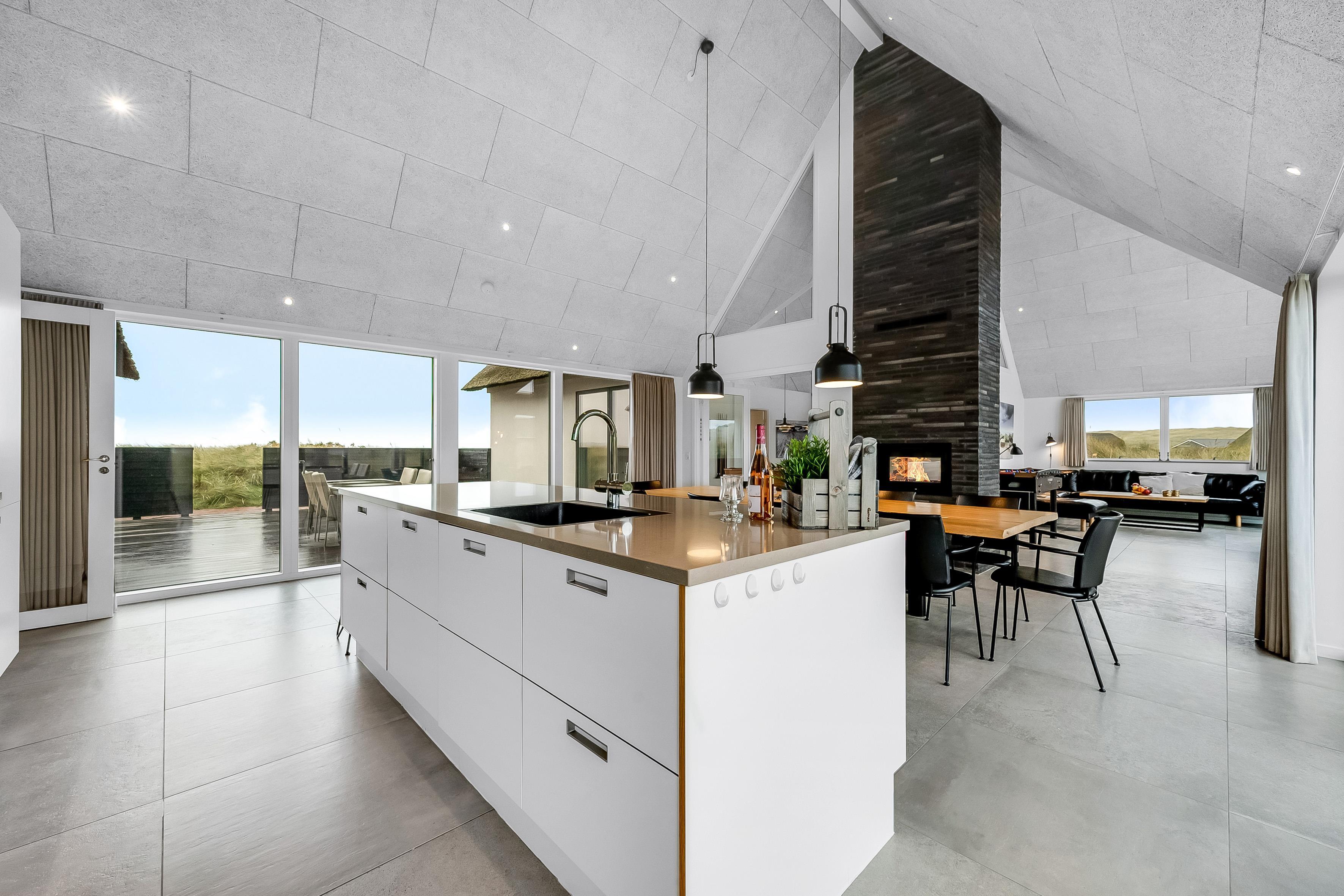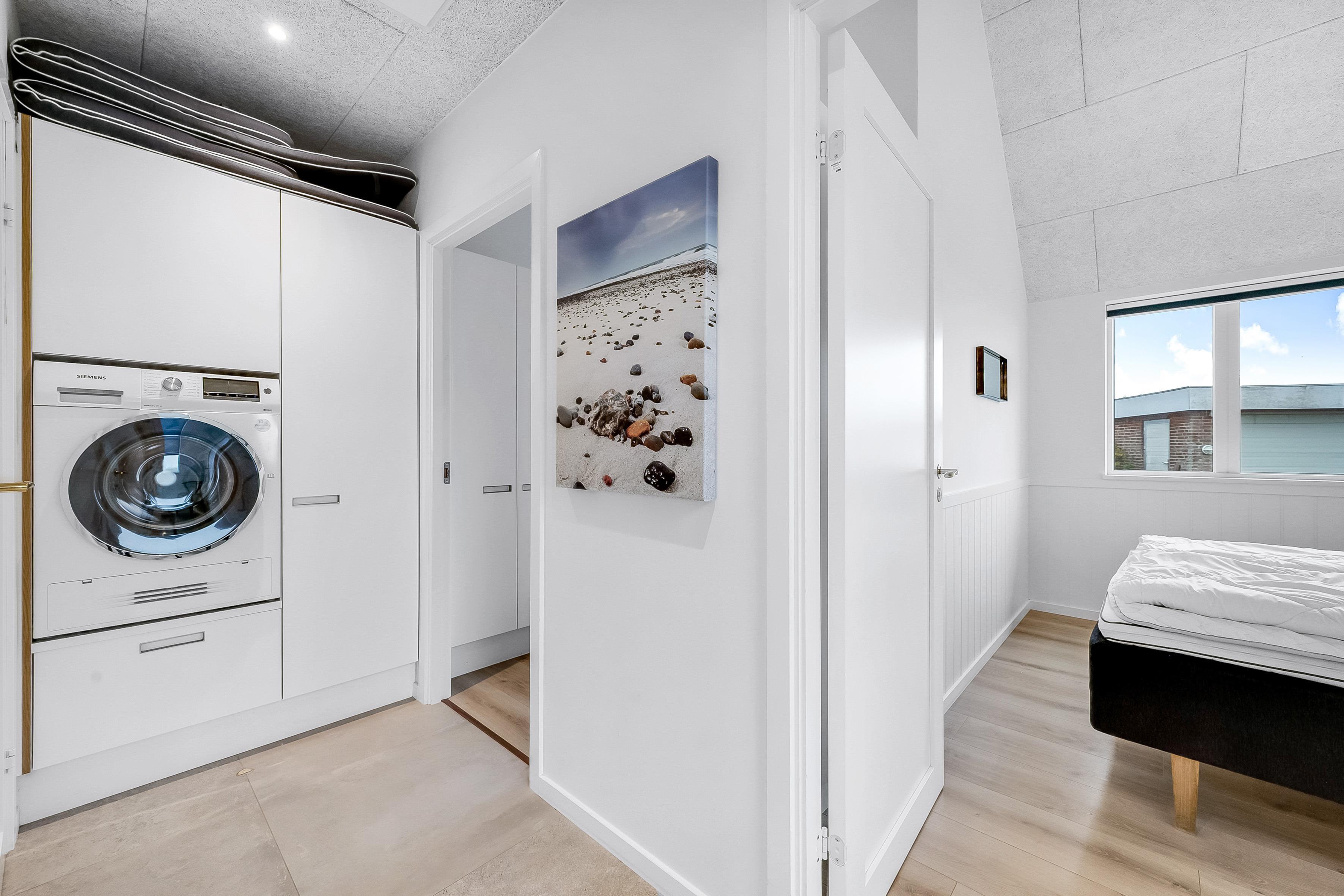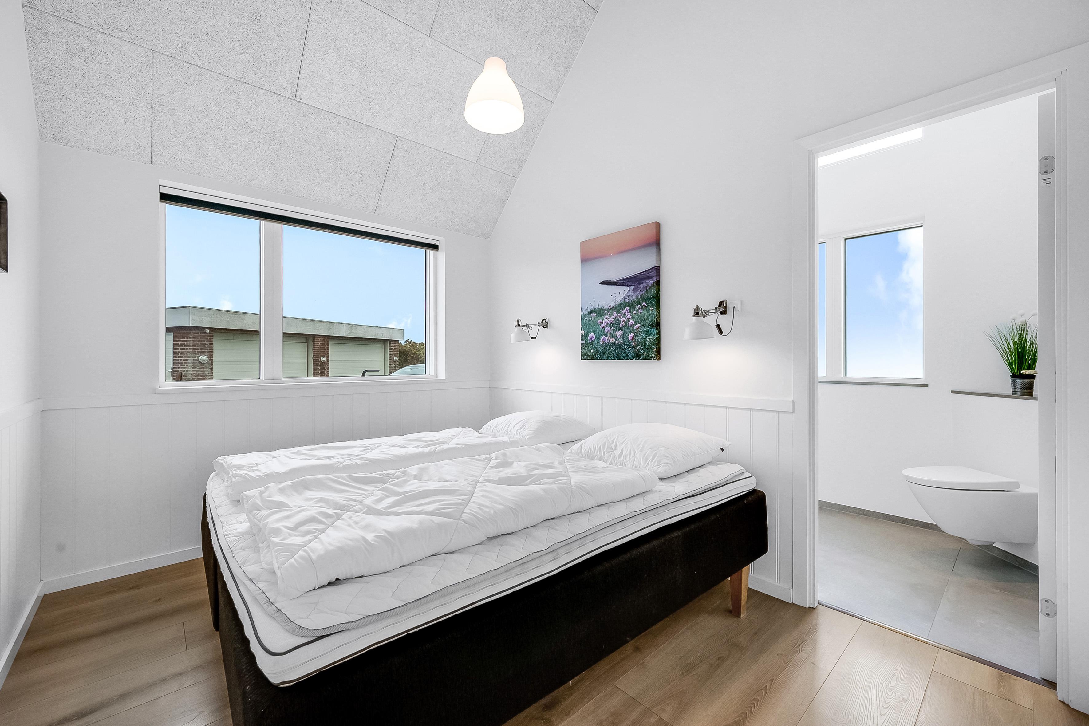 Indendørs finder du 5 soveværelser, der er indrettet med komfort i tankerne. Der er 3 soveværelser med dobbeltsenge, et soveværelse med 2 enkeltsenge og et soveværelse med køjesenge, hvilket gør det ideelt til både par og familier. Med i alt 10 sovepladser er der plads til alle. Huset har 4 badeværelser, der er udstyret med moderne faciliteter, herunder bruser, toilet og gulvvarme, hvilket sikrer en behagelig oplevelse, selv på de koldeste dage.