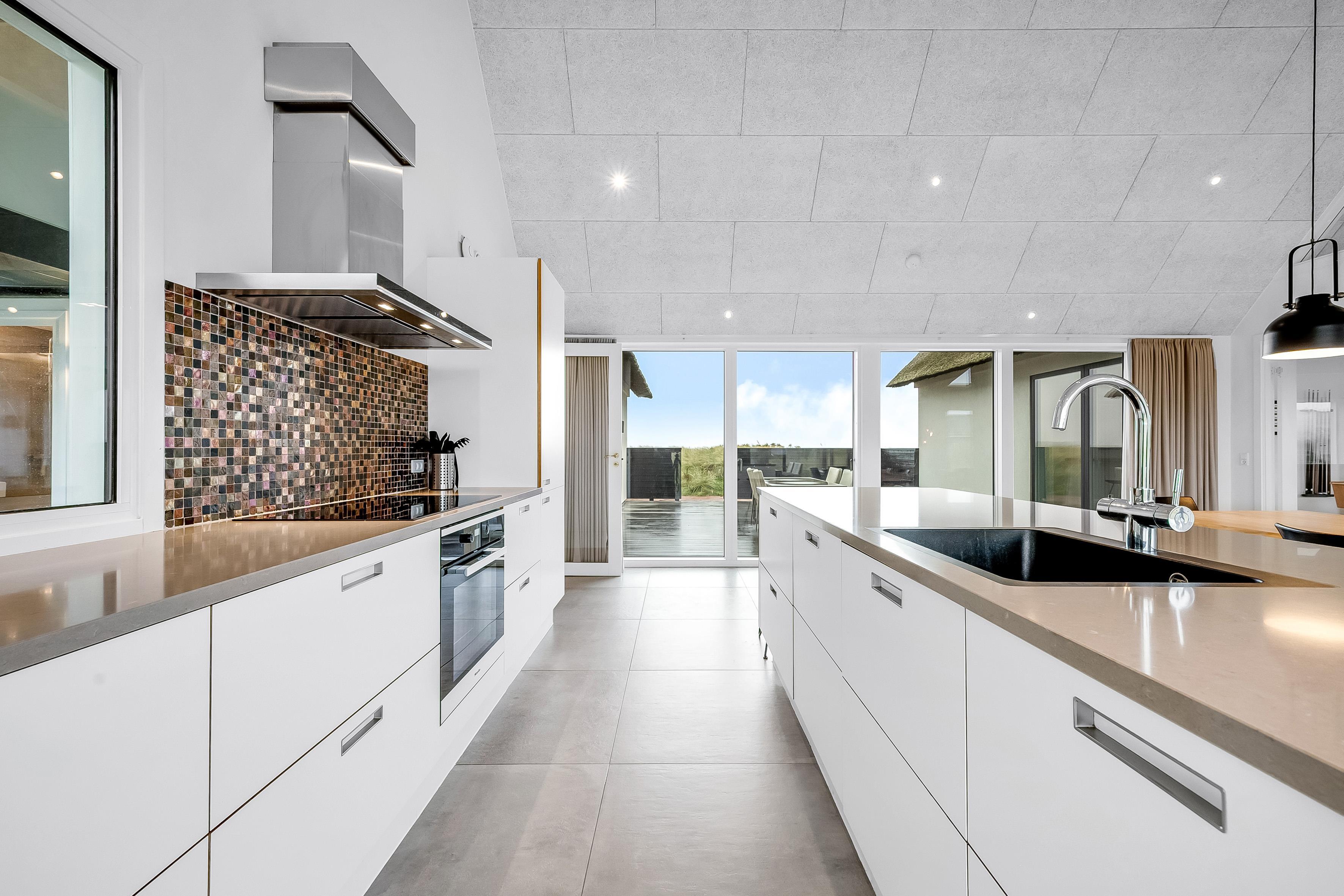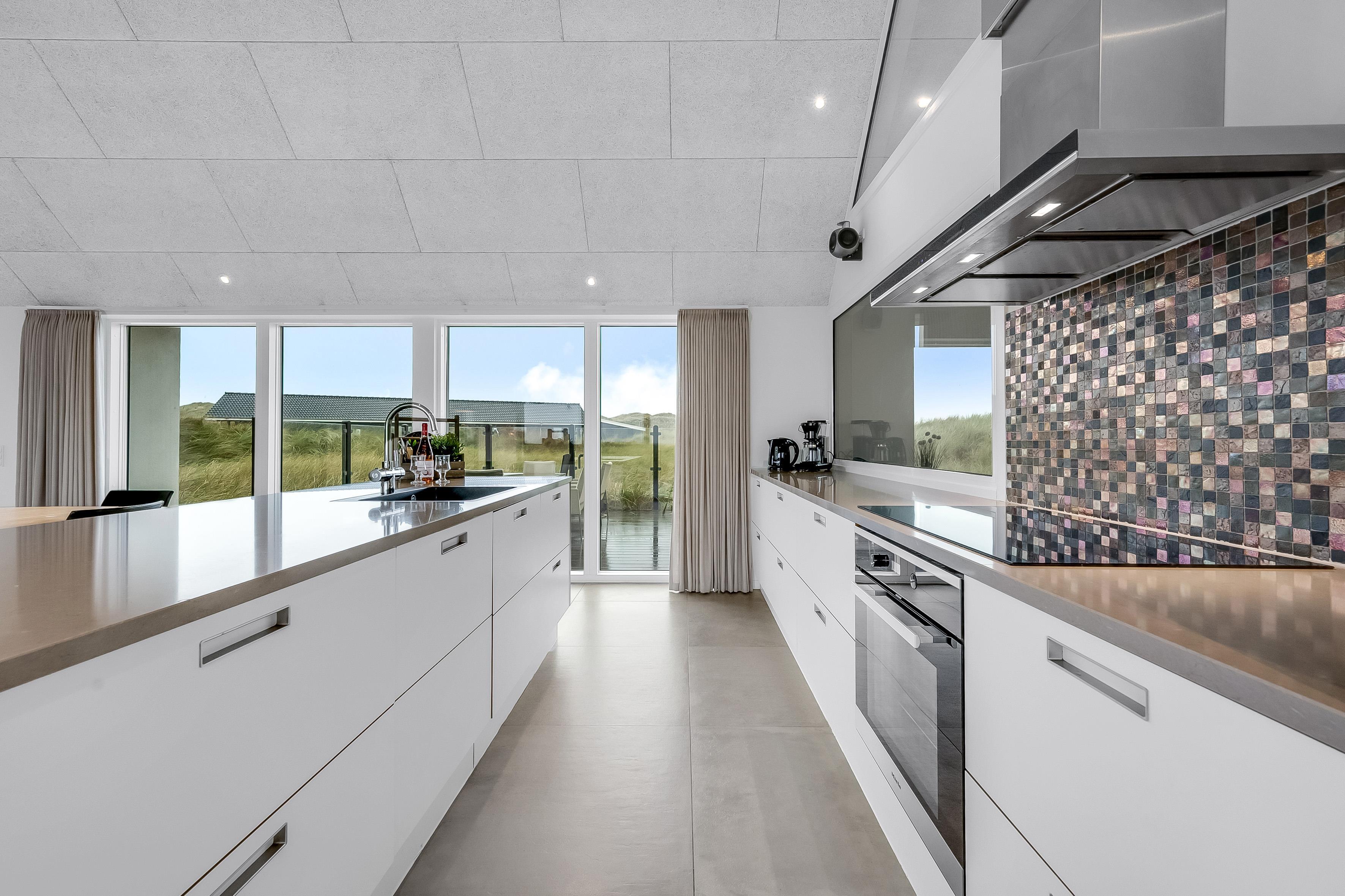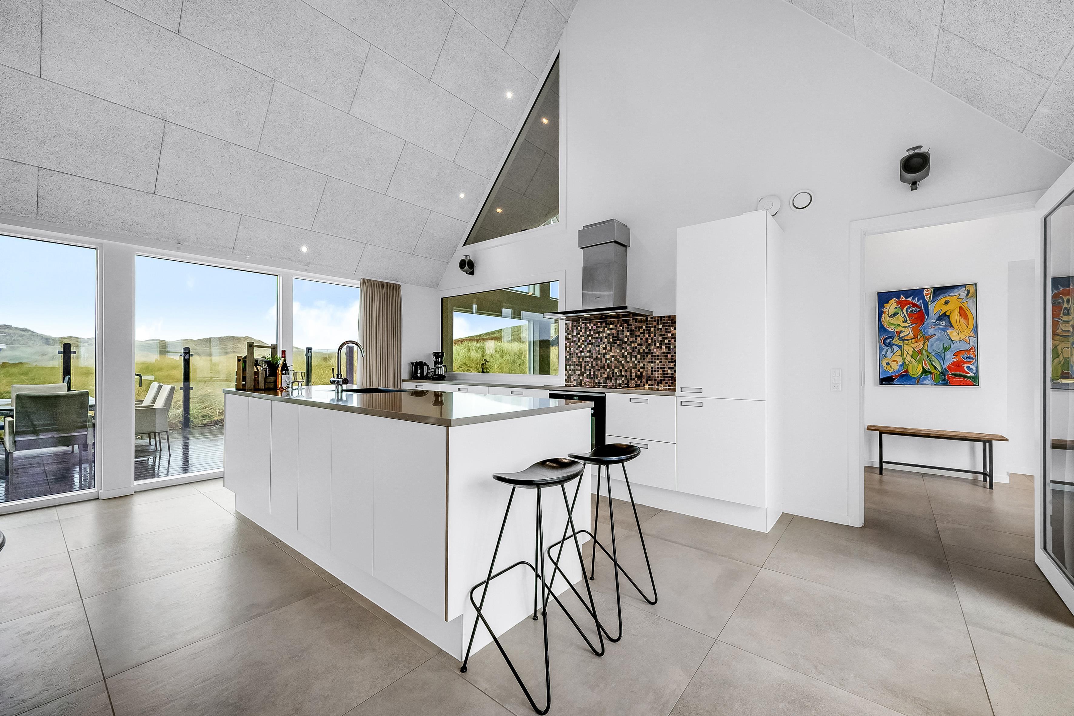 Indendørs finder du 5 soveværelser, der er indrettet med komfort i tankerne. Der er 3 soveværelser med dobbeltsenge, et soveværelse med 2 enkeltsenge og et soveværelse med køjesenge, hvilket gør det ideelt til både par og familier. Med i alt 10 sovepladser er der plads til alle. Huset har 4 badeværelser, der er udstyret med moderne faciliteter, herunder bruser, toilet og gulvvarme, hvilket sikrer en behagelig oplevelse, selv på de koldeste dage.