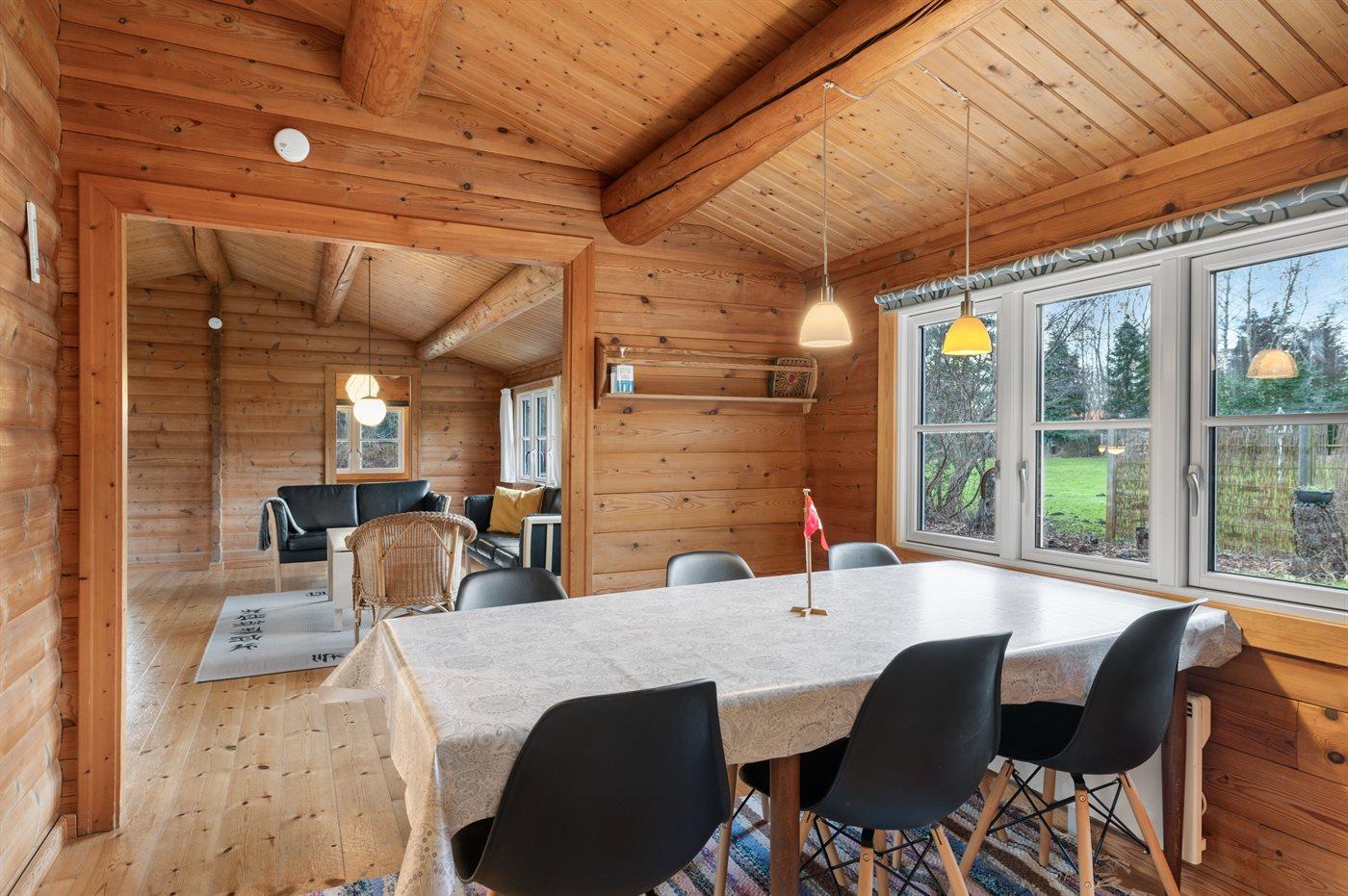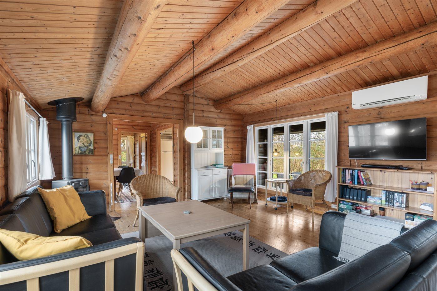 Et yderst hyggeligt og tillige rummeligt sommerhus på Nordlangeland. Huset er et ægte norsk bjælkehus, så den autentiske sommerhusstemning er i top!