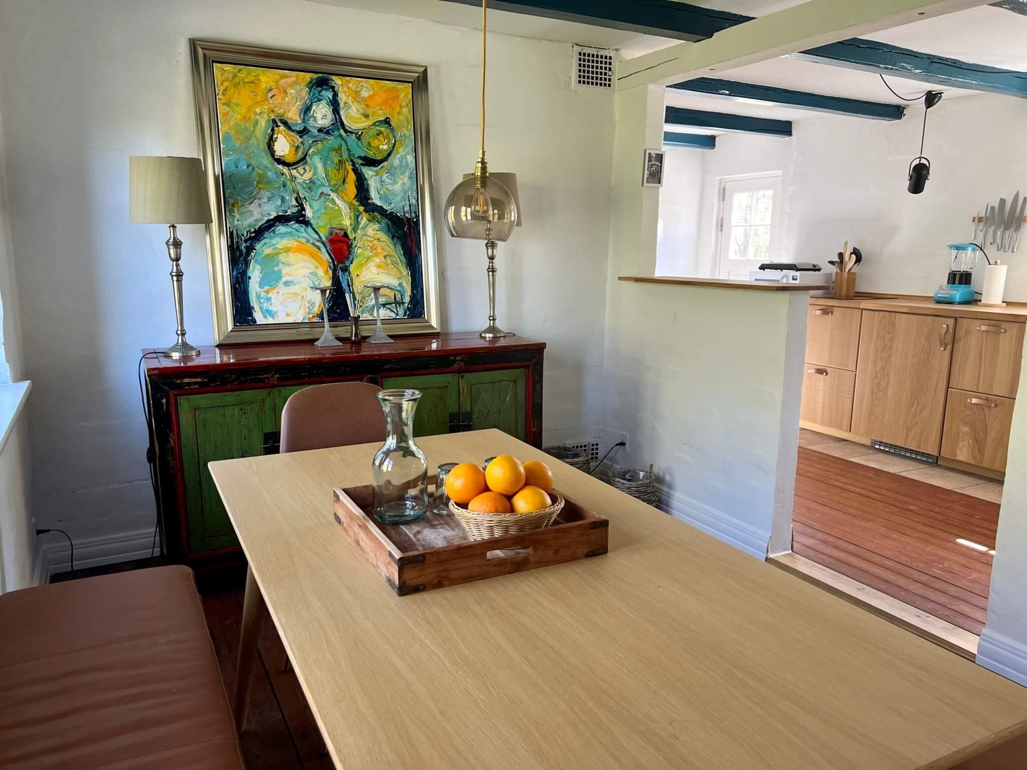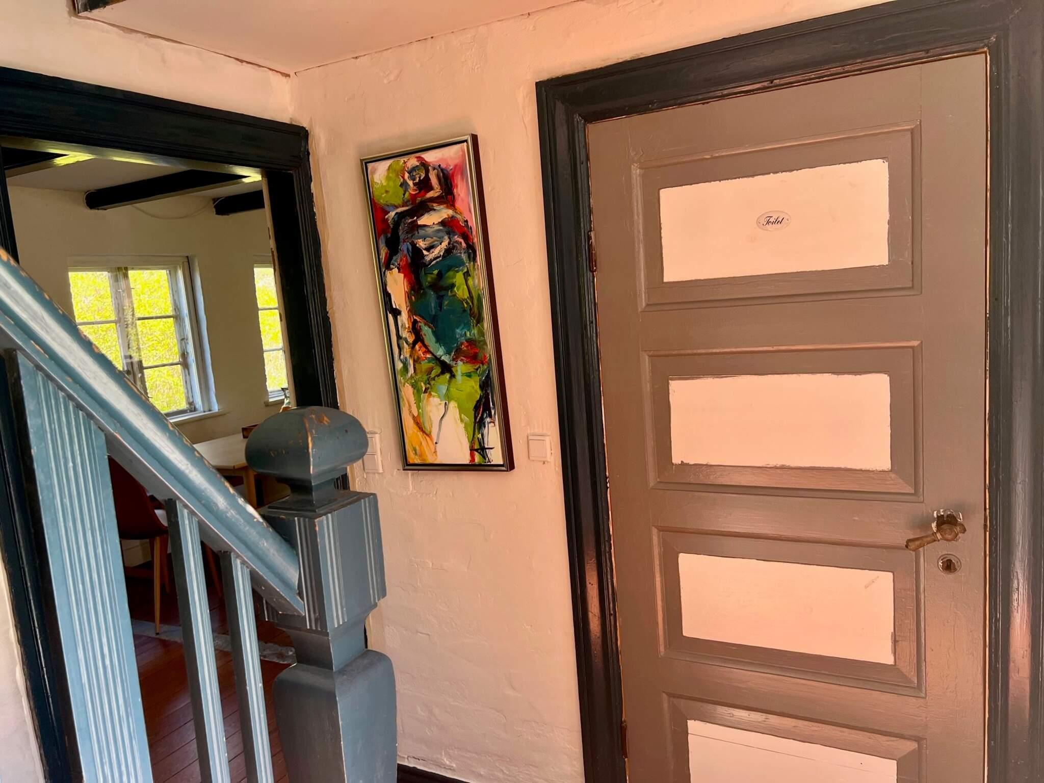 Huset er lyst indrettet med rustikt trægulve og landlig stil og originale vinduer og døre.