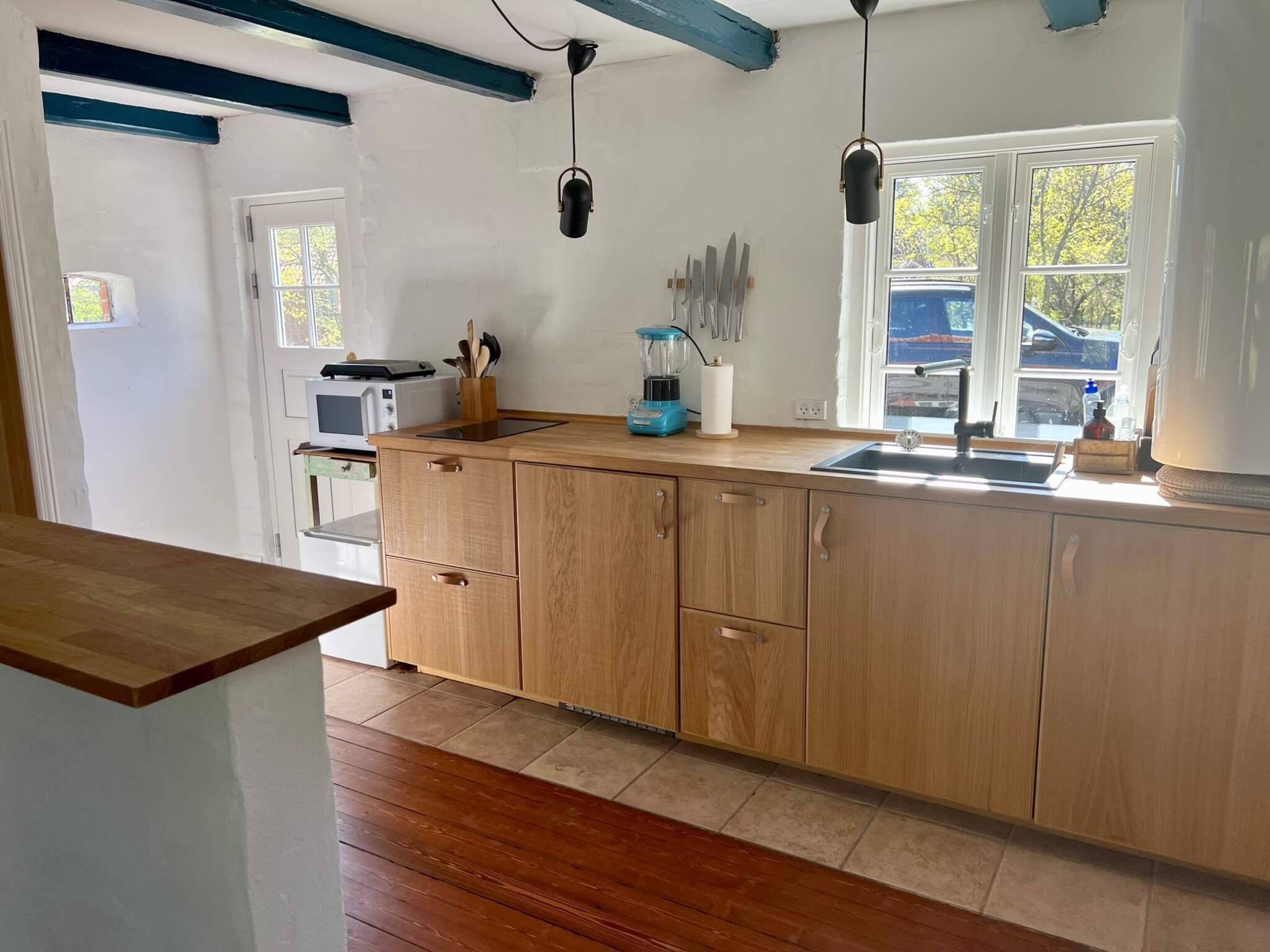 Køkken: Køleskab, fryser 1 - 59 l, mikroovn, induktionskomfur, kaffemaskine