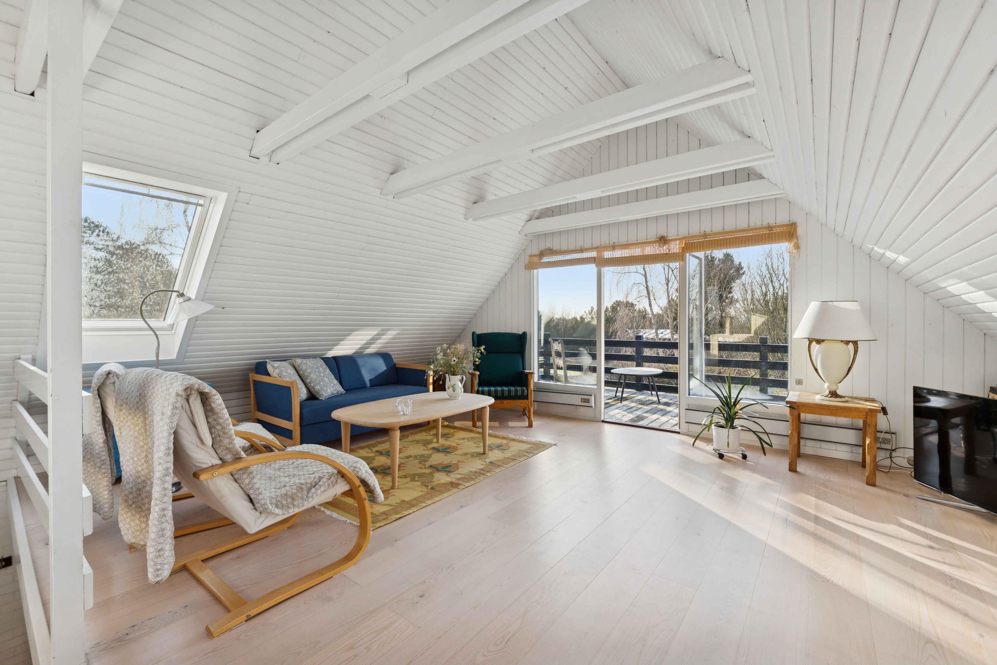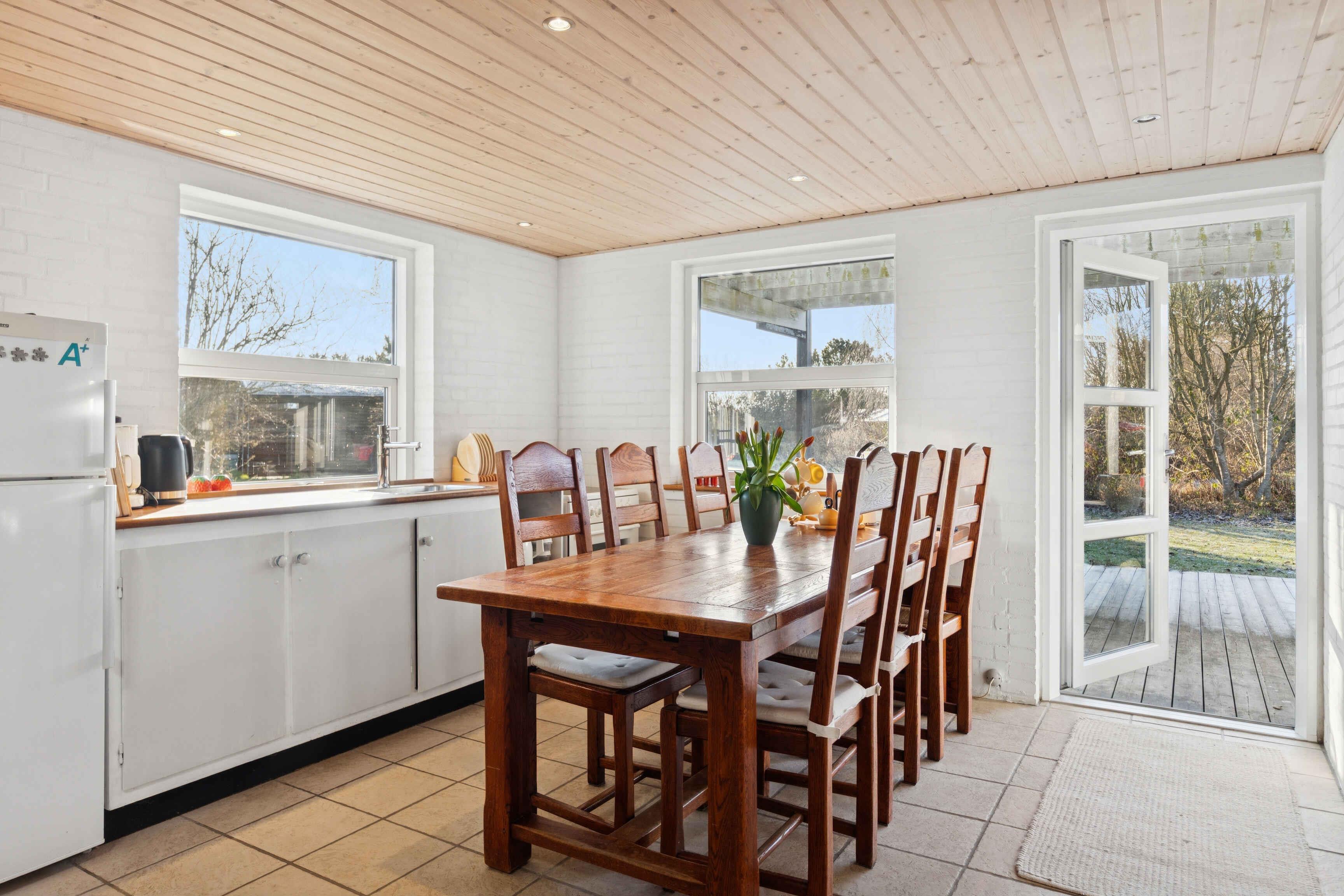 Slap af med hele familien i dette fredfyldte sommerhus på 64 m² med plads til op til 6 sovepladser. Huset er indrettet enkelt og funktionelt og danner en rolig ramme om ferien, uanset om I søger nærvær, natur eller aktive oplevelser. Sommerhuset rummer to værelser, badeværelse og køkken i stueplan. På førstesalen ligger den store stue med direkte udgang til en altan, hvor dagen kan starte med morgenkaffe og slutte med aftensol. Den store have indbyder til udeliv med fodboldmål, havespil og plads til afslapning. Her er rum til både leg og ro, mens børnene kan boltre sig, og de voksne nyder feriestemningen. Området omkring sommerhuset er ideelt til ferie med fokus på natur og afslapning. En lækker sandstrand ligger blot fem minutters gang væk og er perfekt til badning, strandture og lange gåture langs vandet. Kysten gør området attraktivt for lystfiskere, og naturen skifter udtryk med årstiderne. Tæt på huset findes en campingplads med minigolf, ishus og en lille købmand, som giver ferien ekstra bekvemmelighed. Inden for kort køreafstand ligger en 18-hullers golfbane, der tiltrækker både øvede og nye spillere. Sommerhuset opvarmes af brændeovn samt en håndklæderadiator i køkkenet, tilkoblet solceller på taget. Af hensyn til sikkerhed er åben ild og bål i haven ikke tilladt.