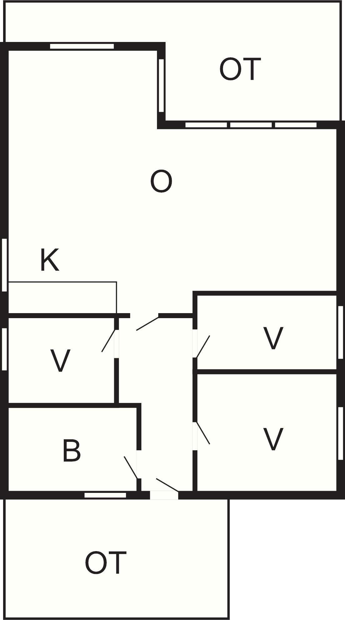 3 Soveværelser: (1DS)+(1DS)+(2K)
