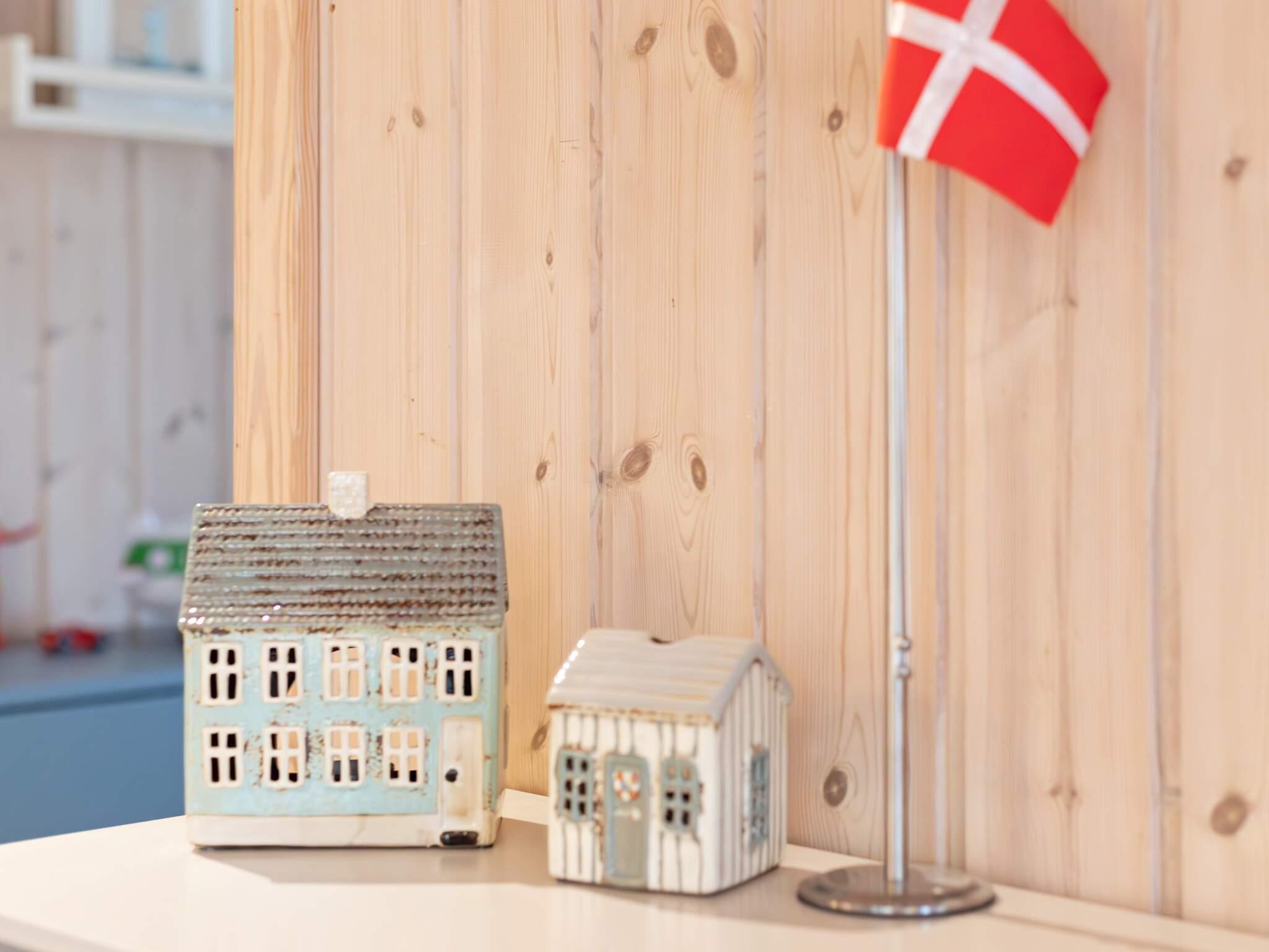 Indenfor er hjemmet lyst, hyggeligt og gennemtænkt indrettet. Det fuldt udstyrede køkkenhjørne har gaskomfur, opvaskemaskine og køleskab med fryser samt en spiseplads til fælles måltider. Stuen giver et behageligt sted at slappe af med et tv med danske og nogle tyske kanaler. Der er tre soveværelser: to med dobbeltsenge og et med enkeltseng, der giver fleksible sovepladser, mens badeværelset er udstyret med bruser, toilet og vaskemaskine.