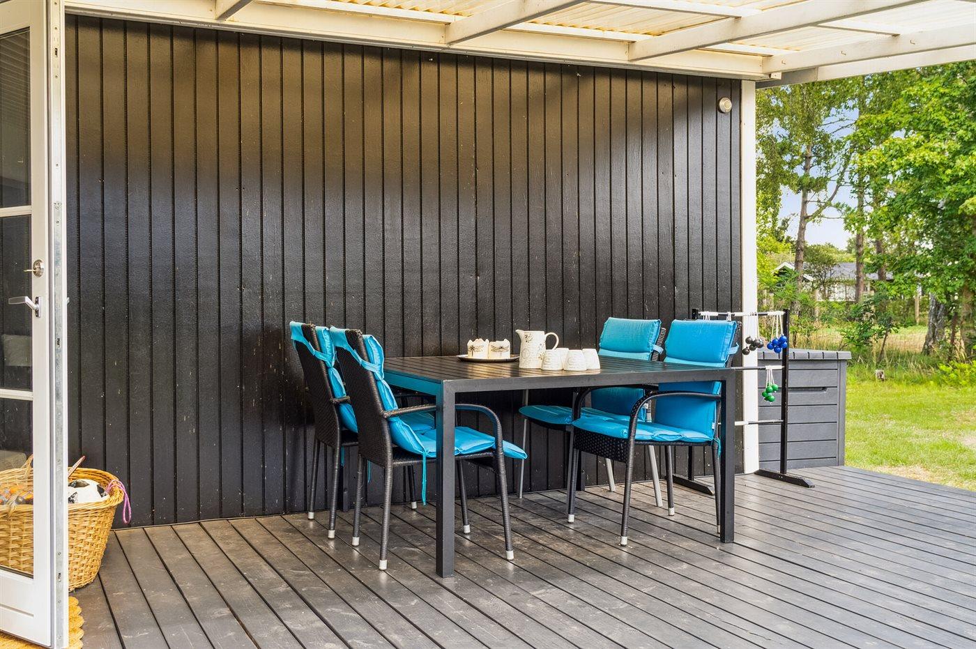 Ferieboligen er beliggende på en 1000 m² stor naturgrund. Der er 390 m til havet. Der er en badebro i nærheden. Nærmeste forretning er beliggende i en afstand af 2200 m. Til ferieboligen hører åbent terrasseareal. Desuden er der overdækket terrasse. Bålsted. Parkering ved ferieboligen.