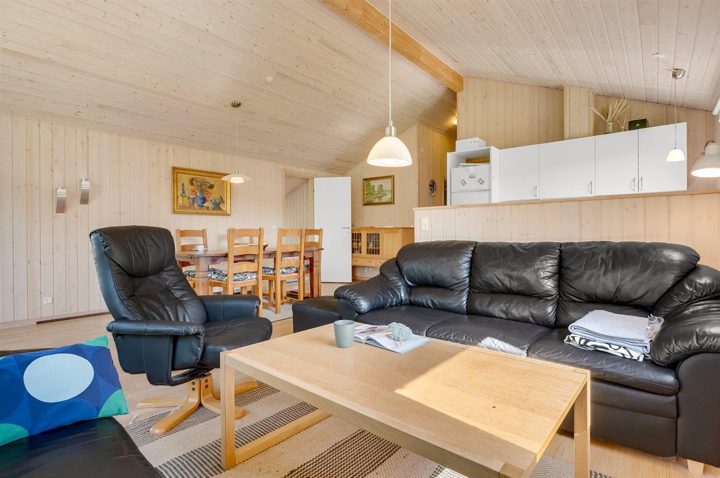 Huset er lyst indrettet med god møblering og et skønt, åbent køkken med fine muligheder for at kreere et dejligt måltid til familie og venner. Huset indeholder ligeledes 4 soveværelser og to badeværelser, hvoraf det ene med en skøn spa og sauna. Her er altså plads til den store familie. Efter en lang dag ved stranden er der god mulighed for at nyde spabadet og saunaen og efterfølgende grille på terrassen, imens kan børnene lege på den fælles legeplads, som er lige ved siden af huset. Der er gynge, rutsjebane og legehus og plads til boldspil. Det er et besøg værd at spise på Den Gamle Digegaard, som ligger ca. 2 minutter fra huset.