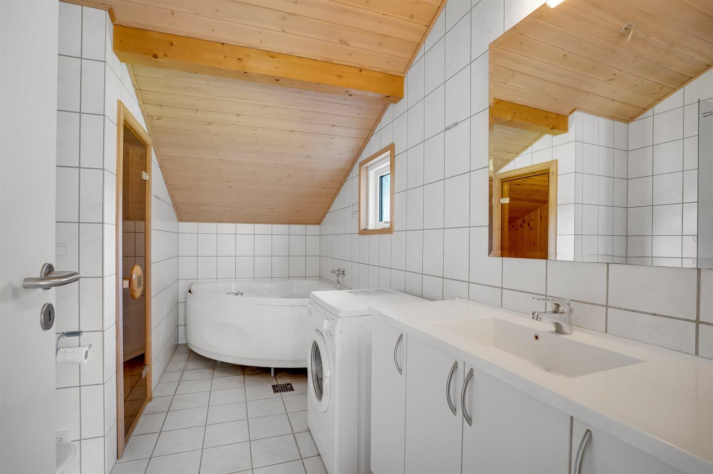 Der er 2 badeværelser med bruseniche og 2 toiletter. Der er gulvvarme på 2 badeværelser. I saunaen er der mulighed for afslapning.