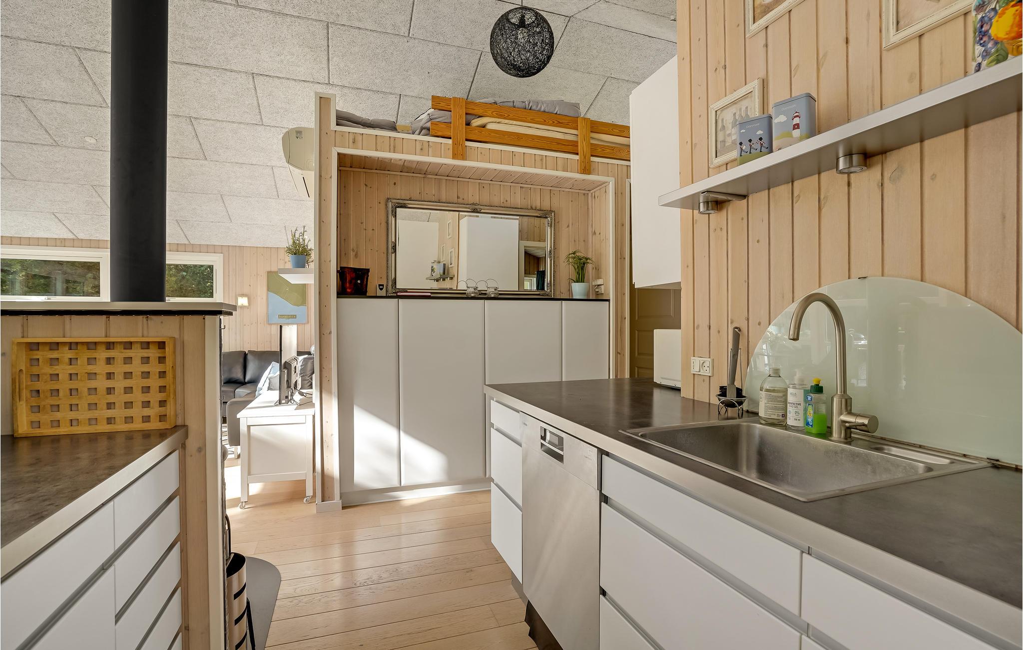 Velkommen til dette skønne sommerhus, som giver jer en hyggelig ramme om familieferien. Huset er dejligt rummeligt, og der kommer masser af lys ind gennem de store vinduespartier i stuen. Glæd jer til brætspilsaftner i stuen, mens ilden knitrer i brændeovnen og gode forhold til madlavningen i åbne køkken.