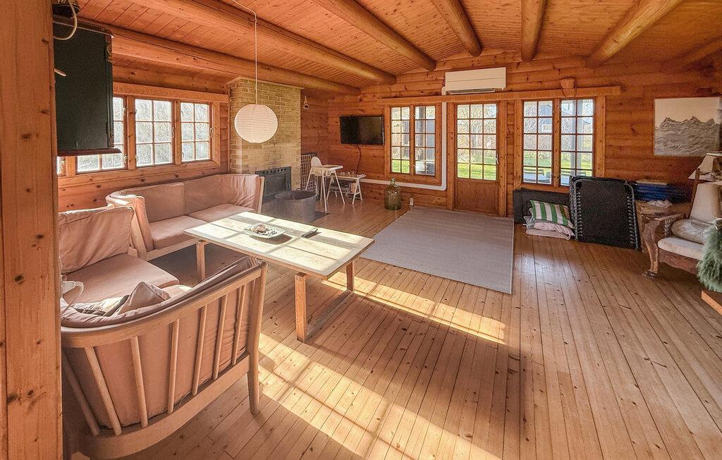 Velkommen i dette herlige sommerhus, som har en varm og indbydende atmosfære med smukke, gennemgående træelementer. De sprossede vinduer lukker lyset og de grønne omgivelser fra haven ind i rummene, så der er en dejlig ro i boligen. Sæt jer godt til rette i de komfortable sofaer eller find sammen omkring spisebordet til et hyggeligt måltid efter dagens program. På en kølig dag kan I tænde op i kaminen og nyde den helt særlige hygge, der spreder sig, når ilden buldrer bag ruden. I det fuldt udstyrede køkken kan I kaste jer ud i små og store madlavningsprojekter, give jer god tid og nyde selv at sætte tempoet for dagen.