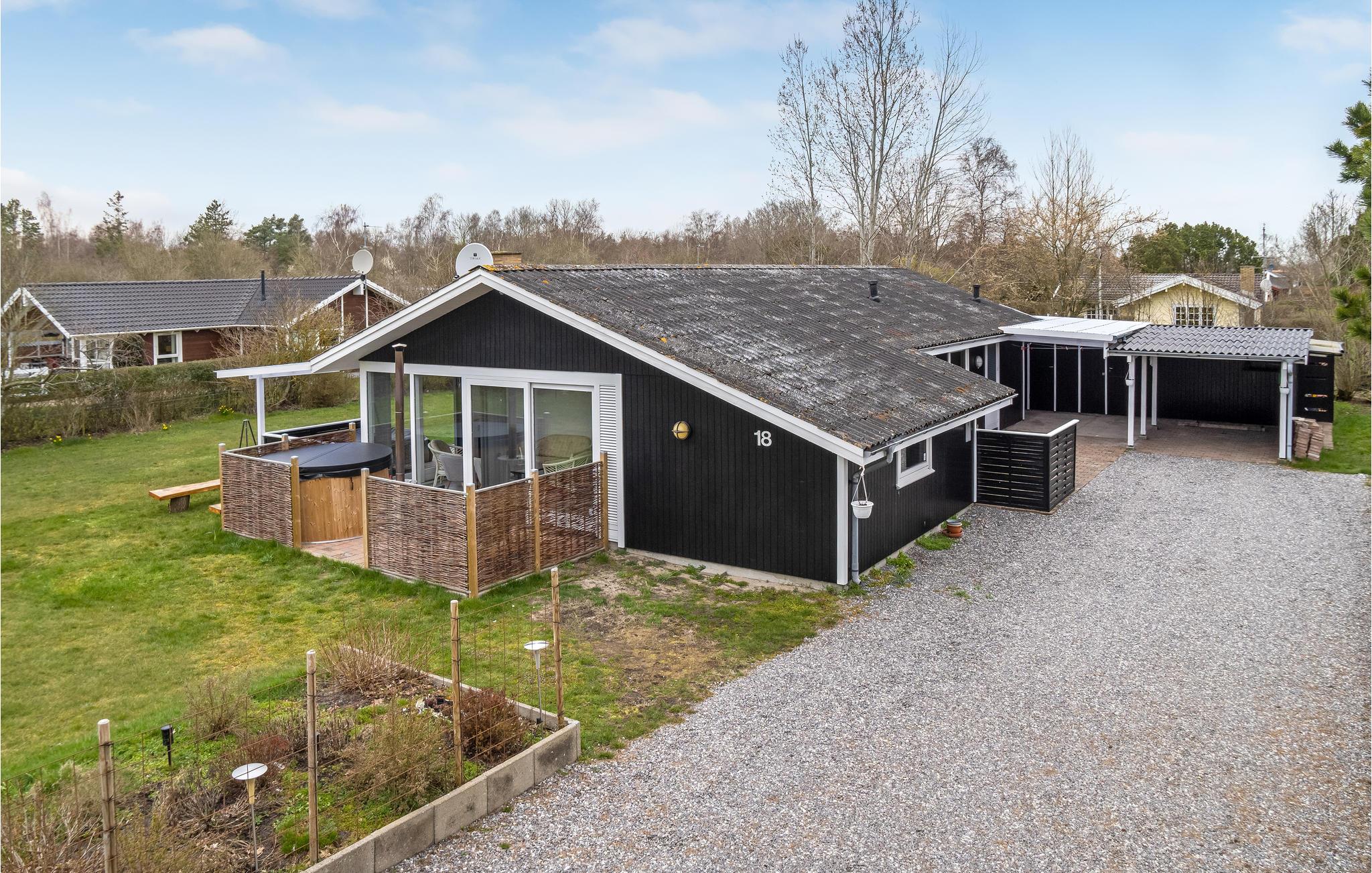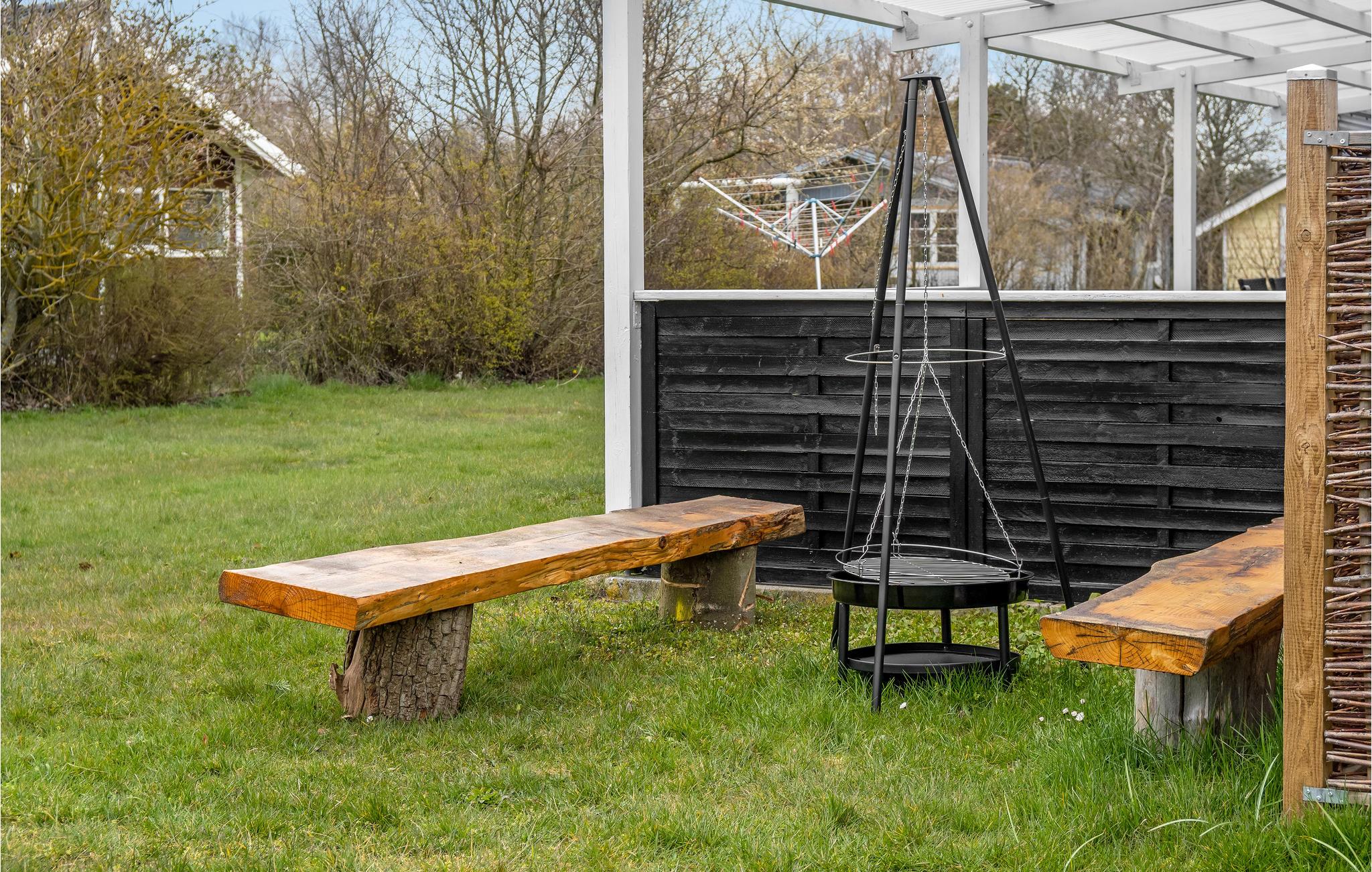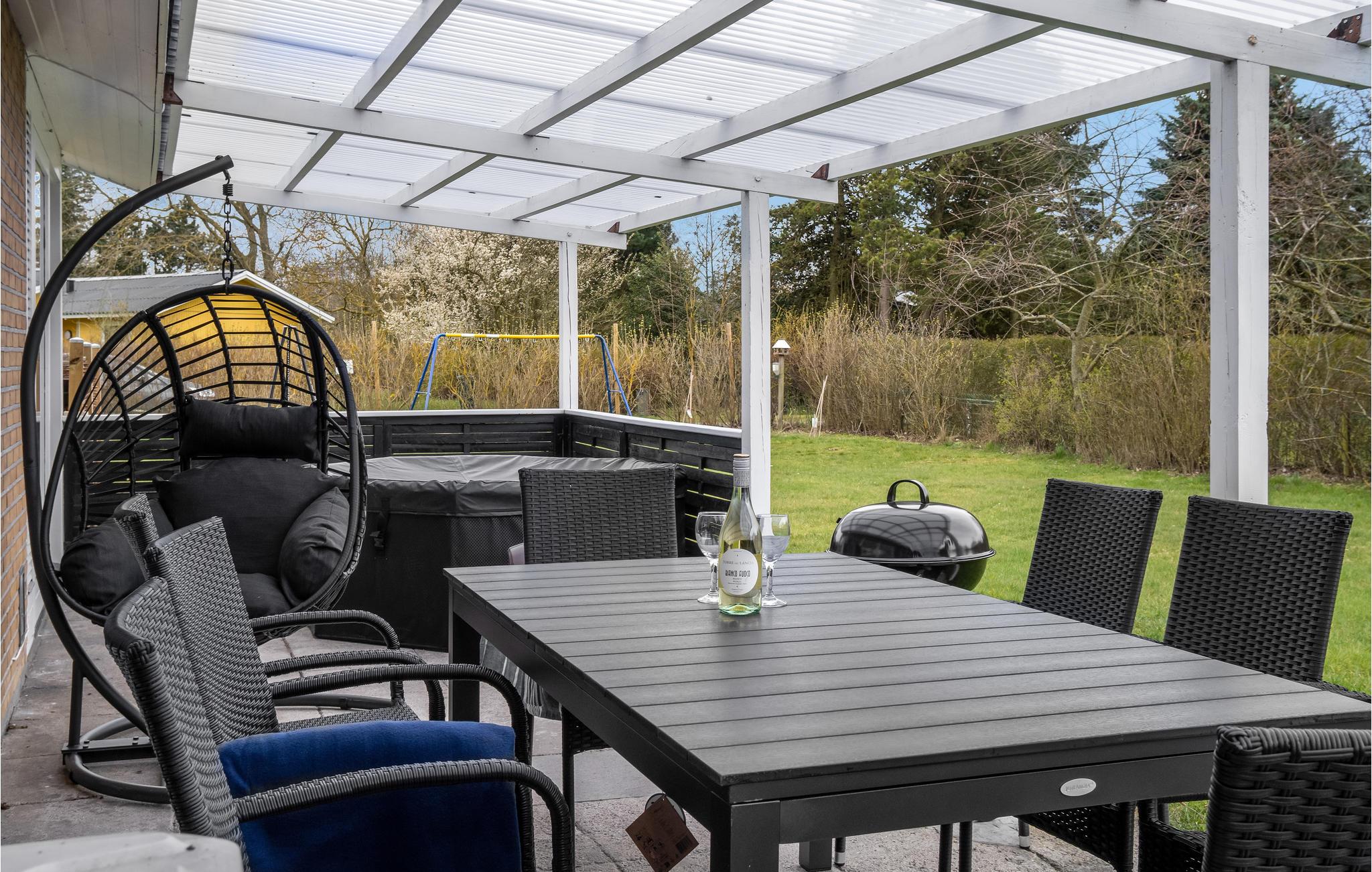 Der er også skønt i haven. Nyd solen på græsplænen eller terrassen og nyd en rolig stund i vildmarksbadet, mens børnene leger og boltrer sig i haven.