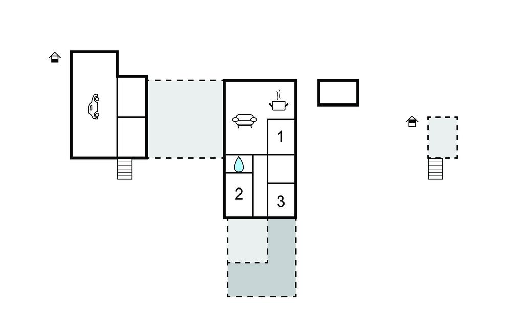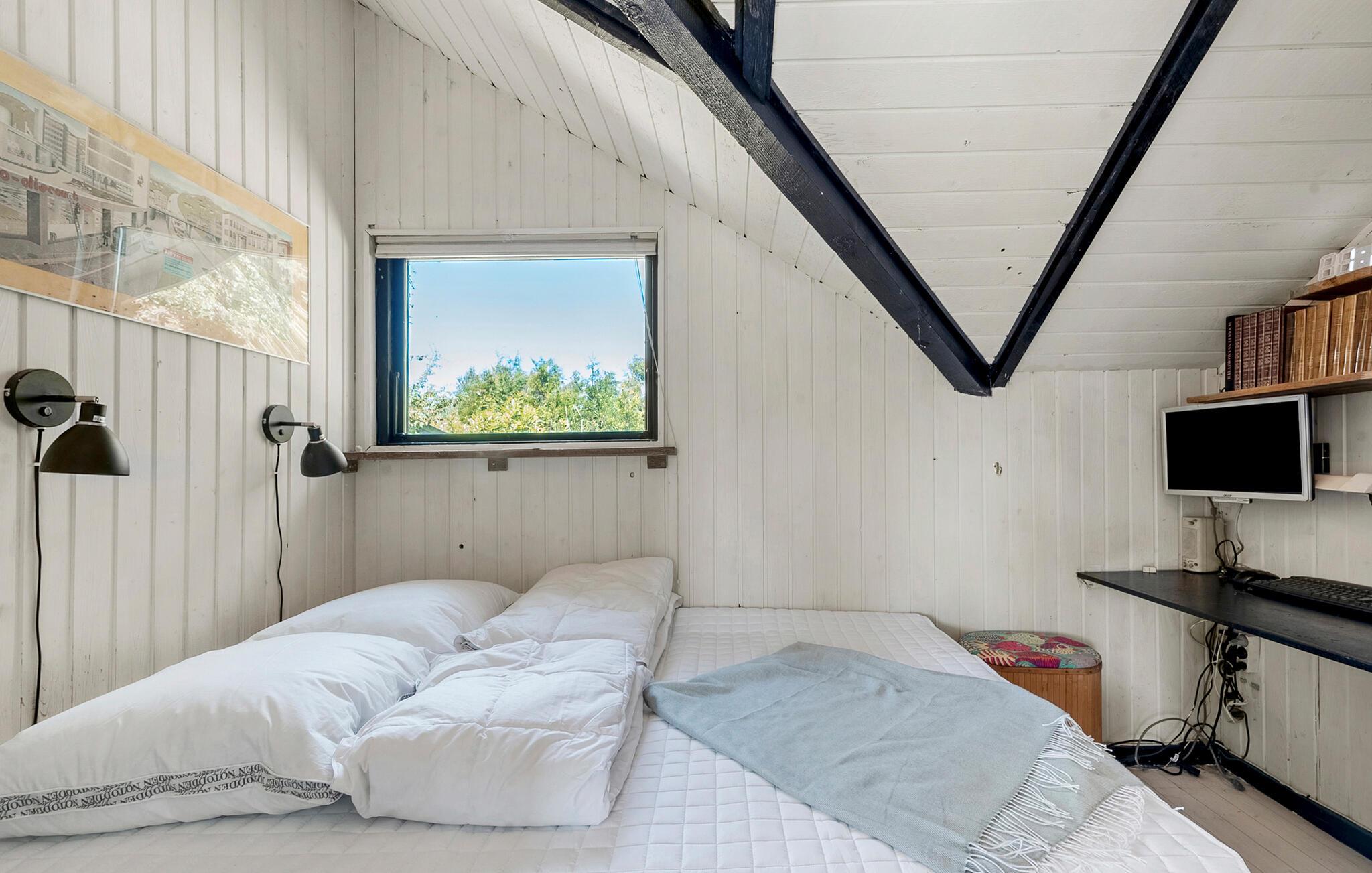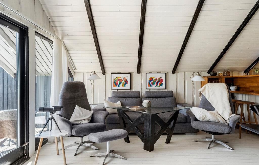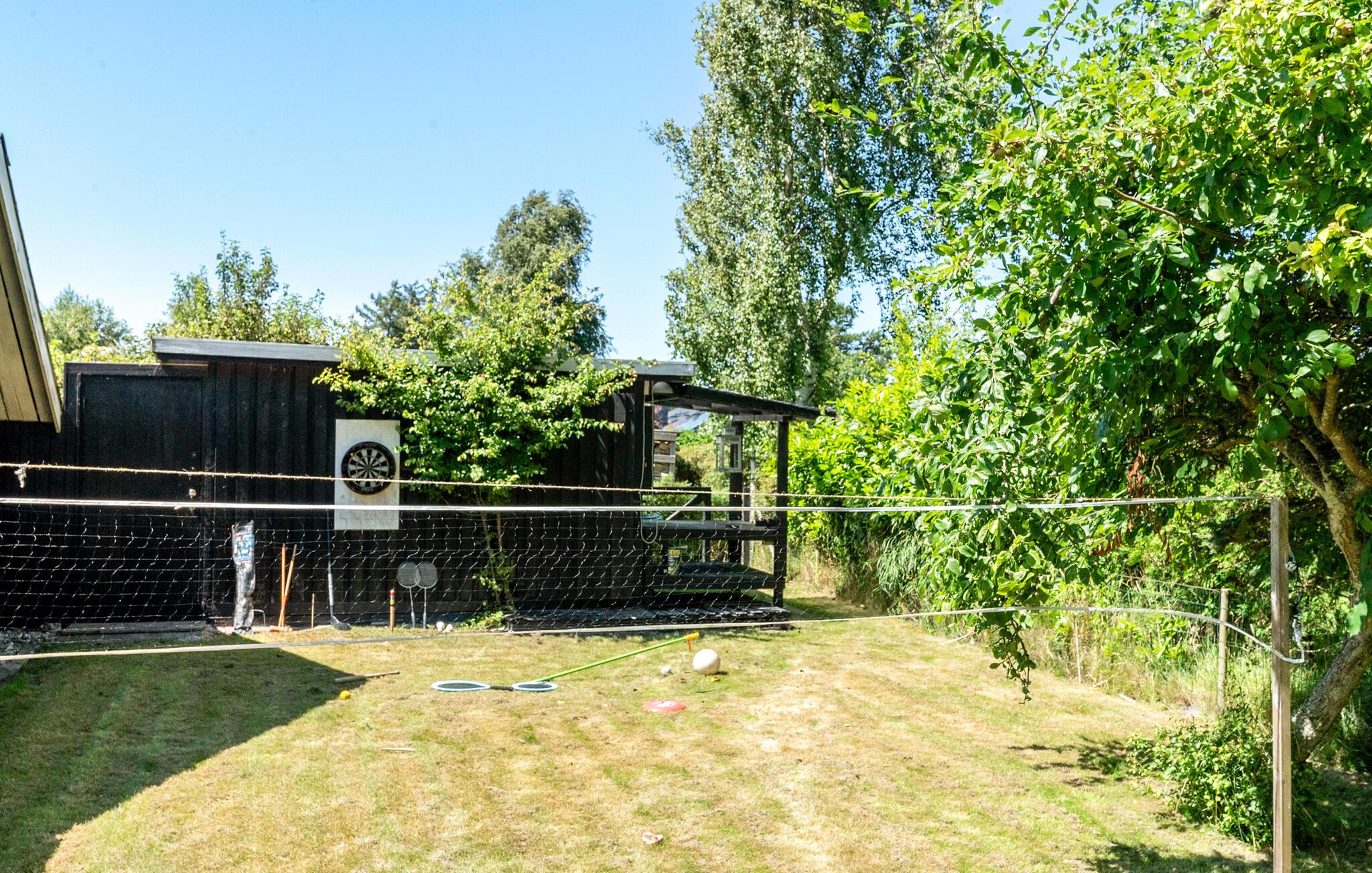 På den store solterrasse kan I rigtig nyde sommerdagene i de farverige havemøbler. Tænd op i bålfadet om aftenen og lyt til de knitrende flammer, mens mørket falder på. Hvis I trænger til en rolig stund, er der en skøn fred og ro på den lille udsigtsplatform med udsigt over haven, og i klart vejr kan I se til Tyskland. Sæt jer her og hold øje med fuglelivet eller nyd en drink oven på dagens program. Omkring huset er der masser af plads til leg, læsning eller en lille pause i solen. I det overdækkede shelter falder lyset ind gennem taget og gør det dejlig lunt på en forårs- eller efterårsdag. Om sommeren kan I lave mad i det overdækkede udekøkken, inden I serverer retterne ved spisepladsen. Huset ligger ugenert ved siden af et stort fredet område mod øst og er i kort gåafstand fra havet. Mod vest er hele grunden skærmet med en væg uden vinduer.