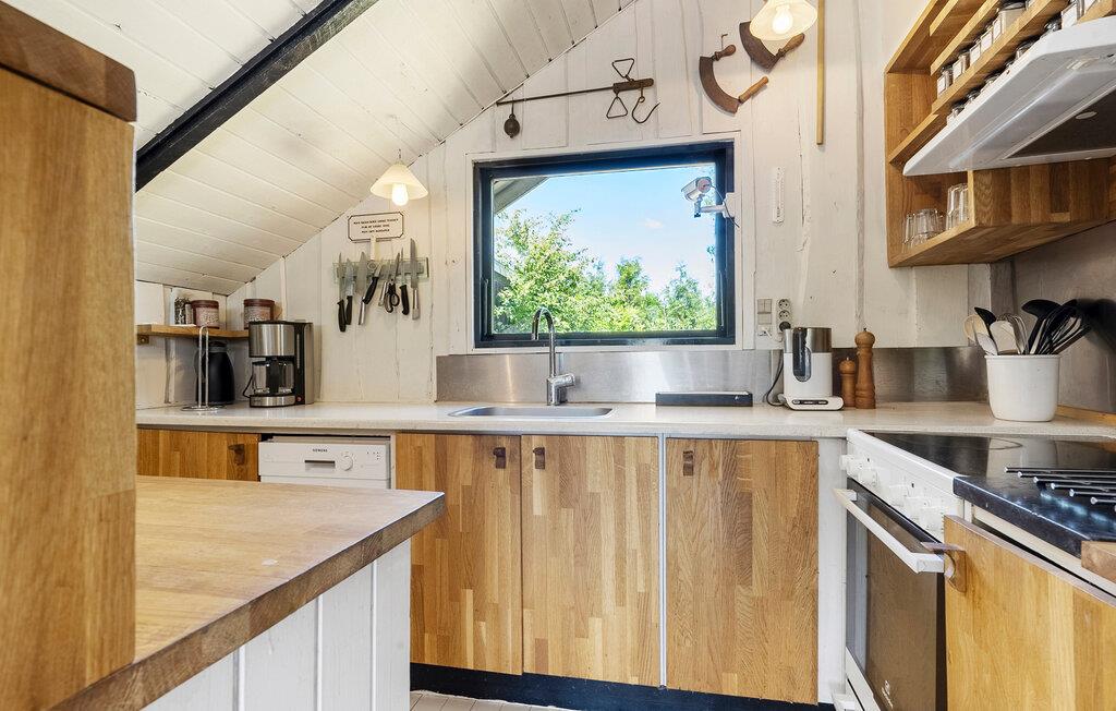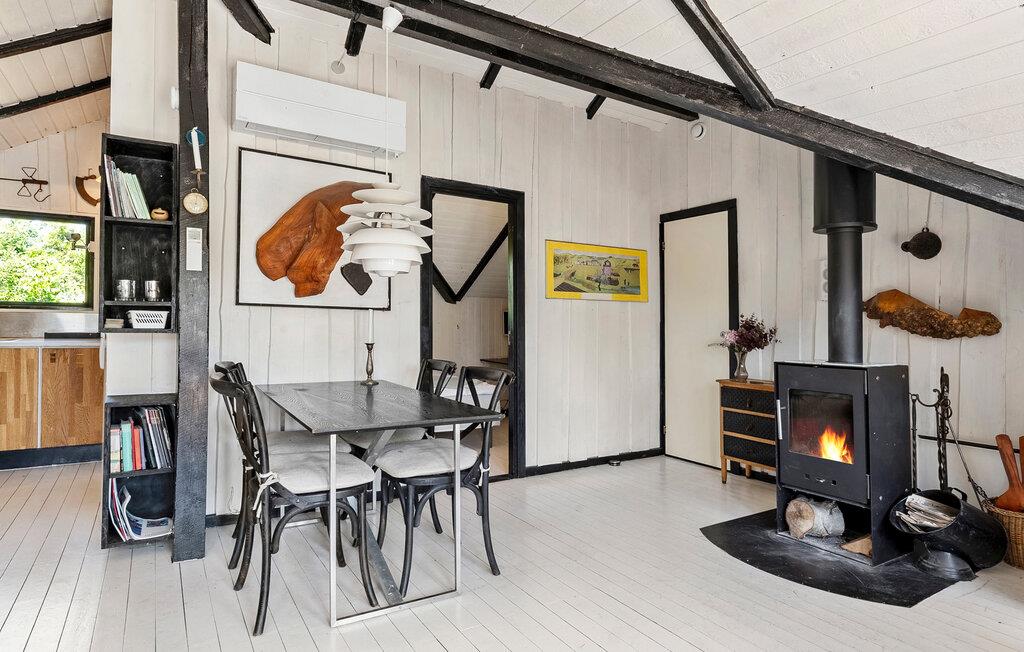 Dette hus kombinerer charmerende rustikke detaljer med moderne komfort. I stuen kan I læne jer godt tilbage med ild i brændeovnen og hygge jer med bøger og brætspil efter dagens udflugter. Giv jer god tid til at tilberede lækre feriemåltider i det åbne køkken med fine trælåger. Der er ekstra sovepladser i annekset.