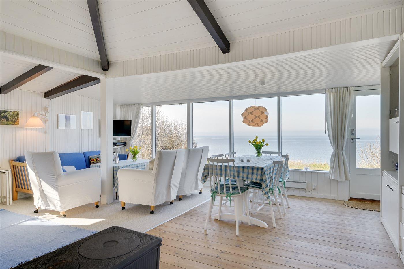 Når beliggenhed og udsigt ikke bliver bedre. Dette sommerhus har med sin høje placering den mest fantastiske panoramaudsigt over havet fra både stuen, spisepladsen og fra det meste af grunden. Herfra kan I nyde synet af de forbipasserende lystsejlere, skibstrafikken og følge med i vejrets skiften. Huset er beliggende for enden af en blind vej og ligger derfor i rolige og ugenerte omgivelser. Fra en låge i hegnet er der direkte udgang til en trappe, som fører ned til stranden, hvor der er gode bademuligheder. Huset er hyggeligt og charmerende. Badeværelset findes i annekset, hvor de to sovepladser i dobbeltseng befinder sig. Der ingen mulighed for parkering på grunden. Der kan parkeres i rabatten ude på vejen. I området er der mange gode og børnevenlige sandstrande, og der er rig mulighed for og gode betingelser for surfing ved Lynæs Havn. Både Lynæs Havn og Hundested Havn byder på havnestemning med lystsejlere og caféer og restauranter. Besøg også Liseleje og Tisvildeleje som ligger i umiddelbar nærhed.