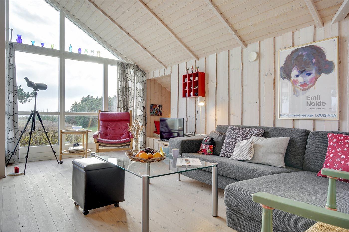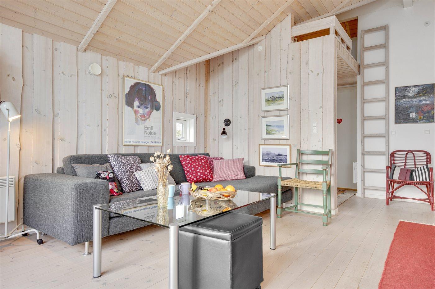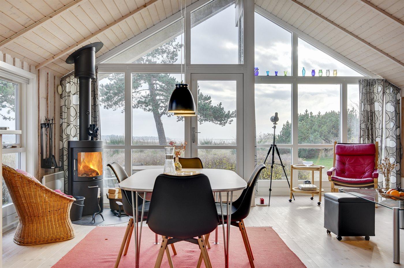 Huset er indrettet med stue, spiseplads og stue ud i et og er ideelt for hyggeligt samvær med familie og venner. Alkoven i stuen og hemsen indbyder til hygge og afslapning. Der er 2 gode soveværelser samt førnævnte alkove. Badeværelset er med bruseniche, gulvvarme og der er også vaskemaskine. Det gode vejr kan nydes på de store terrasseområder, hvor en del er overdækket eller i haven som giver rig mulighed for leg. Fra grunden fører en sti med trappetrin ned til stranden. Bemærk, at stien ikke er egnet for gangbesværede.