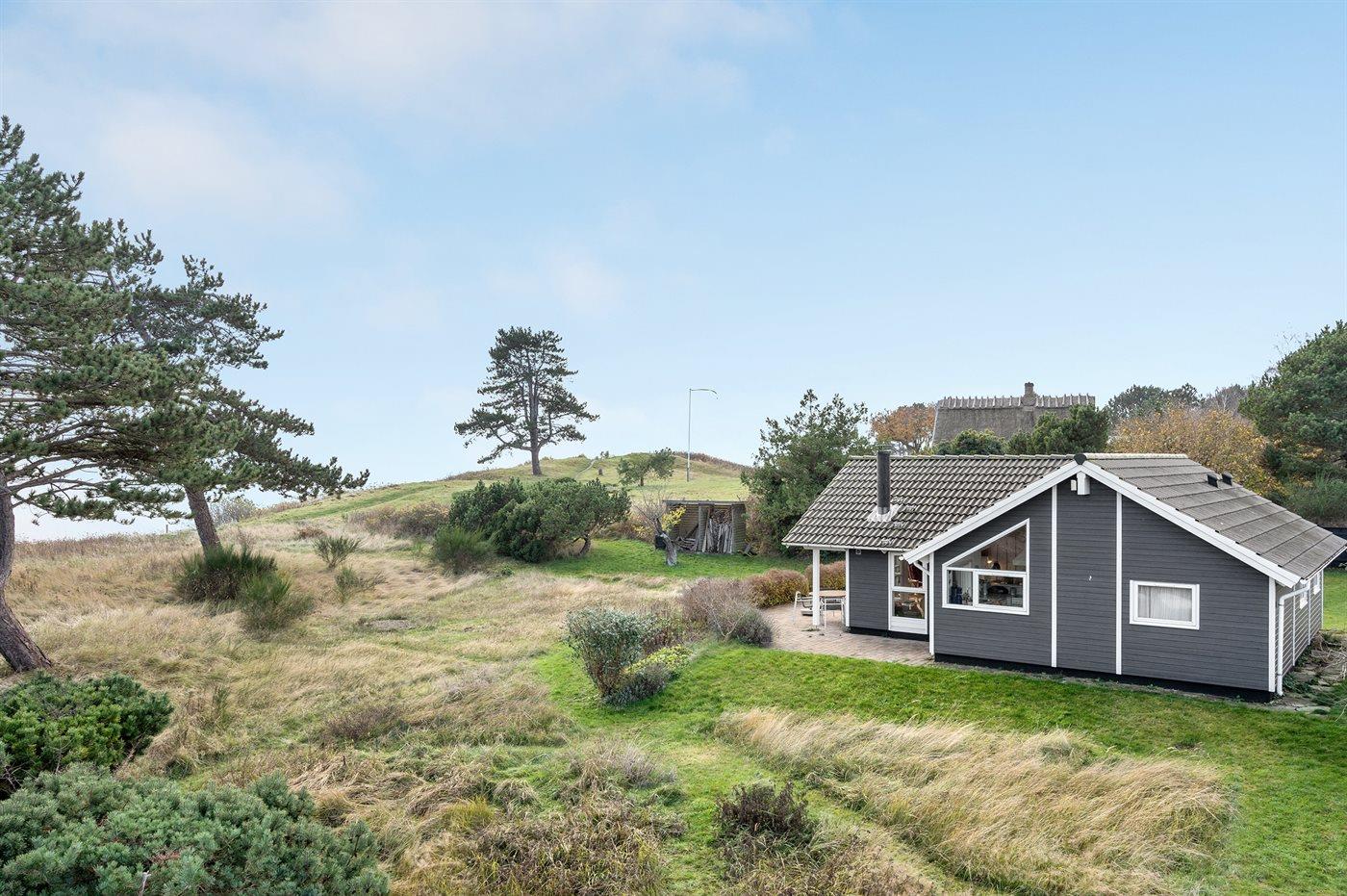 Ferieboligen er beliggende på en 4053 m² stor naturgrund. Der er 75 m til havet. Nærmeste forretning er beliggende i en afstand af 2100 m. Der er en golfbane i en afstand af 9600 m. Til ferieboligen hører 50 m² terrasseareal. Desuden er der 12 m² overdækket terrasse. Grill til rådighed. Parkering ved ferieboligen.