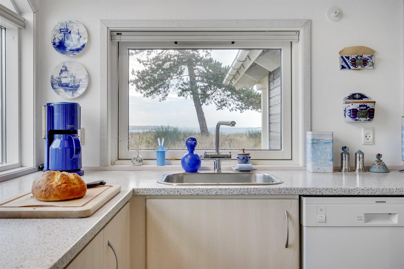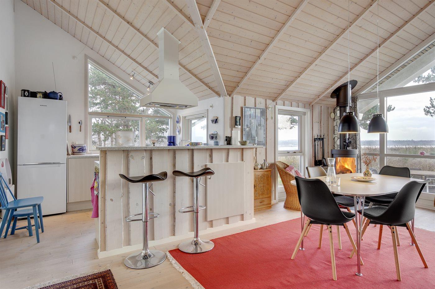 Køkkenet er udstyret med 1 køleskab. Der er 4 keramiske kogeplader, varmluftovn samt opvaskemaskine.