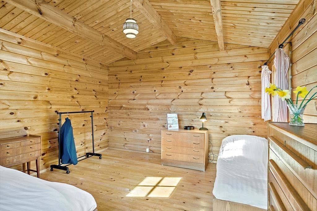 Sovepladserne er fordelt mellem huset og et anneks: I hovedhuset finder du en enkeltseng i et lille soveværelse, der er i åben forbindelse med badeværelset, samt en sovesofa i opholdsstuen. Annekset rummer to enkeltsenge og fungerer som en ekstra soveplads i sommermånederne, da der ikke er opvarmning.
